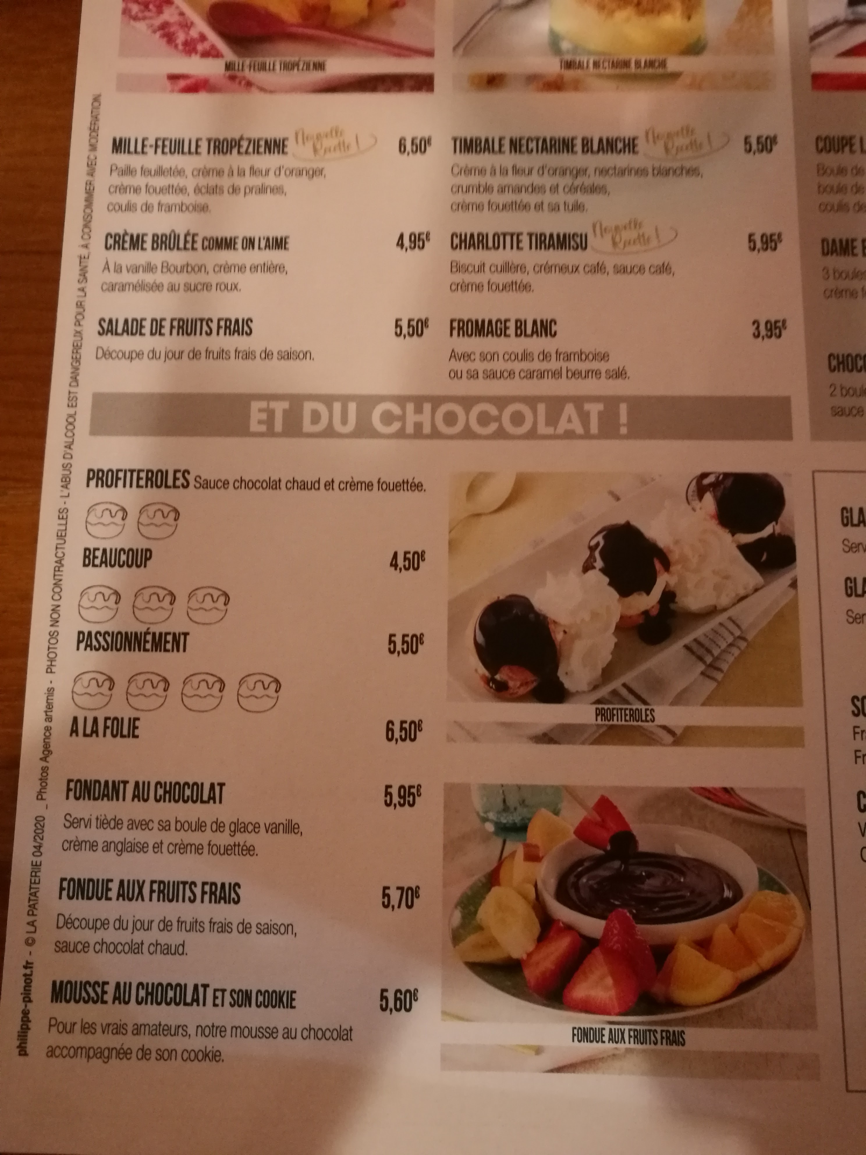 Bonjour , depuis le changement de vaisselles j'ai eu l'impression de manger dans une gamelle à animaux et la nourriture ne vaut plus le tarif demandé .je déconseille la pataterie .très très dessus .