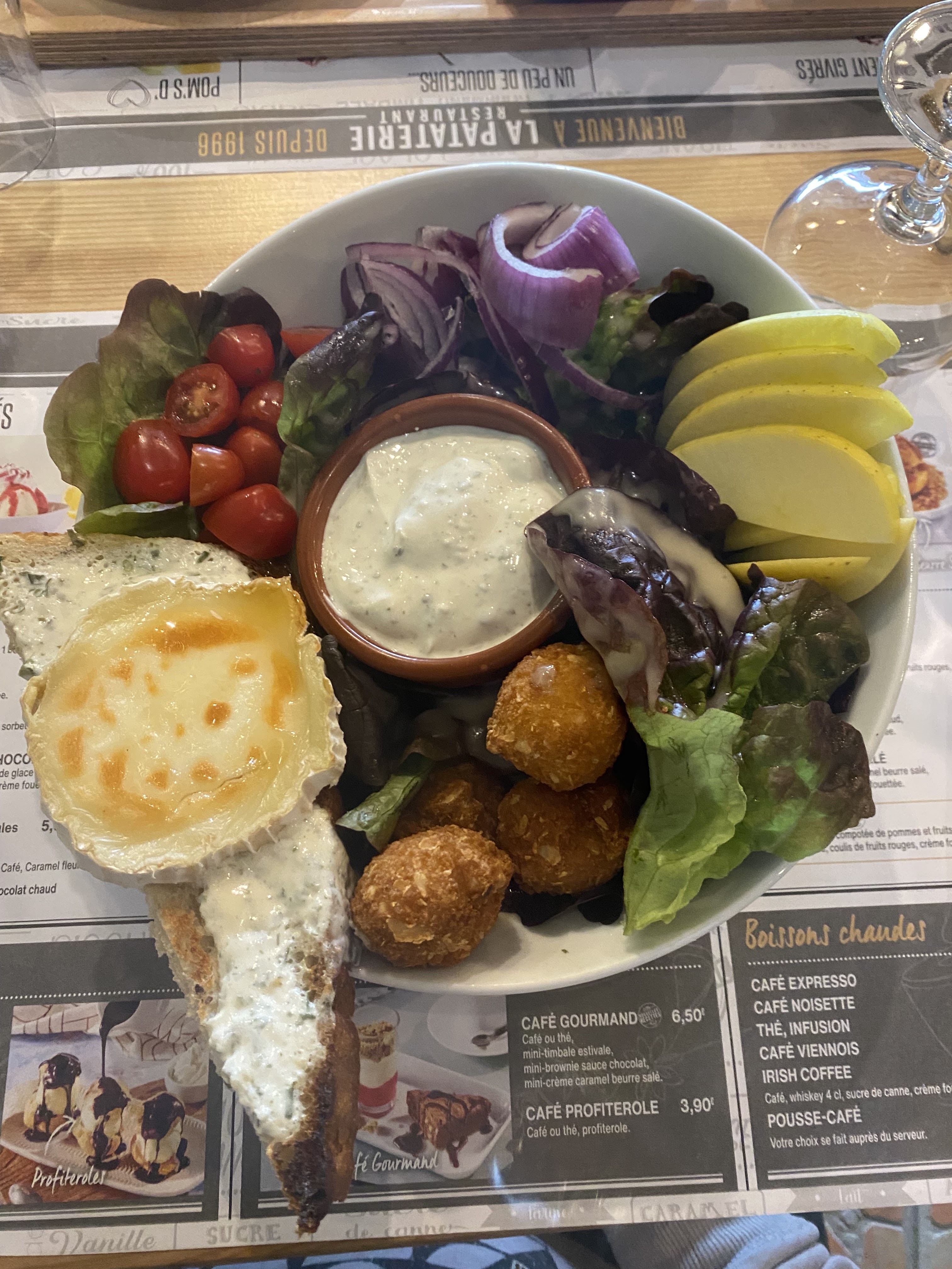 Bonjour , accueille chaleureux on nous installe a une table on avait regardé la carte sur internet et la quand on voit la carte sur place ce n est pas les mêmes tarifs dommage, mojito framboise un régal , plat j ai pris une pomme de terre gratiné a la raclette avec son ramequin de raclette et la charcuterie un délice aussi bien pensé le ramequin de raclette car quand on arrive à la moitié de la pomme de terre il n h a plus de fromage donc c est top , dessert mousse au chocolat un peu trop chocolaté a mon gout . Je reviendrais avec plaisir