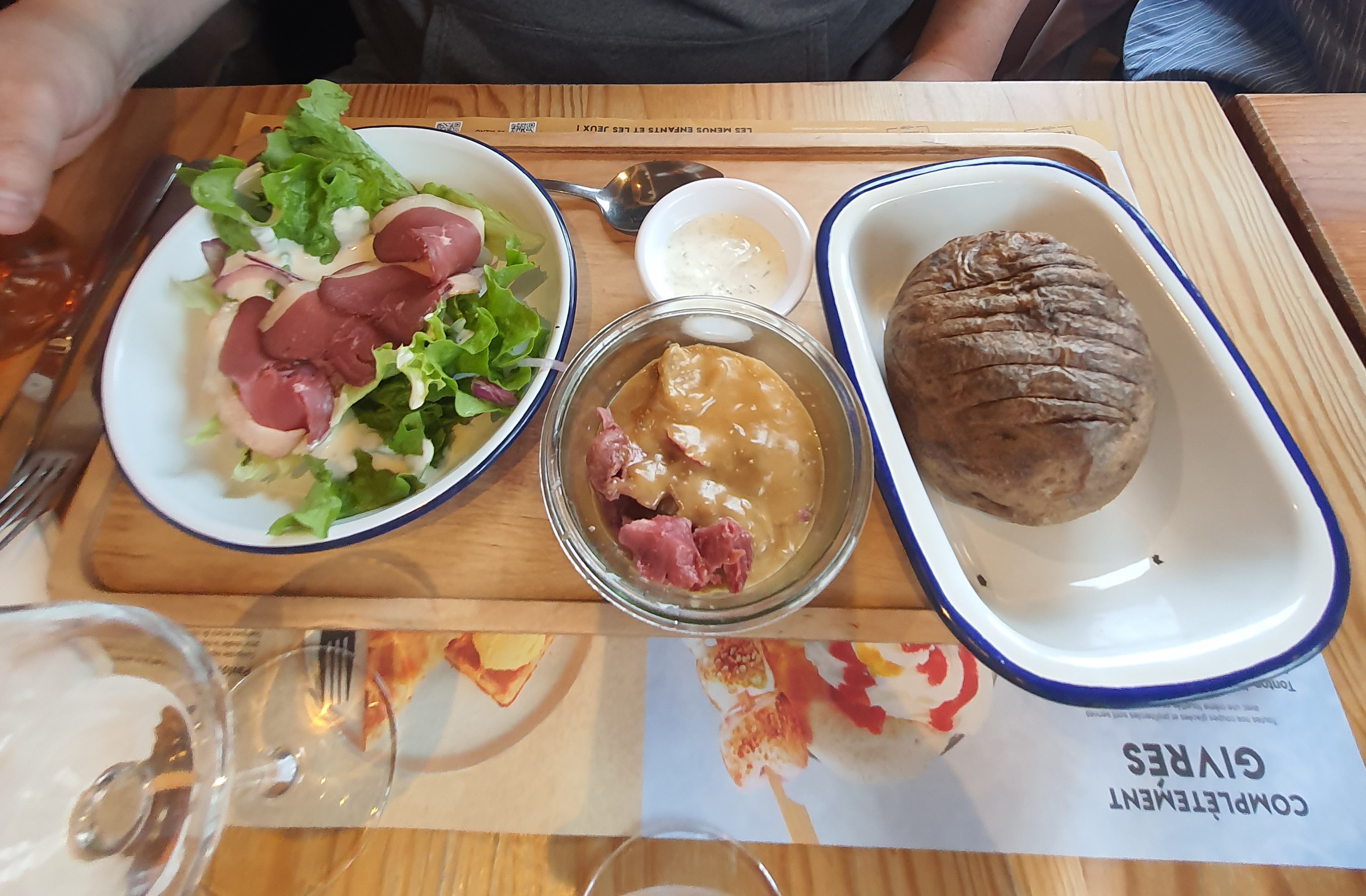En tant qu amoureux de la tubercule, je n avais jamais franchi les portes de cette chaîne de restaurant. Bien que la pomme de terre soit THE ingredient phare il est dommage qu'il n y ait pas un ou deux plats un peu autres permettant que l ensemble des convives y trouve son compte. Ah c'est dommage comme disait bigflo. Ou oli. Ou les deux. Nous avons rapidement été placés et les commandes ont ete prises aussi efficacement. Les plats sont arrivés vite. Tres vite. Trop vite ? La cuisson etait légèrement insuffisante, et au final peu de saveurs et des produits semblant en deçà niveau qualité. Je cherche toujours le reblochon dans les 2 plats commandés. Une reelle déception. Un tres bon point pour le service ou le jeune qui nous a servi s est démené et a ete efficace tout au long du service. Pour nous l experience n a pas ete concluante.