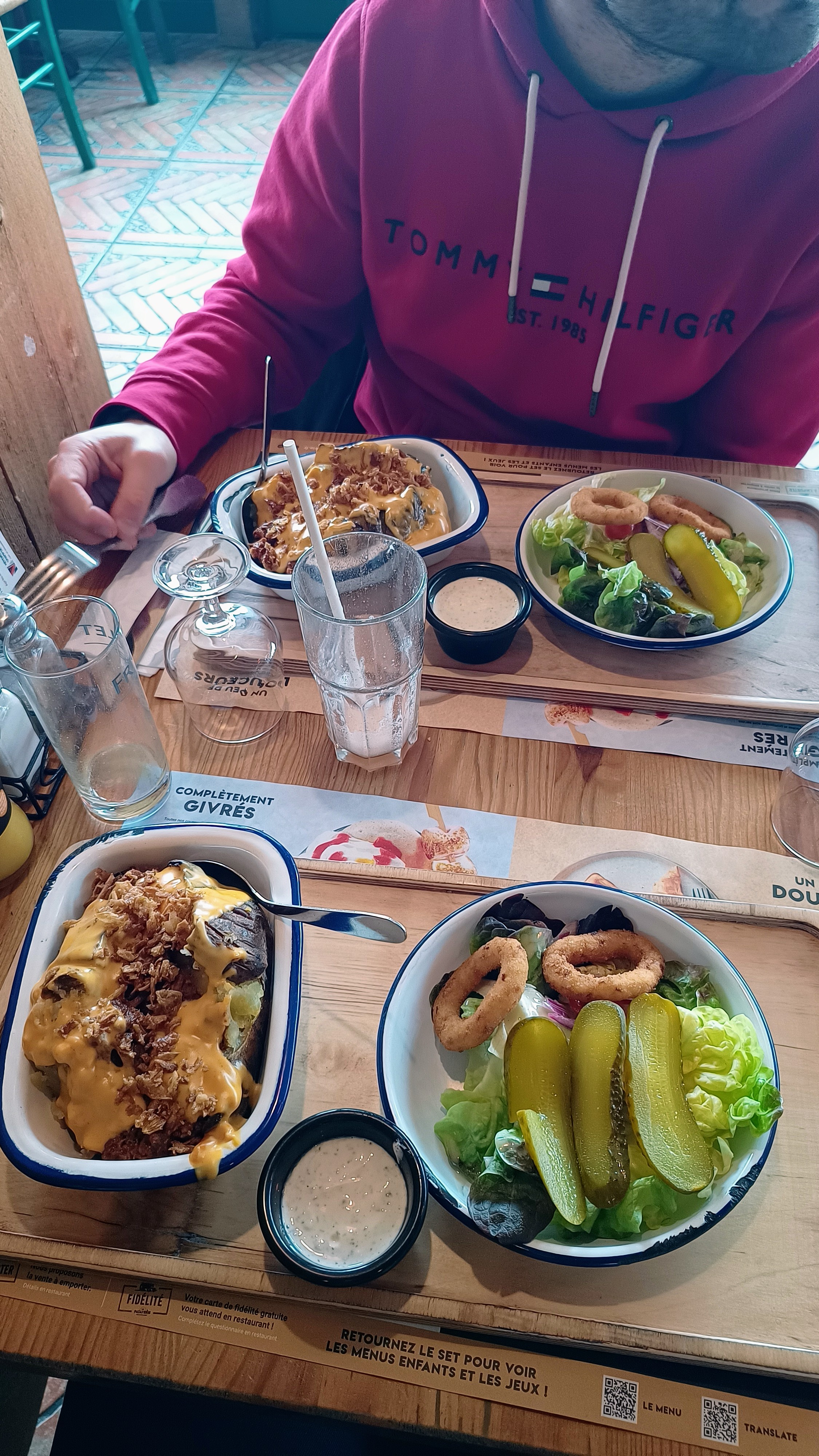Un peut trop attendus à l'arrivée sans que personne nous parle, mais rattraper, après coter cuisine on devait aller en soirée donc n'est pas voulut redemander mais les frite son trop cuite et vue le non des vrai maison et même différente a la carte serait top, et la gauffre était trop cuite mais sinon c'était bon et y a ausis juste le soucis des tables qui bouge trop mais sincèrement ses quelque petit détail car bonne ambiance et prix raisonnable ce fut bien sympa je recommande car se son que des petite choses 😊