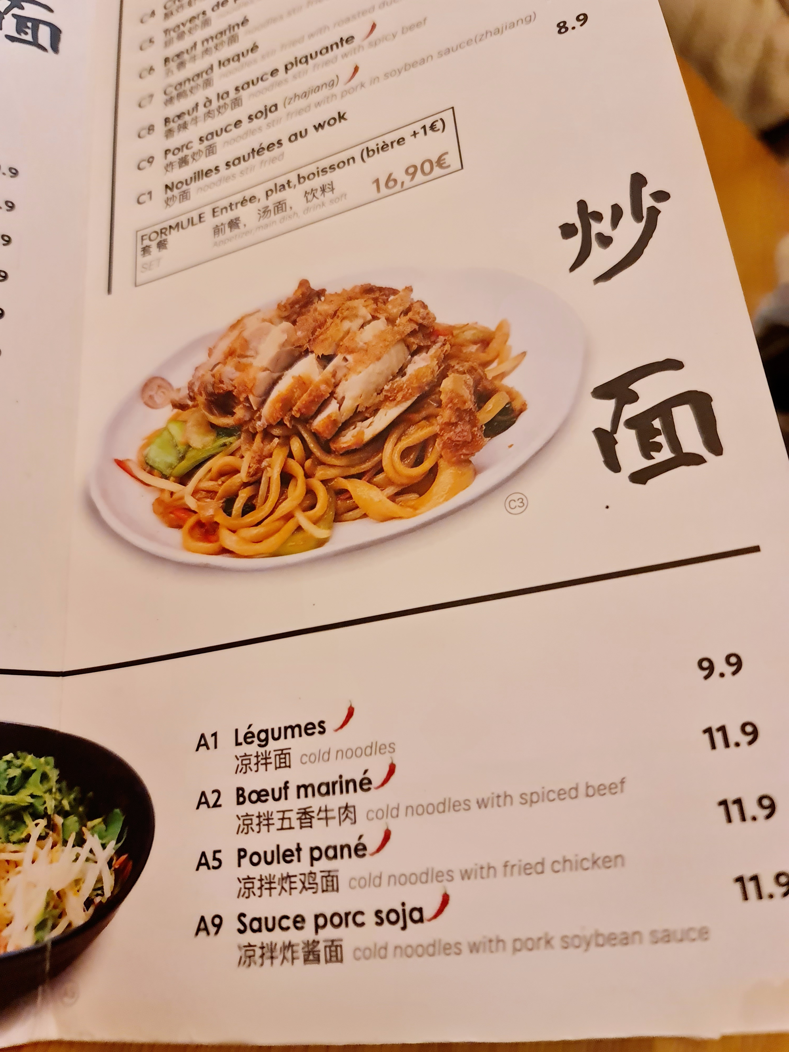 Restaurant spécialisé dans la conception de nouilles chinoises faites maison et à la main. La cuisine est derrière une baie vitrée laissant ainsi aux clients le soin de constater l'hygiène, la préparation, la cuisson. Prix convenables pour le quartier (le menu est à 14,90 € pour une entrée, un plat et une boisson). Le service est convenable. Il suffit de voir la longue queue aux heures du déjeuner pour constater le succès du restaurant.