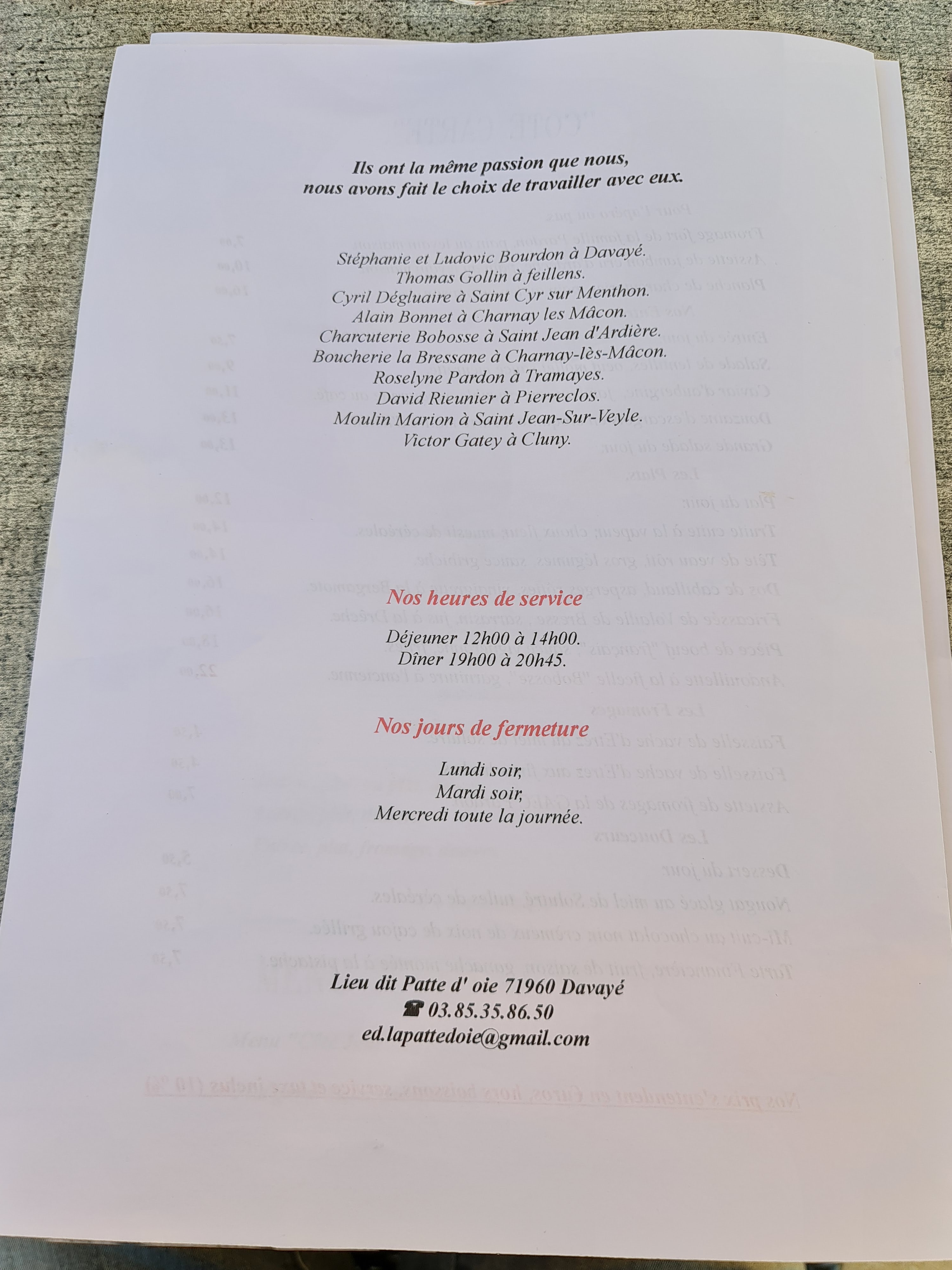 Ce restaurant respire la chaleur humaine, la convivialité et l'authenticité. Il témoigne de son histoire au travers de photos noir et blanc, vieillies de plusieurs dizaines d'années que le patron vous contera avec plaisir. La cuisine et les tarifs sont à son image : Généreuse, goutue et très abordable ! La Patte d'Oie fait partie de ces étblissements dont on ressort le sourire aux lèvres et l'estomac rempli de saveurs simples mais bien travaillées. Une excellente étape sur la route des vins de Bourgogne !
