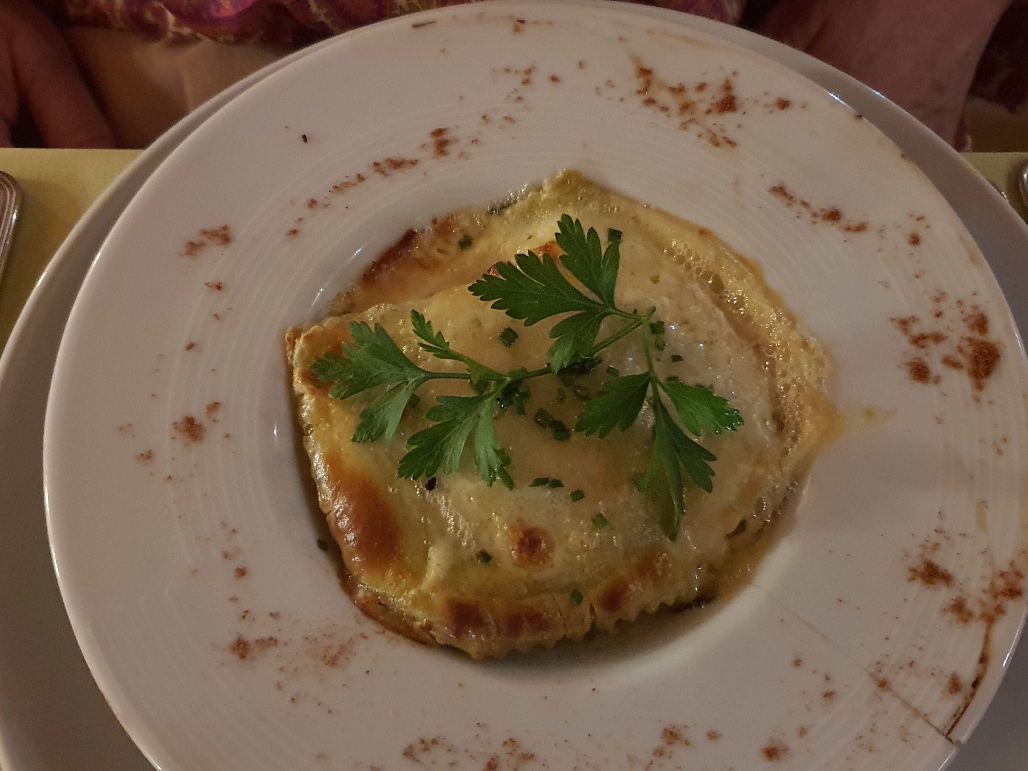 Les plats sont corrects dans l'ensemble. Mais cela ne casse pas trois pattes à un canard .. l'oeuf cocotte en brioche j'ai cherché l'oeuf et c'était froid.. la raviole ressemblait plus à une lasage qu'à une raviole. Les rognons étaient excellents la sauce un régal, les frites sont faites maisons. Le tournedos rossini était tendre mais servi sur une tranche de pain de mie industriel... Le dessert, jolie présentation. La tarte tatin était bonne et tiède, mais glace un peu trop sucrée. Le saint honoré est un peu décevant choux vide il n'y avait pas la crème vanille. Chantilly bonne. Par contre je tiens à féliciter votre excellent serveur, très aimable et agréable !!!!! Nous avons mangé correctement mais le prix n'est vraiment pas justifié, beaucoup trop cher pour ce qu'on a eu.