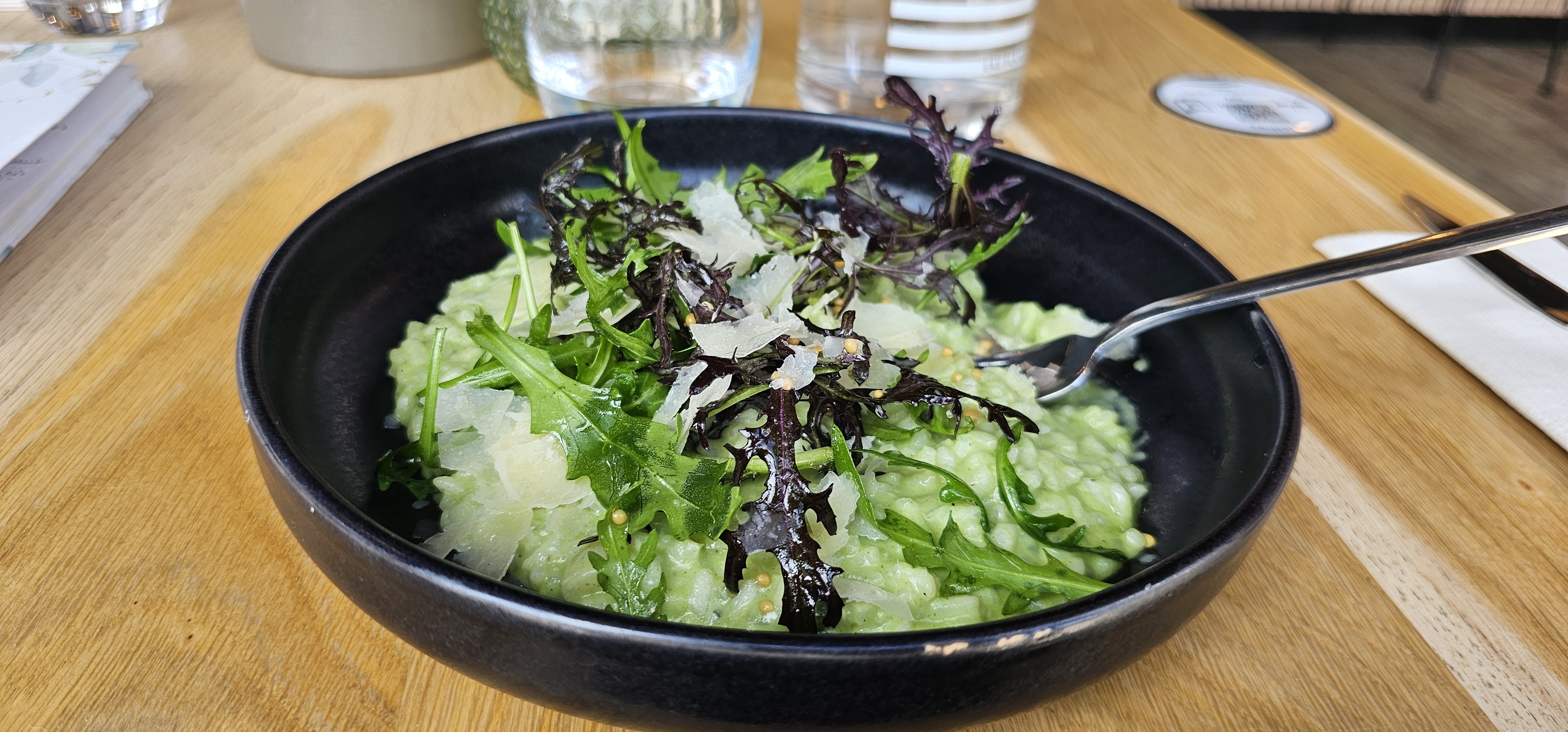 Un risotto délicieux, une île flottante délicieuse, un plateau de fromage très bon, un accueil et service chaleureux et dynamique, merci pour votre professionnalisme