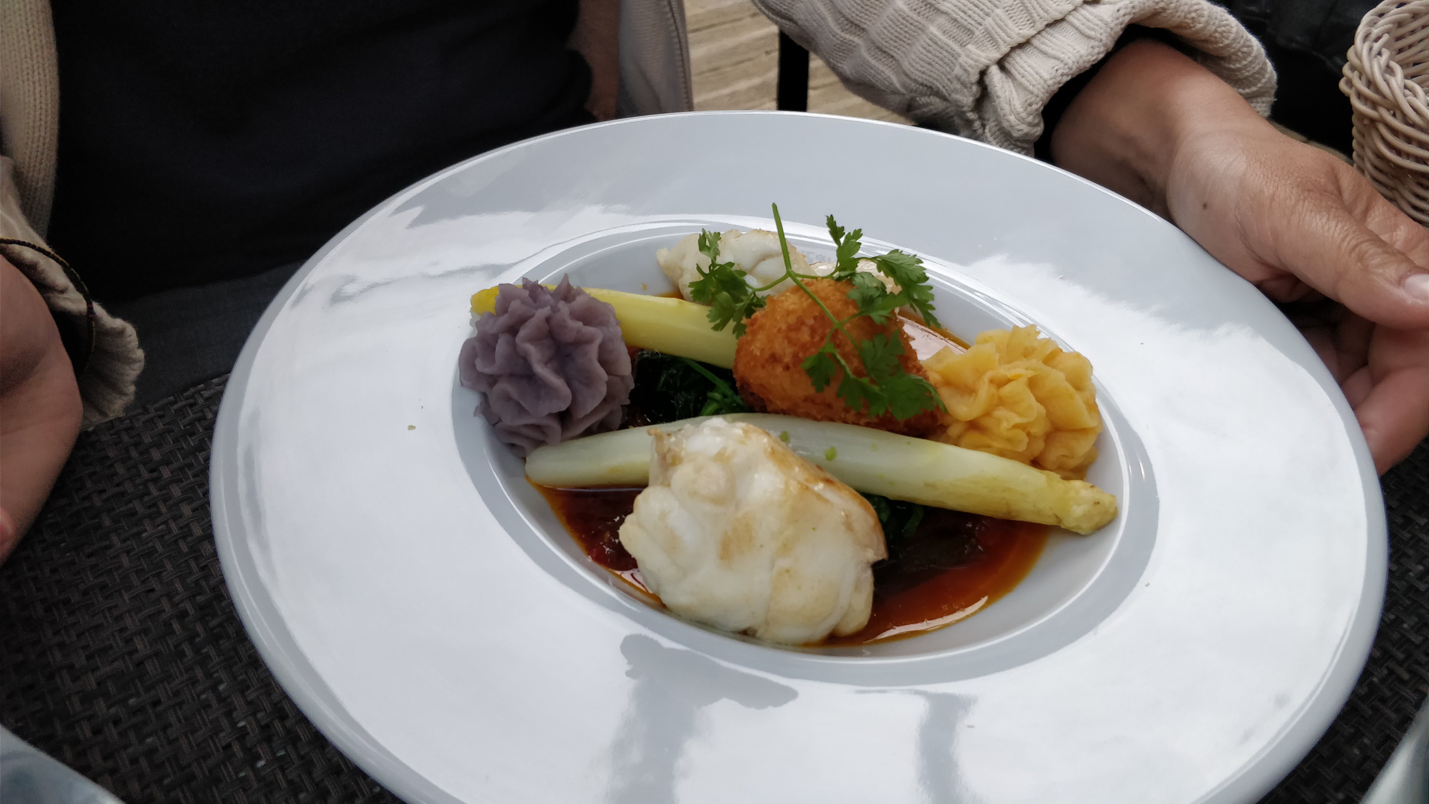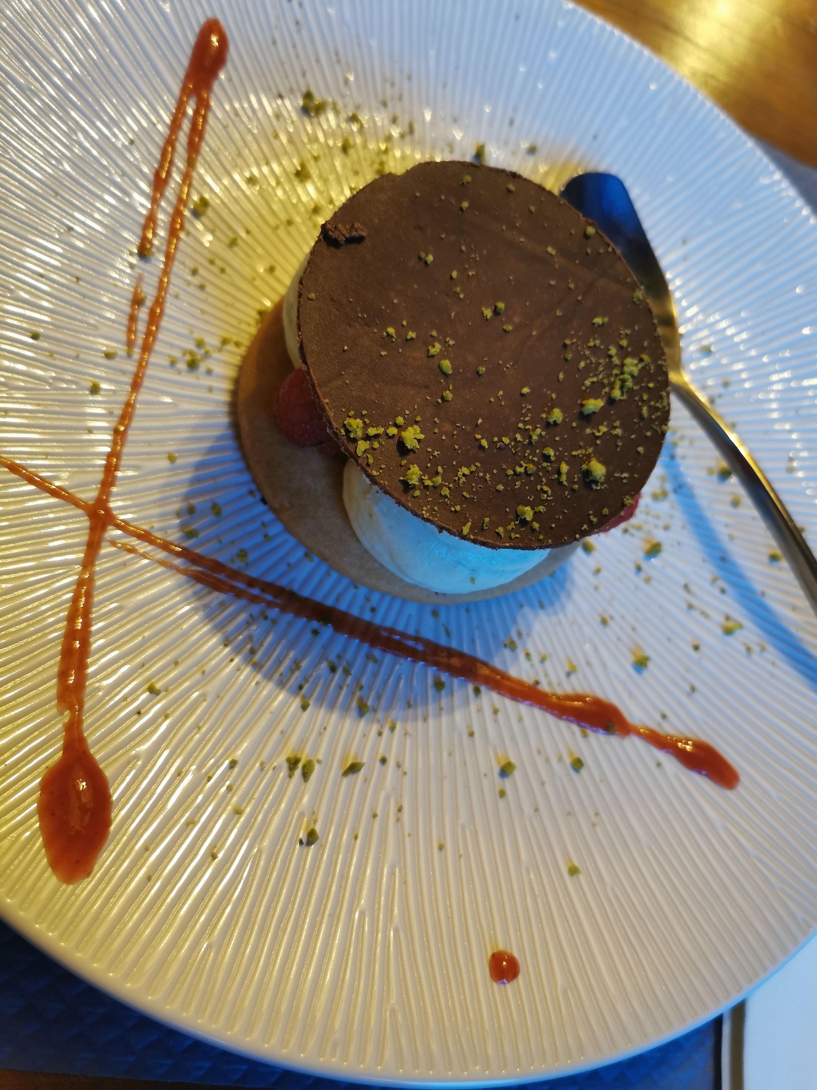 On s'est régalée. D'excellents produits bien cuisinés des saveurs au rendez-vous. St Jacques un peu cuite à mon goût mais ça c'est mon goût perso, (je les mangent juste cuite pas au goût de tous) Merci au cuisinier de mettre autant de passion dans leurs préparations. Les desserts sont tout autant excellents, pour moi c'était le citron 🍋 j'avais peur à l'acidité. Mais non l'équilibre est juste parfait.
