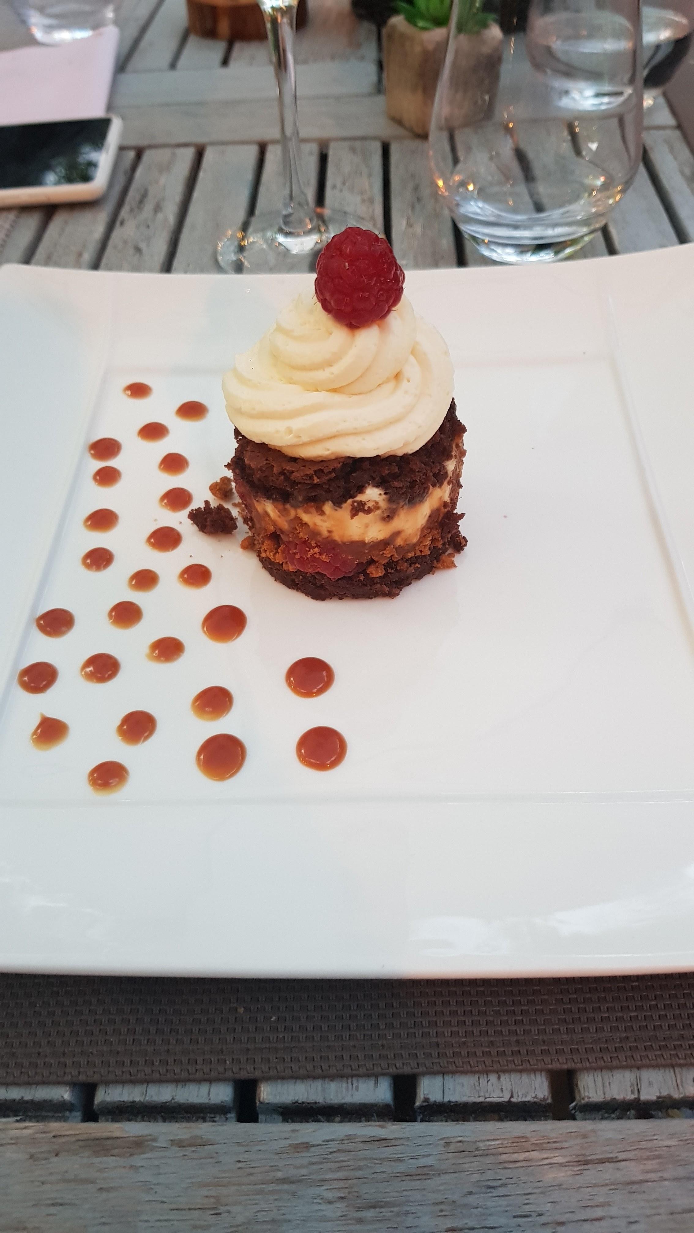 Un très bon accueil avec le sourire. Une carte avec juste le choix qu'il faut. Des prix tres raisonable. Un menu avec un tres bon rapport qualité prix. L'entrée de salade et chevettes facon thai est délicieuse. Suivie du poisson avec 2 etoiles de purée qui n'a rien a envier a l'entrée. Pour finir avec une tartelette a l abricot fondante et craquante. Le tout sur une terrasse magnifique.