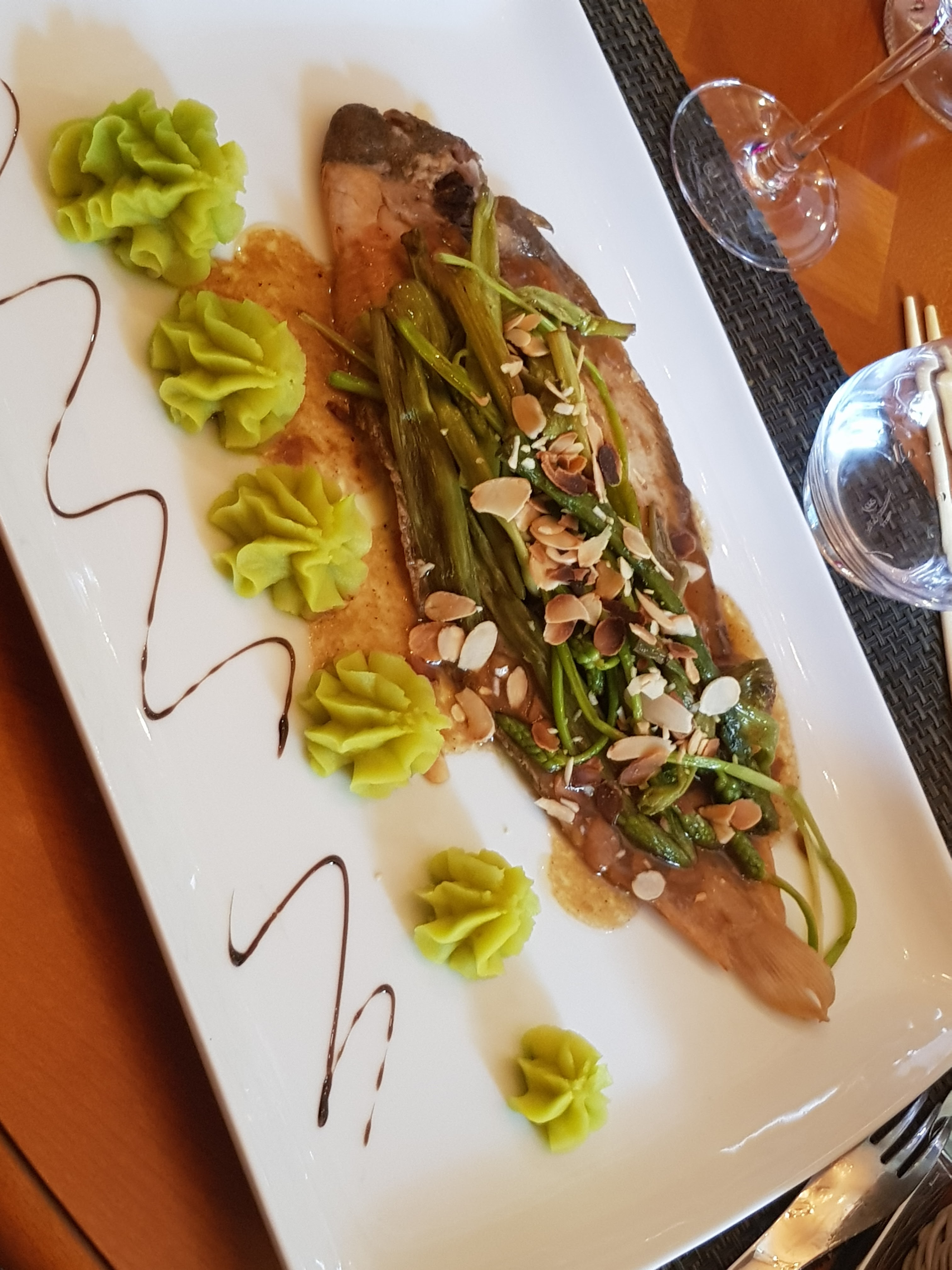 Arrivé à plus de deux heures de l’après -midi, j'ai pourtant été accueilli aimablement. Placé à la terrasse, sous les fleurs et les frondaisons, j'ai pu déguster du barbu en beignets accompagné de légumes frais et de purées colorées, le tout copieusement servi et bon. Un excellent baba au rhum avec fraises fraiches et chantilly a été la conclusion de ce repas de très bonne tenue pour une somme dépassant de peu les trente euros, ce qui , compte tenu du cadre et de la qualité des produits reste raisonnable. Une adresse à retenir!!!