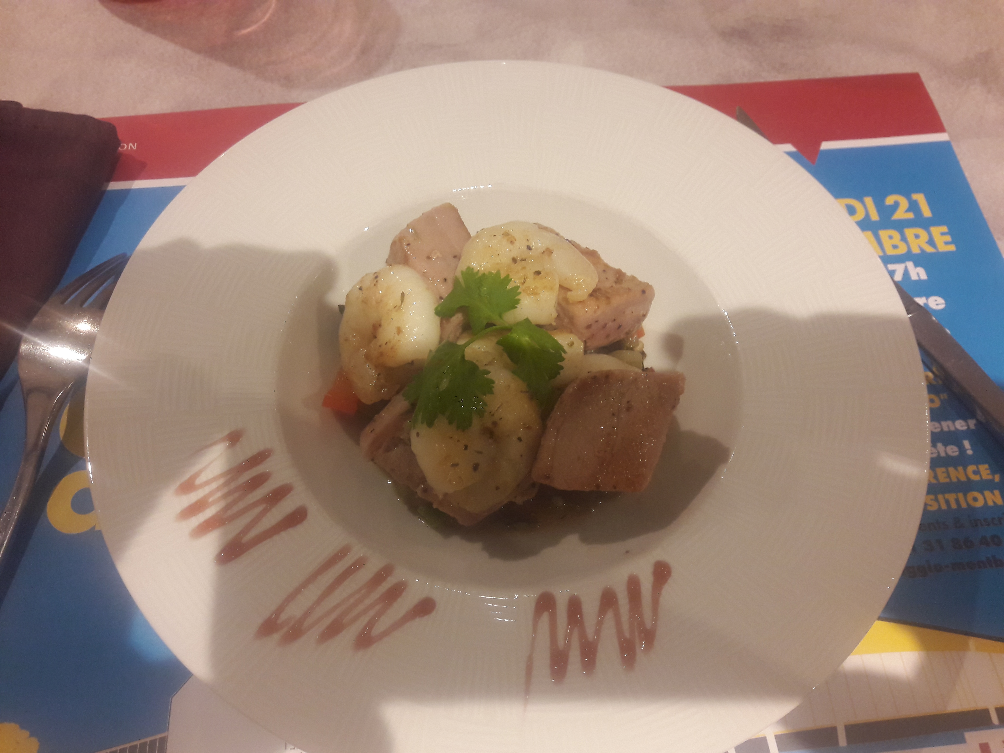 Super repas .ambiance conviviale . Produits très frais et super présentation. Le vin rouge a été changé car pas de goût...sans rien demander. Prix très raisonnable. Très contente car c'était l'anniversaire de mon mari :surprise réussie.