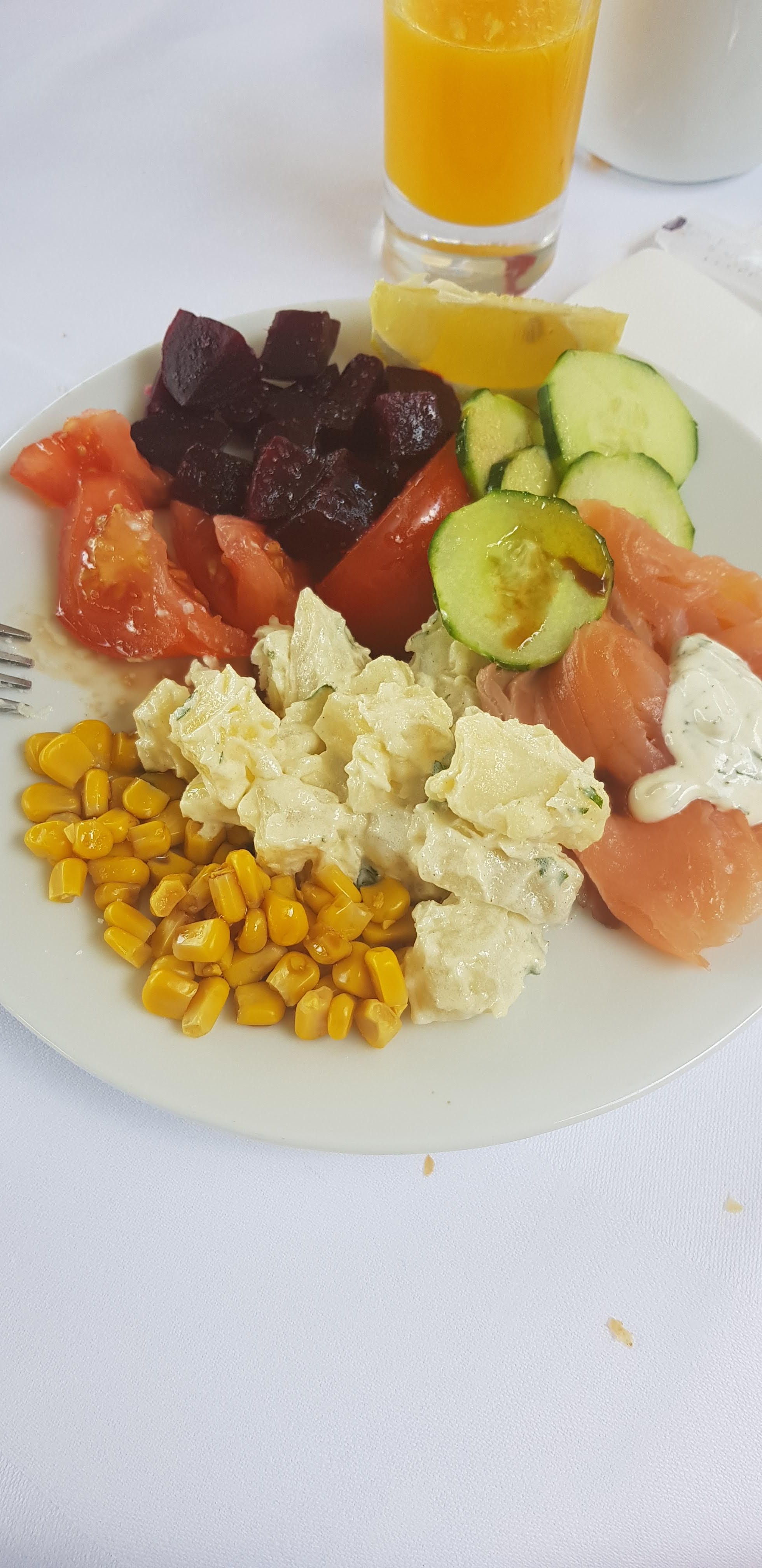 Brunch sous forme de buffet fourni avec des produits variés et de bonne qualité, le tout est plutôt bien cuisiné. Seuls les fruits (de saison... Ou presque) n'étaient pas mûr pour la plupart. Dommage les péchés plates, le melon et la pastèque me tentaient vraiment mais impossible d'aller plus loin que trois bouchées sans risquer les crampes d'estomac. Le tout est plutôt agréable et satisfaisant mais pour le prix (35€) celà reste une petite déception. Disons qu'on paye le cadre.