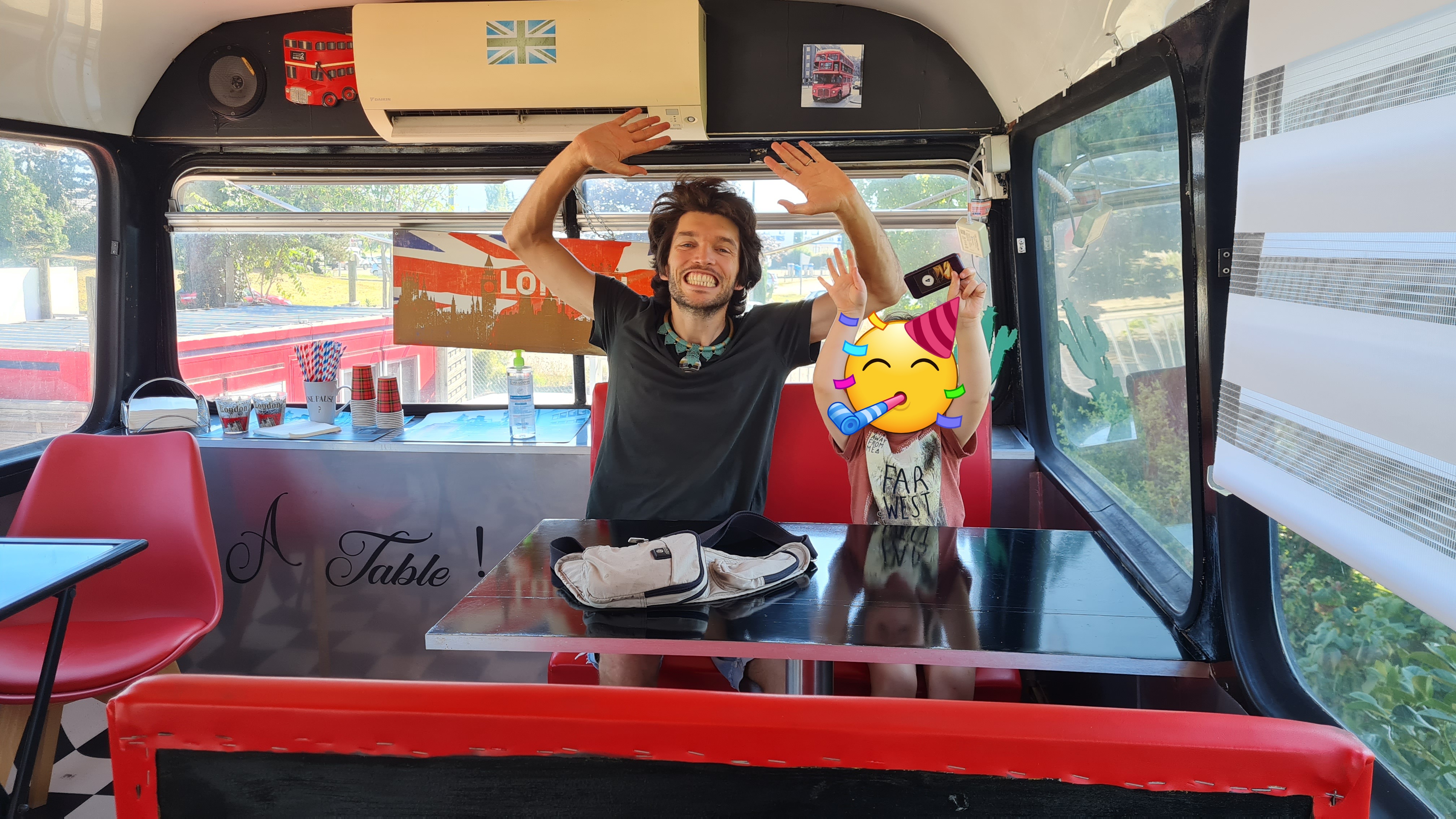Excellente découverte et experience avec cet emplacement atypique ..un bus londonien réaménagé, la carte qui va avec, un service avec le sourire , et des prix très franchement accessible par rapport a ce qui se pratique et étant donné la qualité proposée...vraiment chapeau pour le concept ...a tester seul ou en famille..🙏🙏