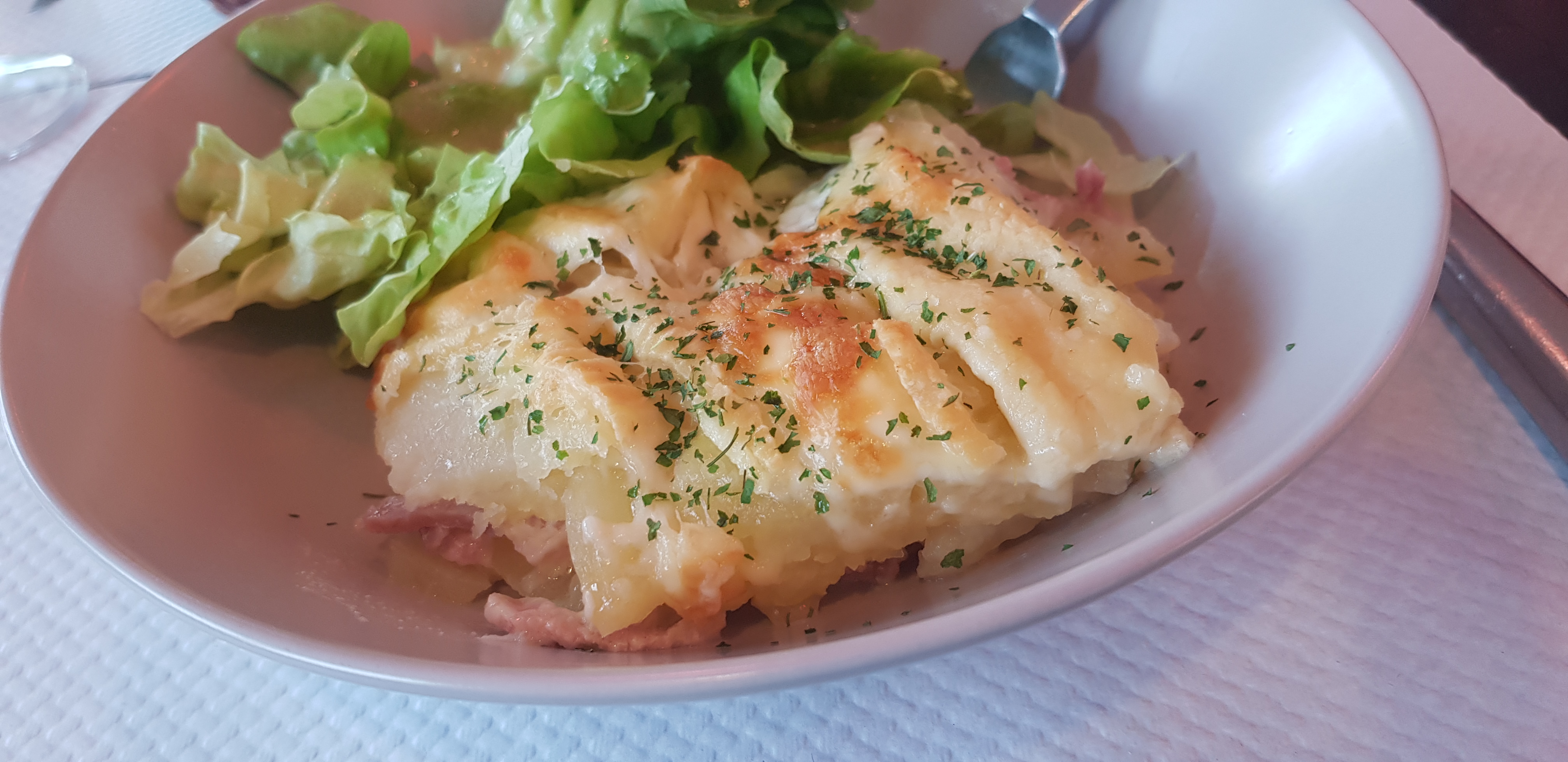 Idéal pour une pause déjeuner sympathique. Vous êtes accueilli avec le sourire et professionnalisme dans un cadre convivial. La cuisine est très bonne, copieuse et faite maison, aujourd'hui c' était une tartiflette au menu du jour. Des formules économiques: Plat+dessert ou boisson= 12€. Plat+dessert+boisson= 14€ Le plat du jour= 10,20€. Avec un café et le plat accompagné d'un ballon de rouge, vous déjeunez très bien pour 13€! Un bon point de chute pour bien déjeuner pour pas cher!