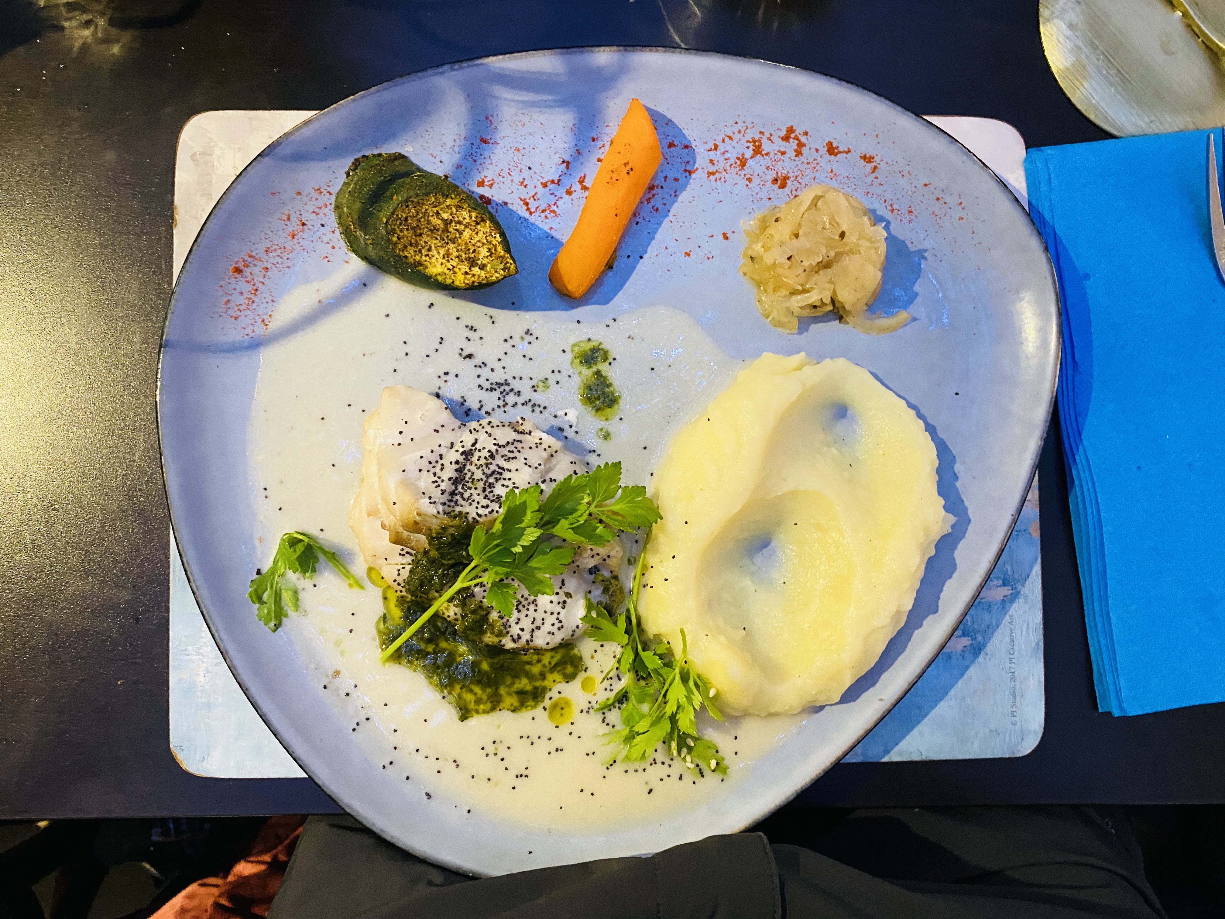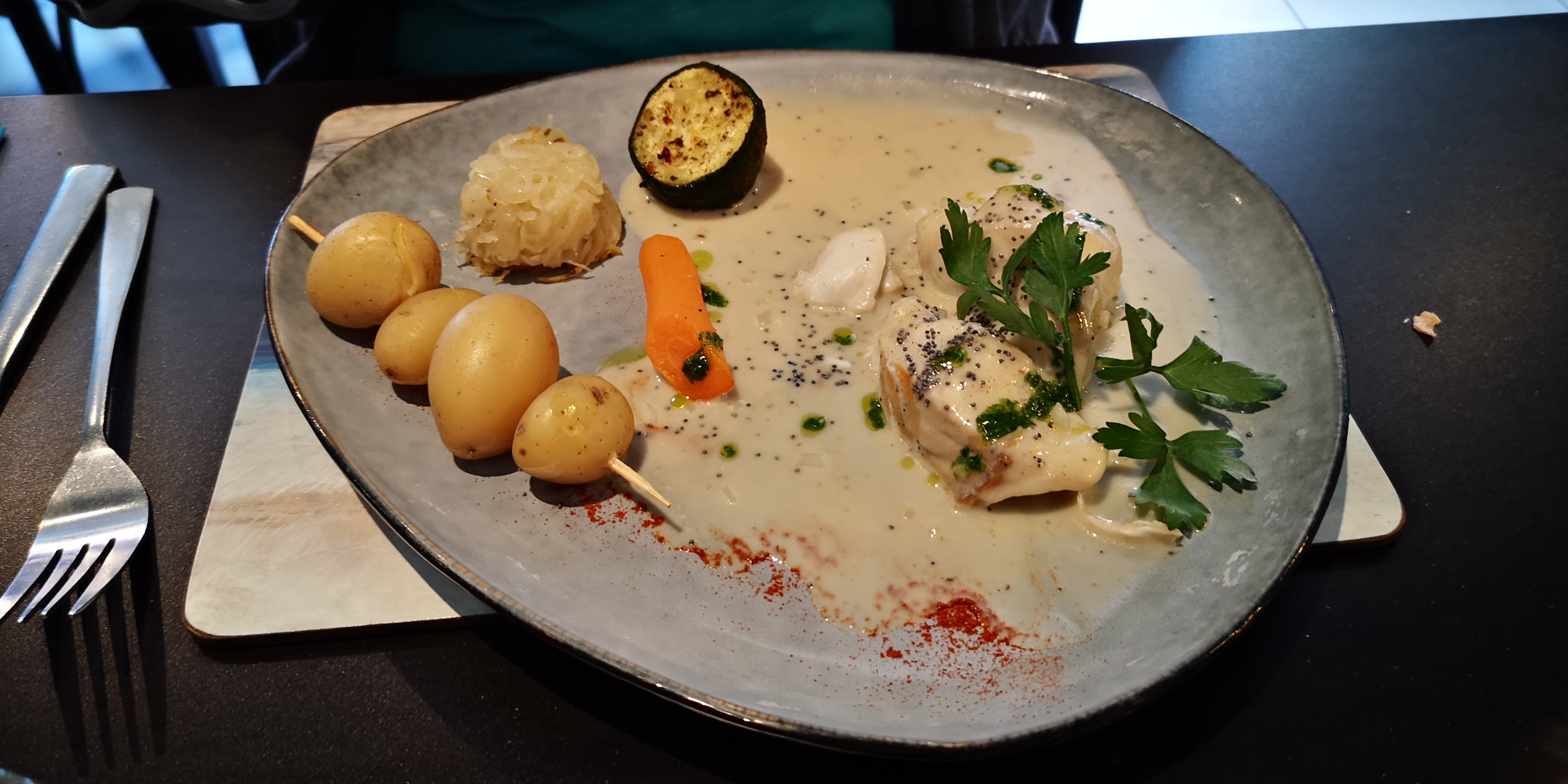 Trop cher pour des plats si simples, manque de saveur et de présentation , pot au feu de poisson fade , dessert bâclé