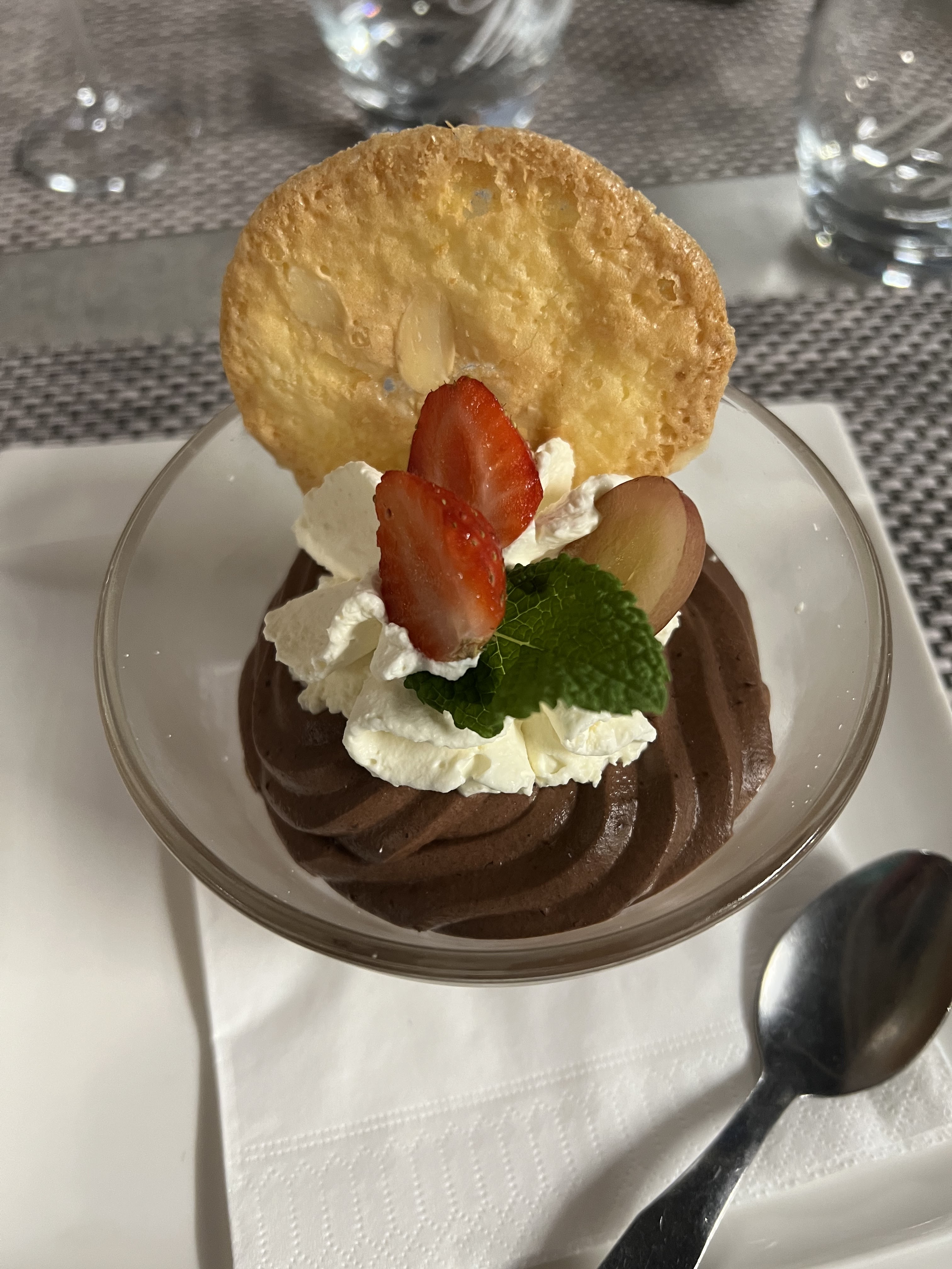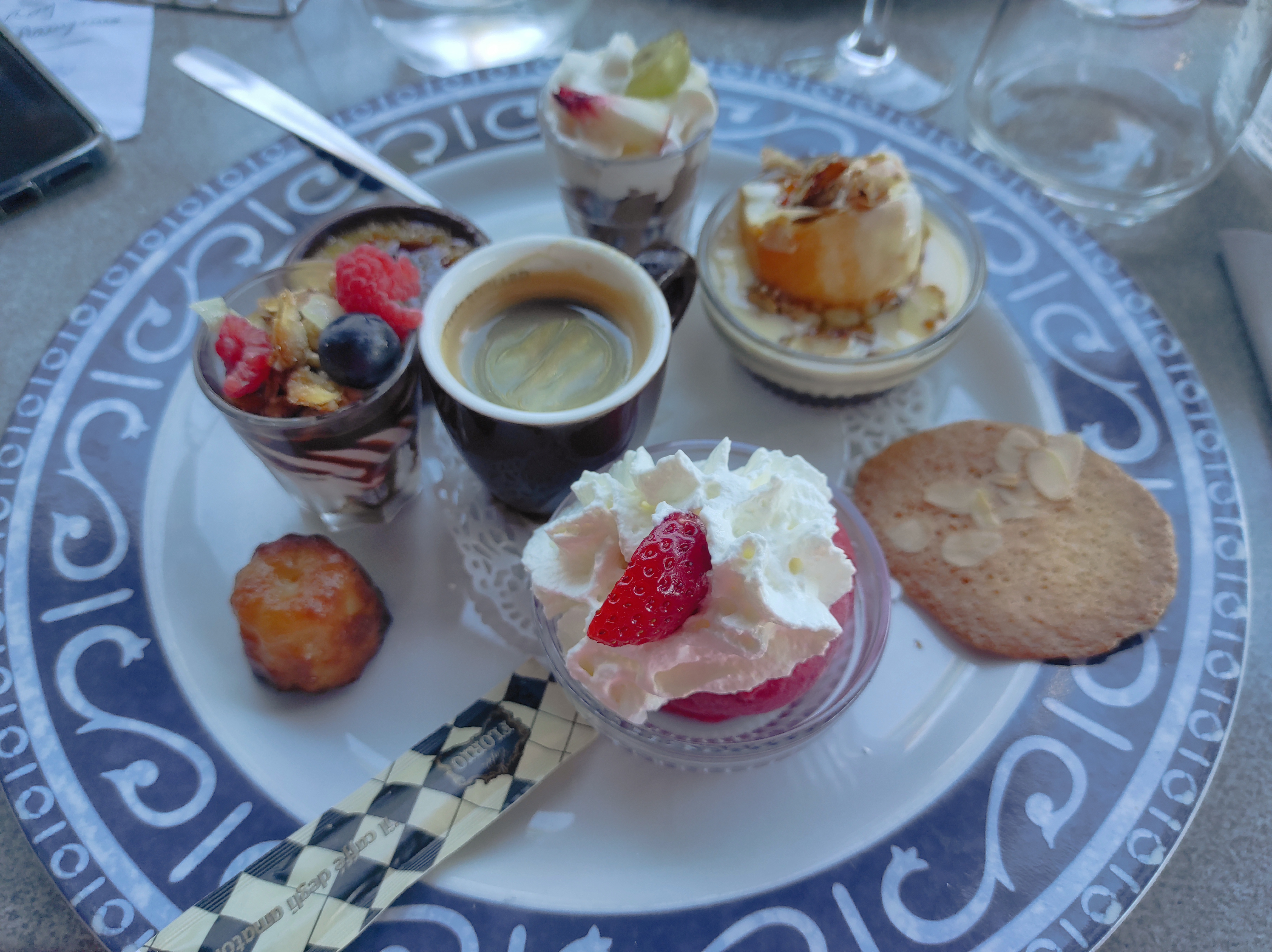 Bien que l'extérieur semble réservé à une clientèle chic , inutile d'y aller en cravate et talons aiguilles ! La simplicité et la gentillesse des serveurs , l'accueil chaleureux , vous mettent immédiatement à l'aise , même si vous arrivez avec une tenue de randonnée comme c'était notre cas ! Les plats sont bien garnis , les saveurs de chaque ingrédient bien mis en valeur , les prix sont tout à fait raisonnables par rapport aux produits présentés . Et si vous hésitez pour le dessert , le café très gourmand est incontournable : il reprend en mini dose tous les desserts à la carte !