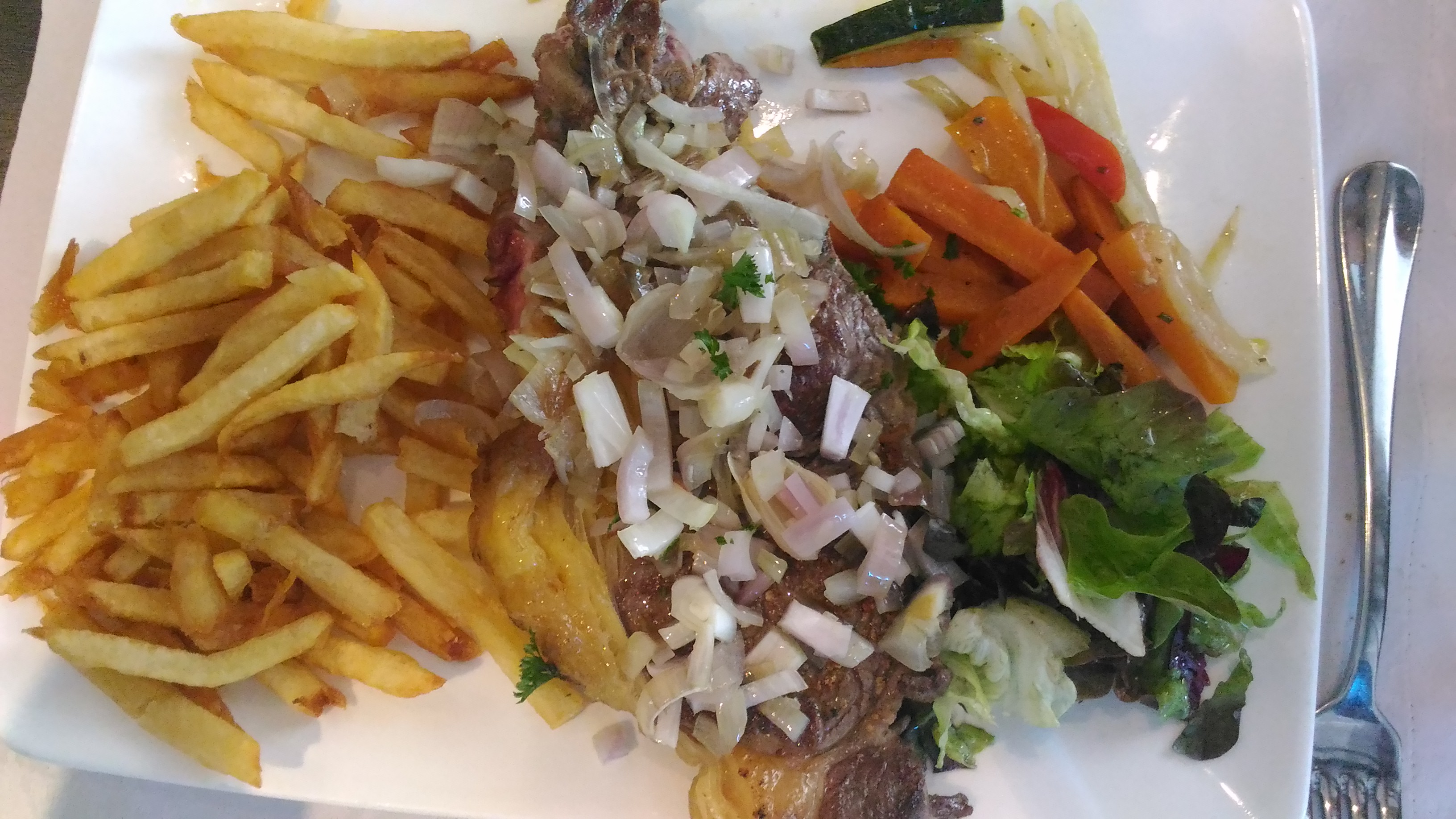 Déjeuner hier à midi avec un groupe de motards. Table dressée en terrasse au soleil, génial. Très bon repas, patronne et personnel très sympa