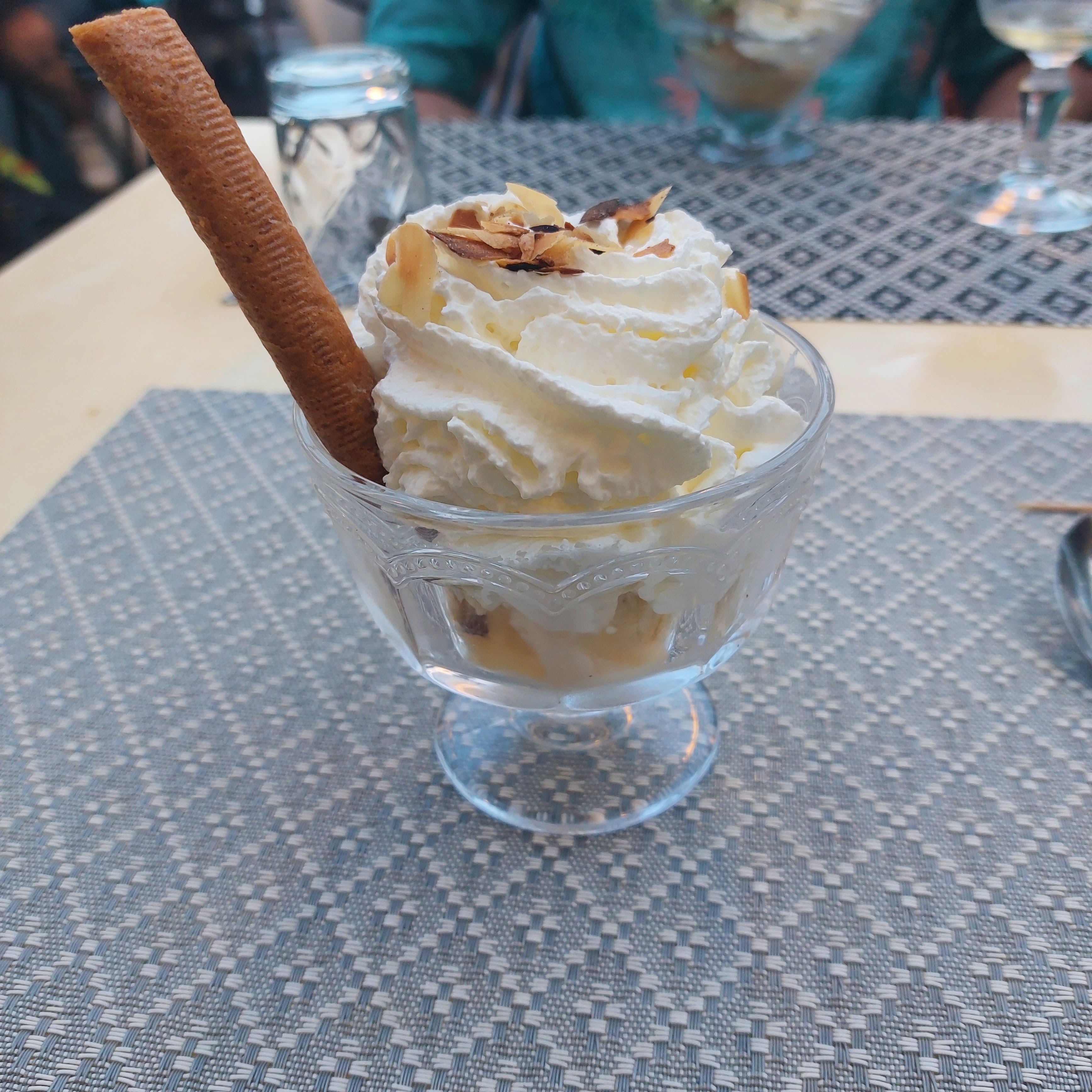 Accueil super sympa, moules frites correctes à petit prix. Boule de glace caramel beurre salé délicieuse. Ce parfum de glace est souvent décevant, là c'était excellent. Service au top. Le plateau de fruits de mer servi à la table d'à côté semblait super. (Sur commande) On essaiera prochainement ! 😁