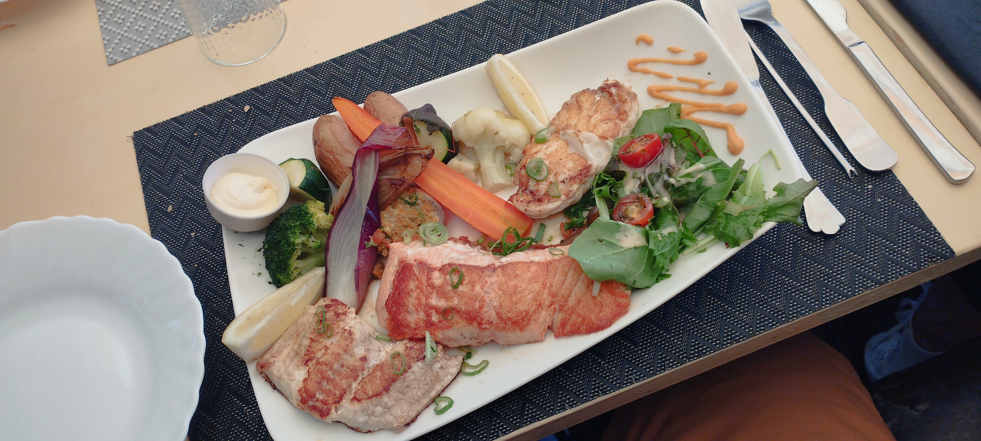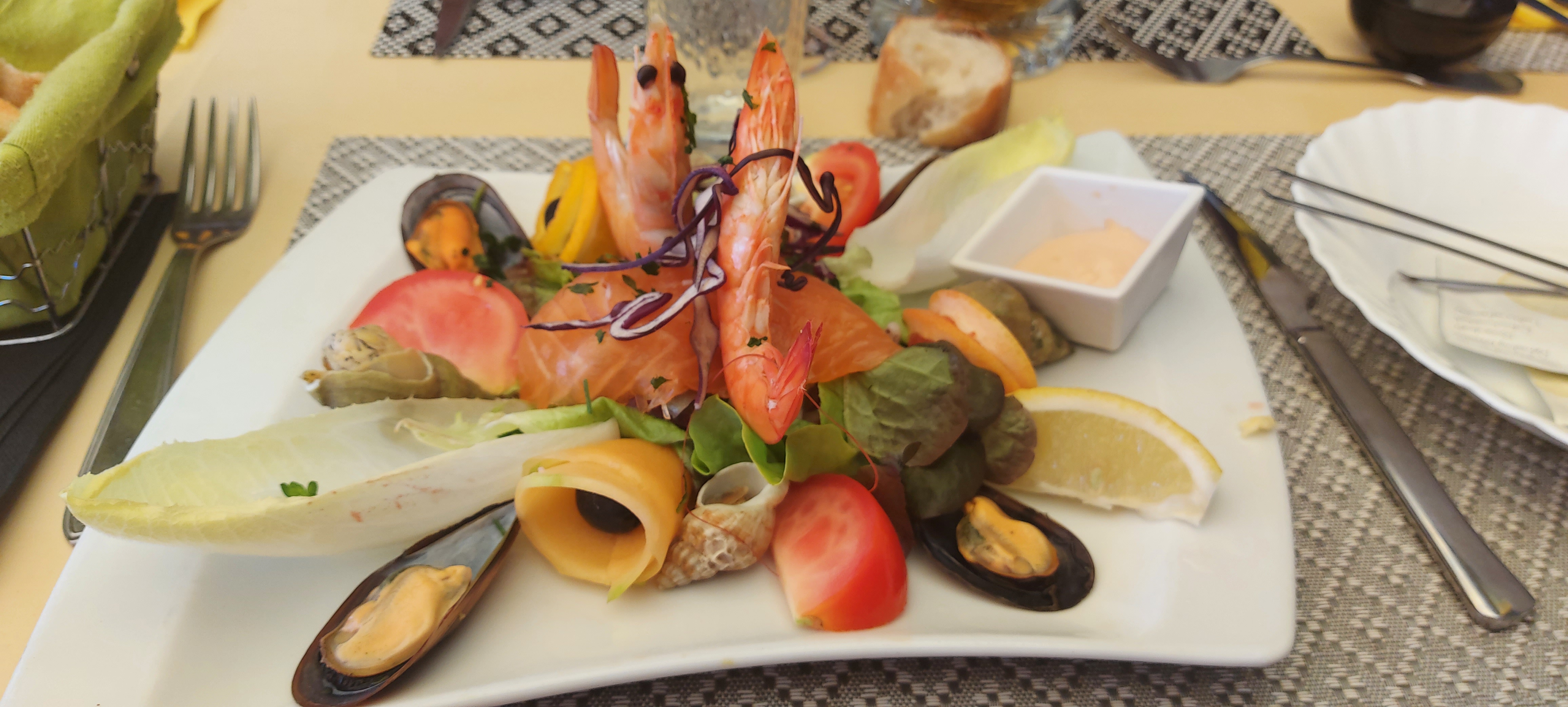 De très belles assiettes avec beaucoup de goût ! Plateau de fruit de mer copieux pour une entrée et très frais. Plat duo de saumon et loup de mer un délice ! Seul bémol pour l'entrée anchoiade car ce n'était pas ce que j'attendais et c'était un peu fort en goût. Mais je recommande sans problèmes !