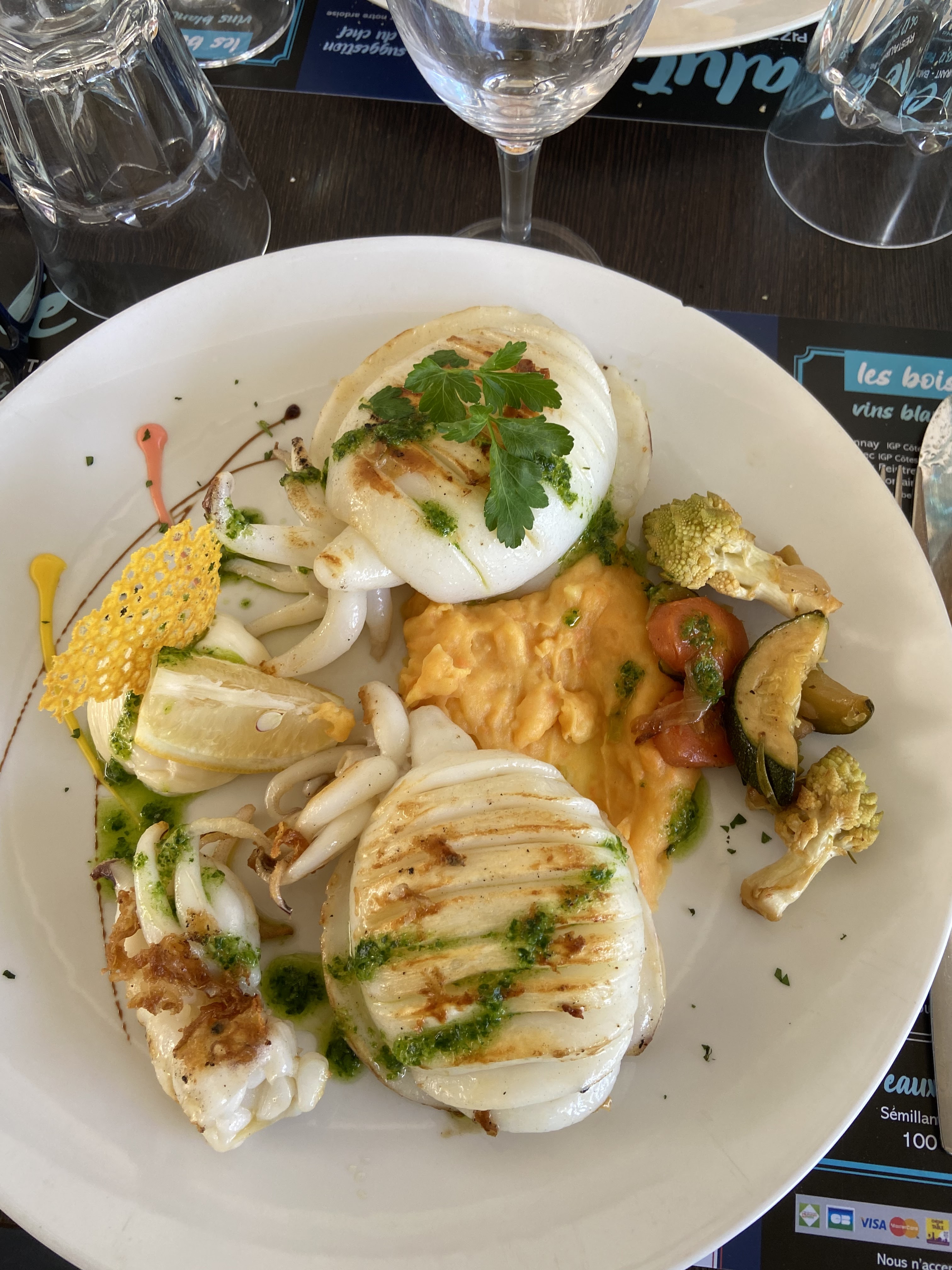 Franchement, une formule à 16€50 de très bonne qualité. Pour ma part, j’ai choisi le calamar en carte… impeccable. Seul petit bémol, une toute petite odeur de refoulement ou d’humidité dans le restaurant, que l’on oublie rapidement. Service impeccable Un restaurant que l’on garde en mémoire, à refaire 😉