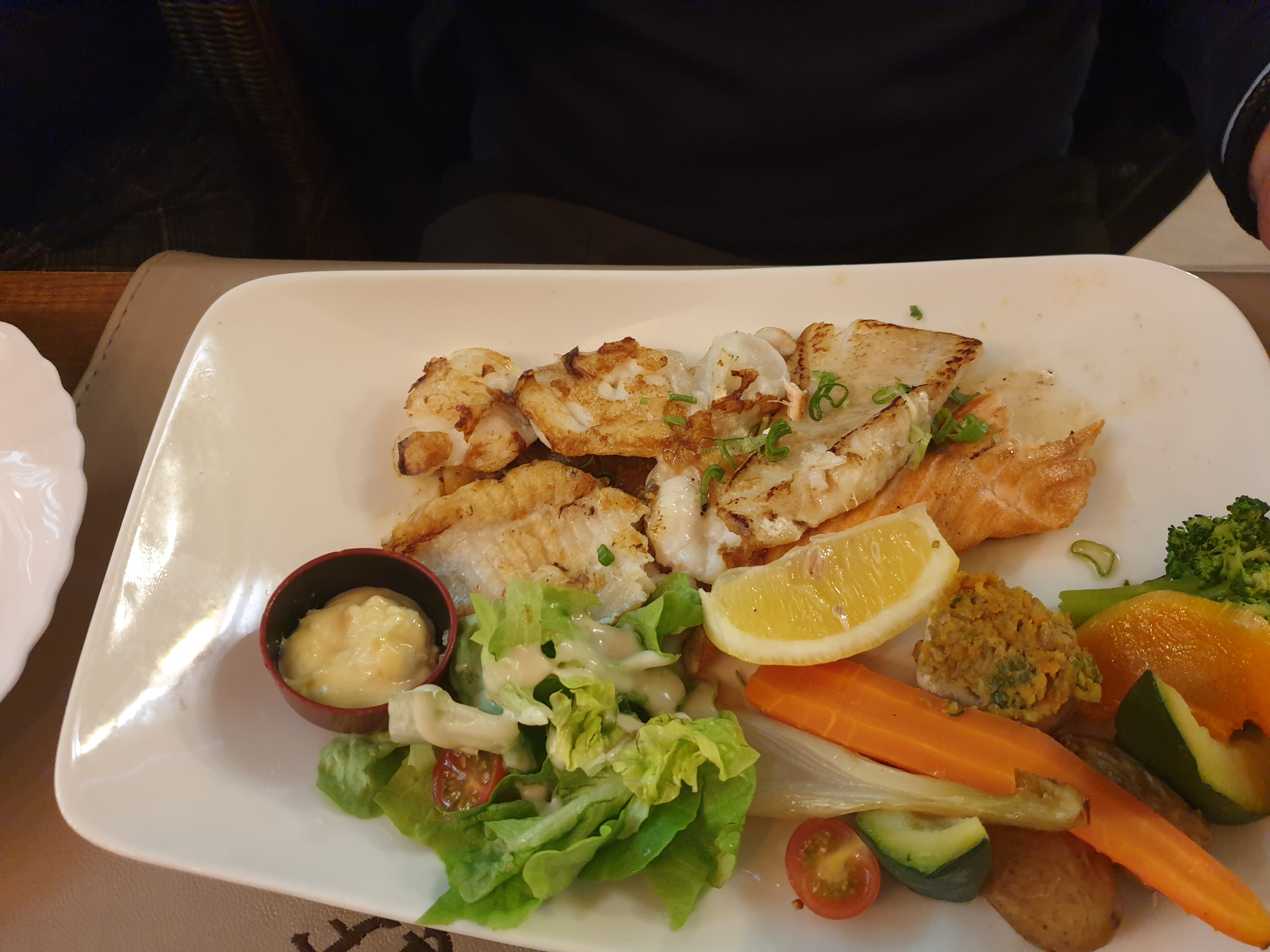 Accueil agréable, plats aussi bons que copieux. Les légumes accompagnants le poisson étaient vraiment bien cuits juste ce qu'il fallait ! Le café gourmand porte très bien son nom! 😊 Une vraie bonne surprise !