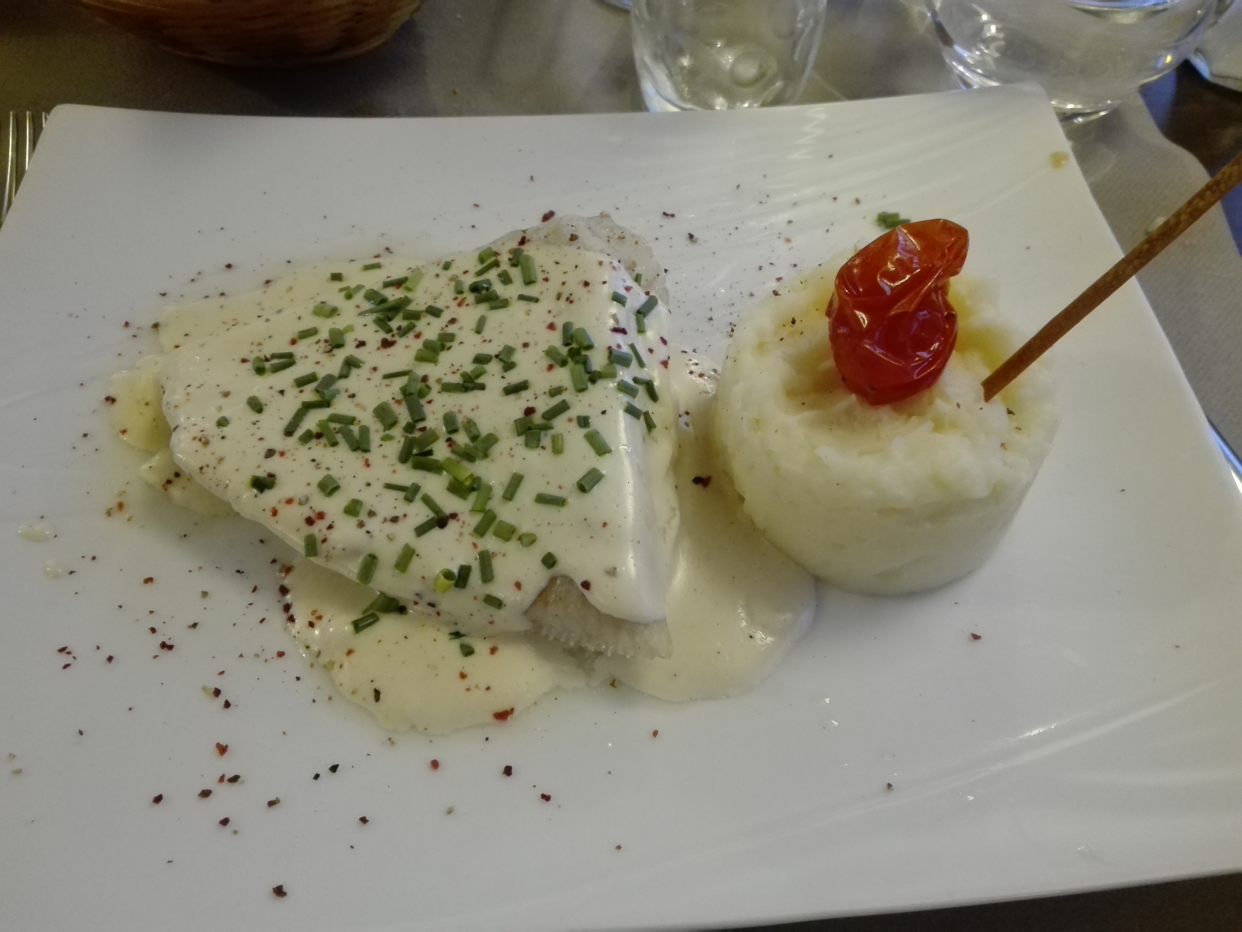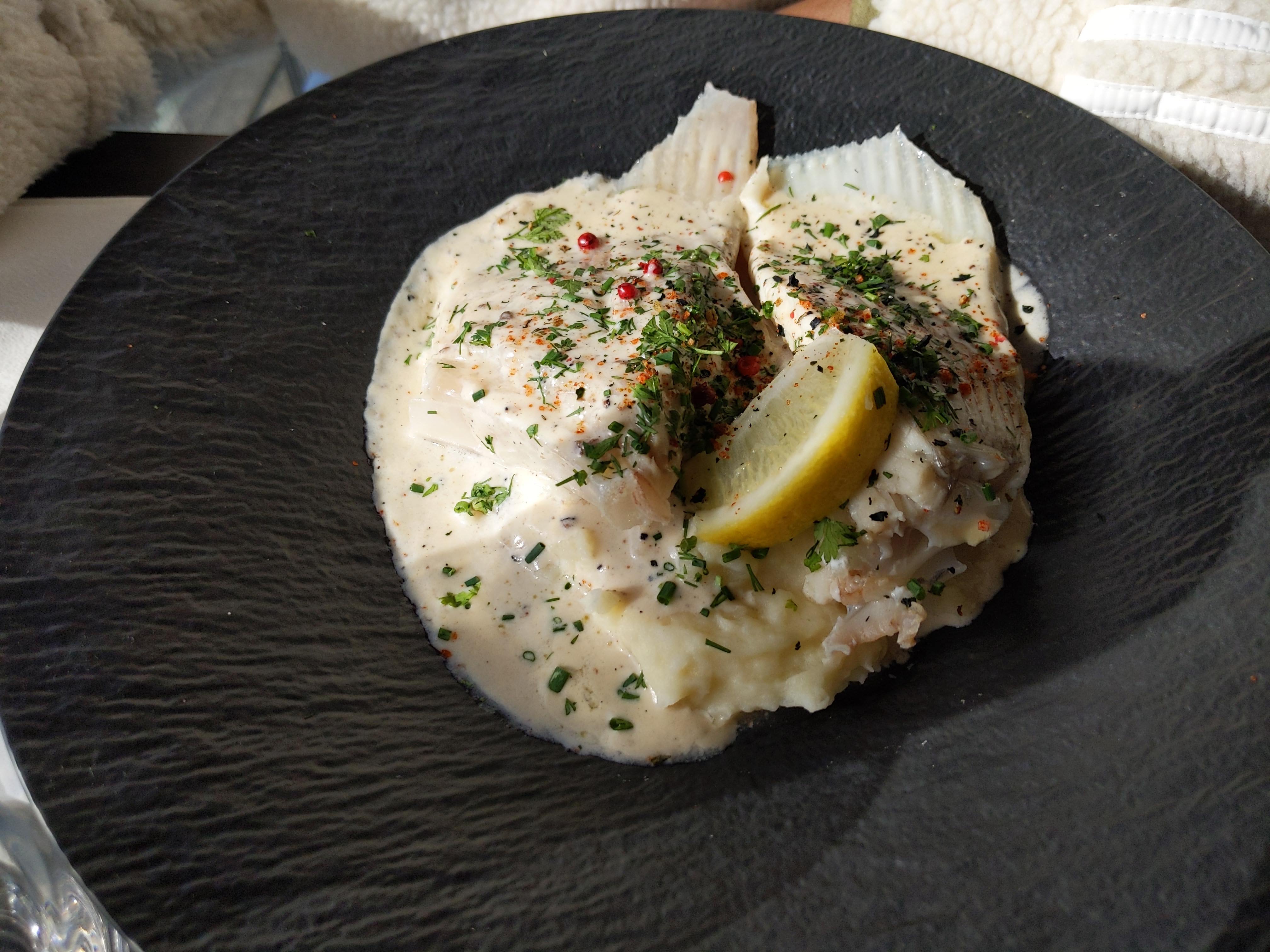 Restaurant sur une péniche 😁 rapport qualité prix moyen, purée de pdt avec l'aile de raie aux câpres fade et surtout avec des baies roses..... Bref sans plus et un portefeuille plus léger.