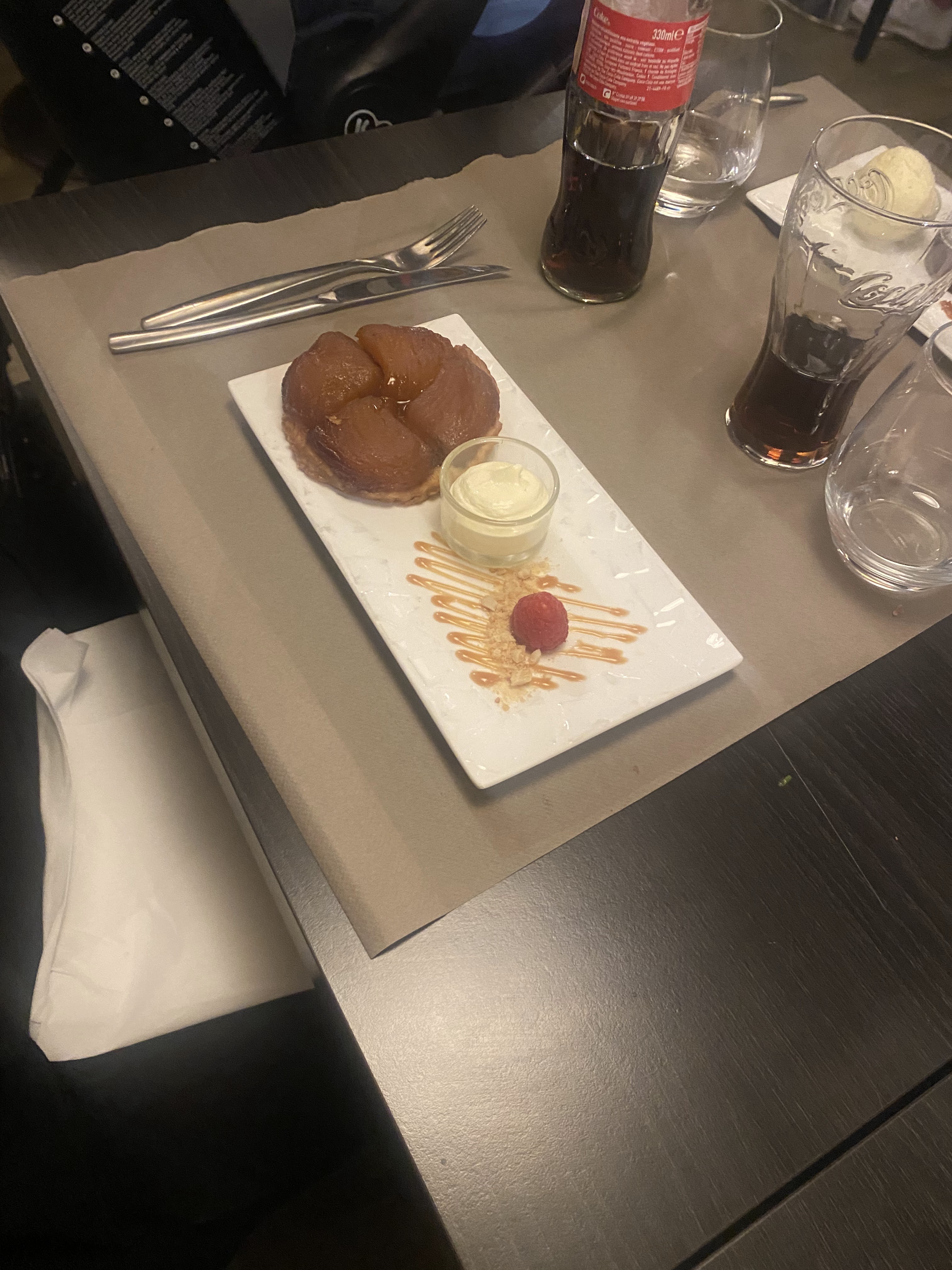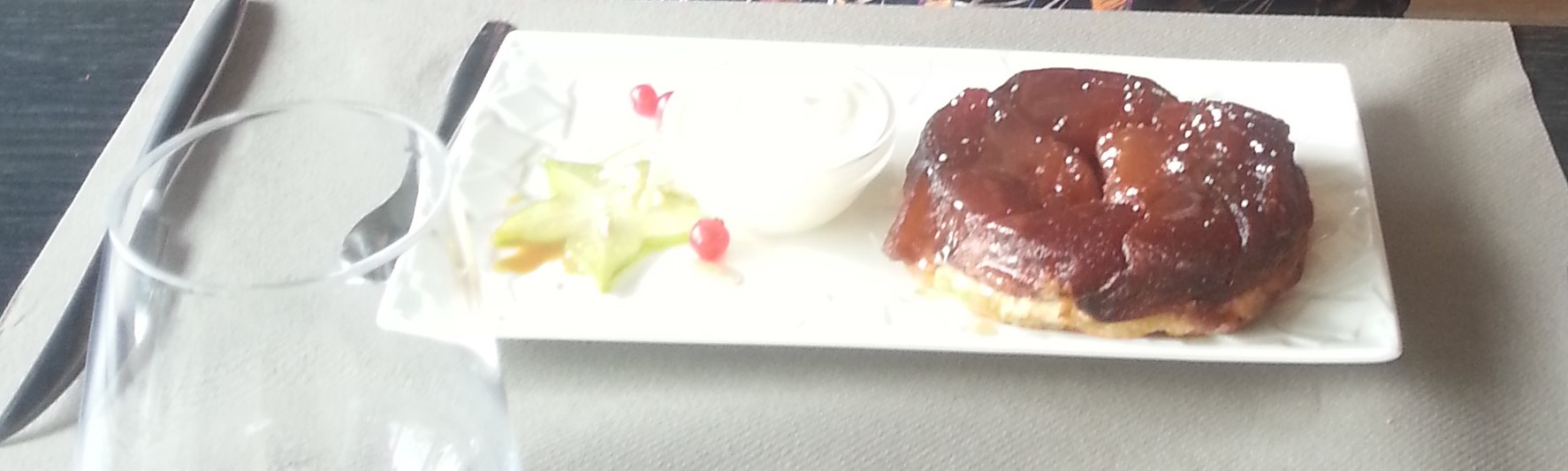 Super endroit romantique sur une péniche accosté au quai . Nous avons passé un excellent moment avec un amuse bouche,un cocktail maison, une choucroute de la mer excellente il manquait un peu de chou à mon goût. C'est très bon . Bien servi.dessert excellent surtout la tarte tatin revisitée a tomber. Je recommande vivement.