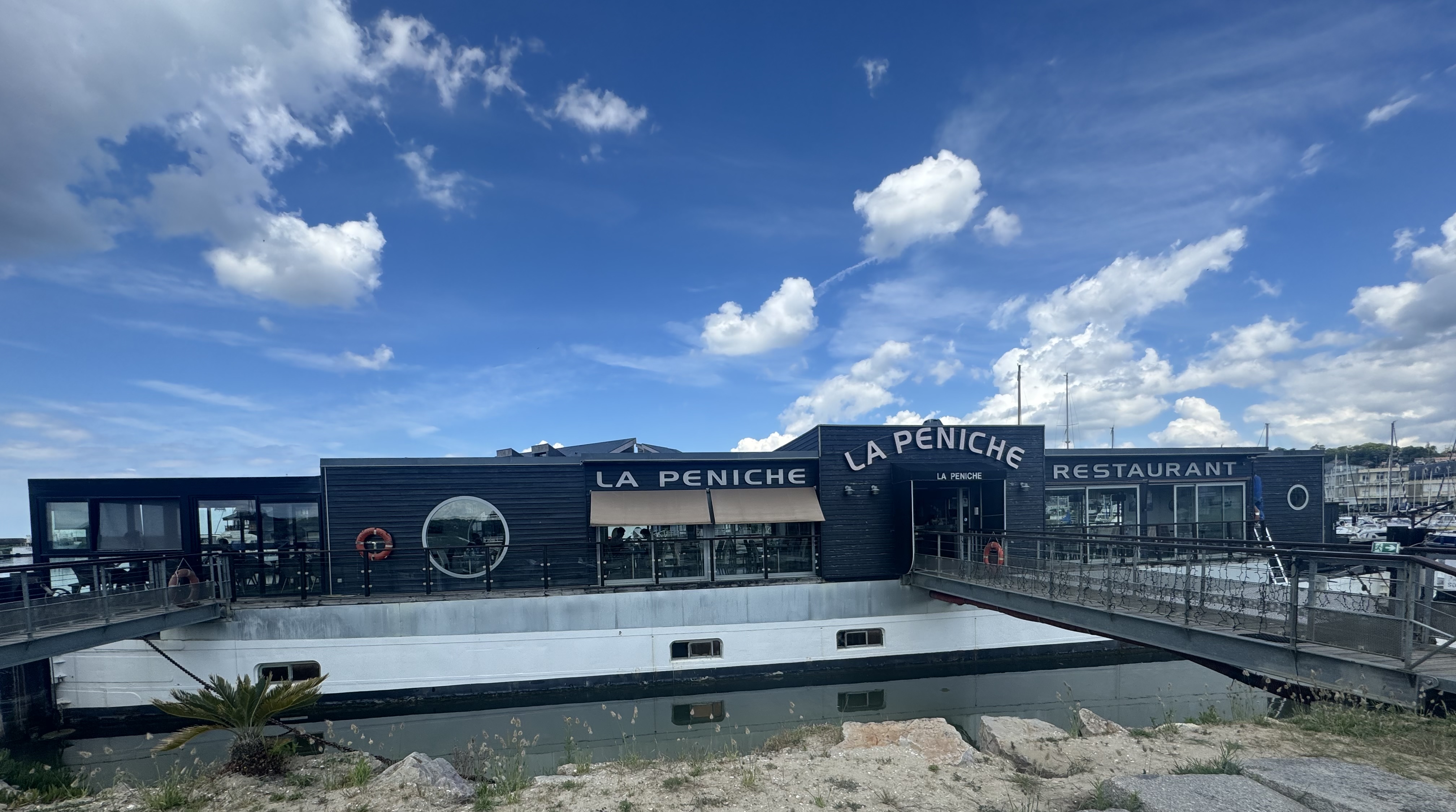 Nous avons dîné au restaurant La péniche avec un très joli couché de soleil, le cadre était agréable. Le service était très bien également et assez rapide. Les plats étaient bons, nous avons trouvé cependant cela assez cher au vue de leur simplicité.