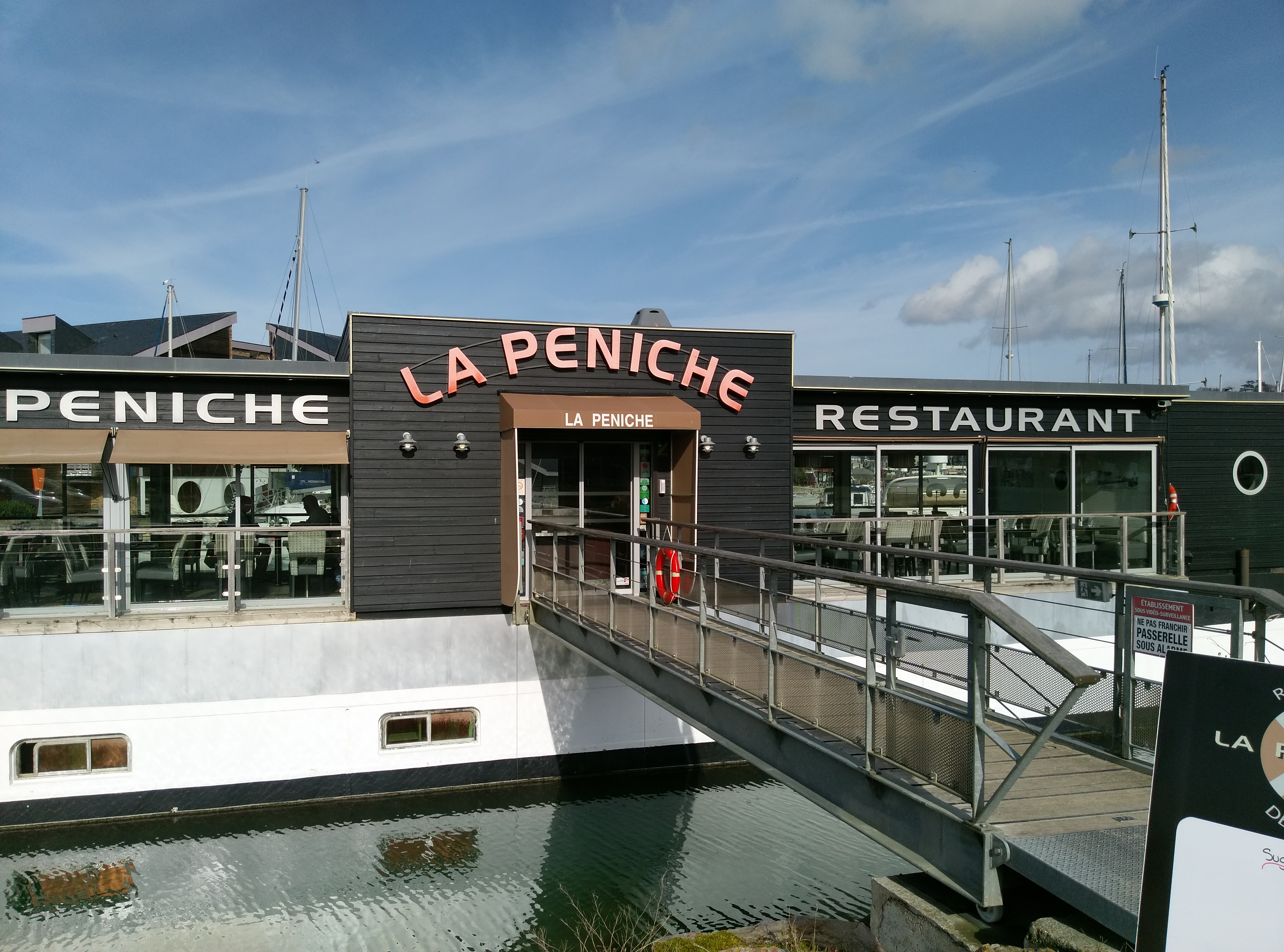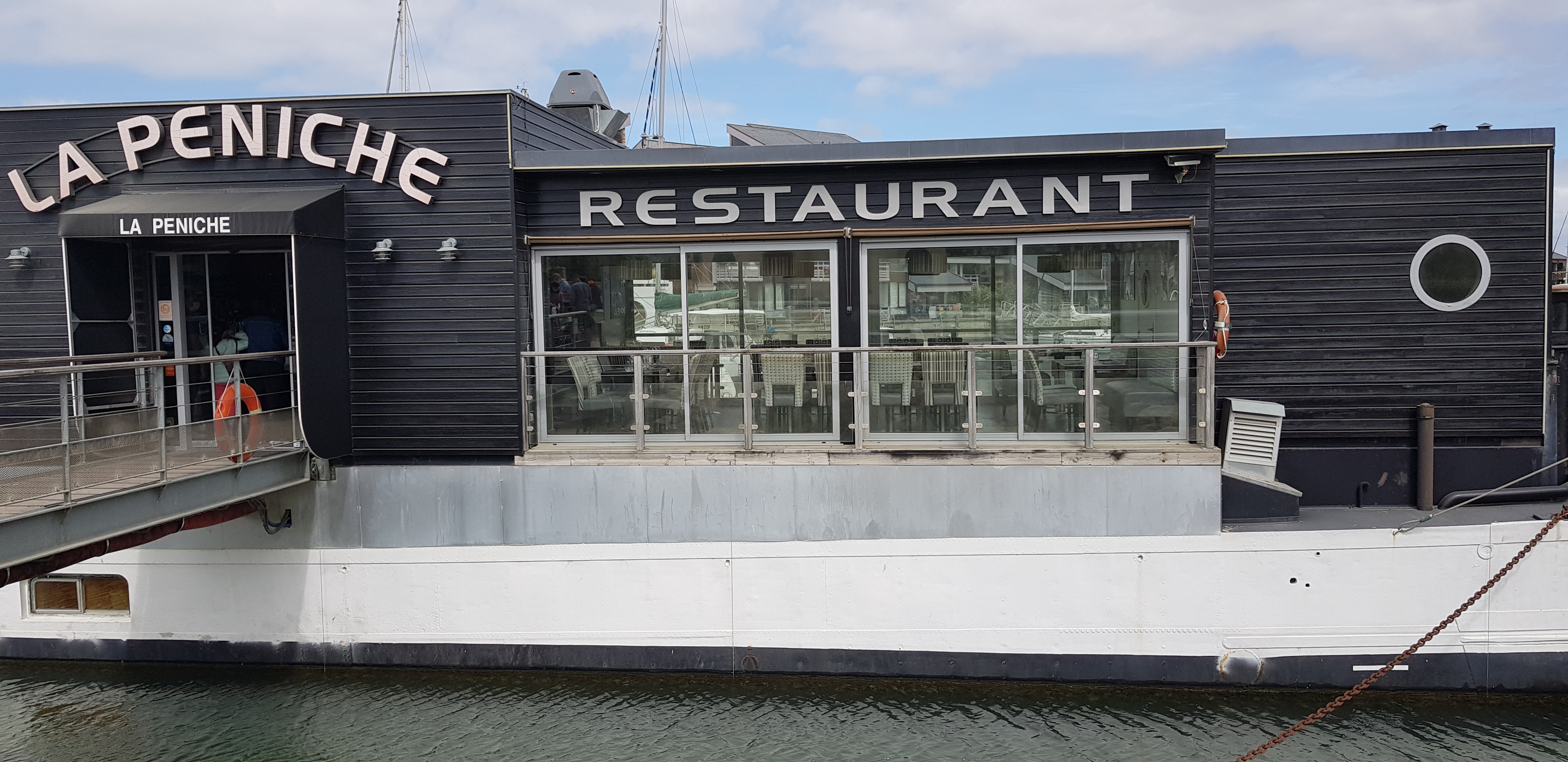 Très bon restaurant axé sur le poisson et les fruits de mer. Les Saint Jacques étaient parfaitement cuite et excellente sauce. Bon choix de poissons avec plusieurs menus. Bon produits. Joli décor moderne sur une ancienne péniche avec vue sur les bateaux de plaisance. Situation idéale. Le service est efficace et très souriant.