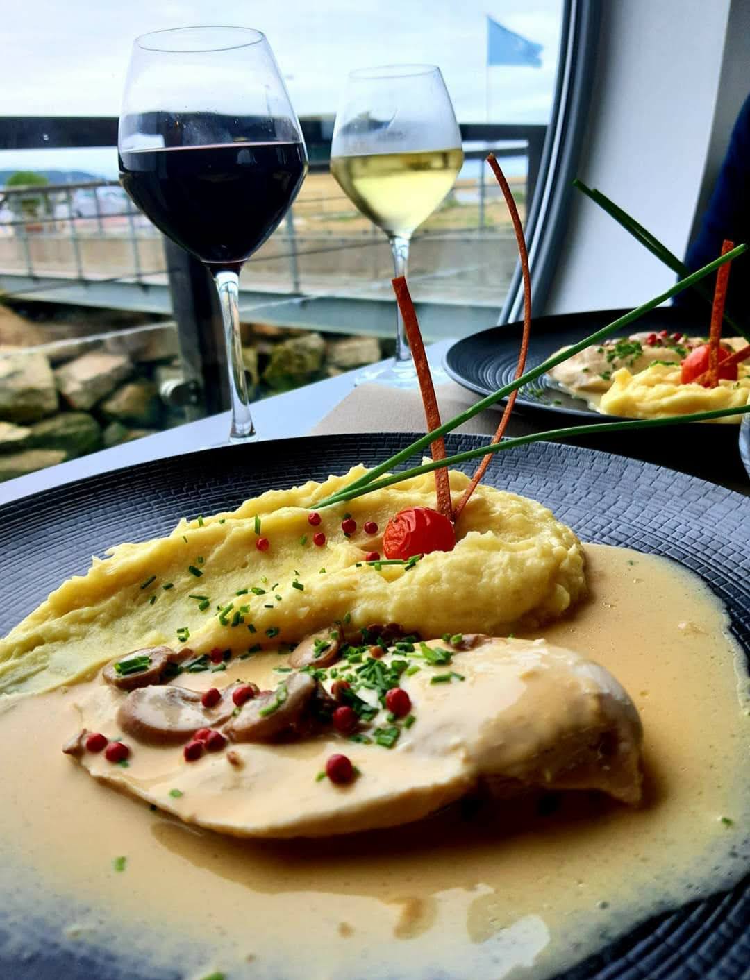 Très bon restaurant ayant une belle vue. L'intérieur est très chic ainsi que la présentation des assiettes. Nous avons pris le menu à 35.90€ (boisson non comprise mais dessert au choix) et nous n'avons pas été déçus. Un petit amuse bouche est offert à l'apéritif. Les portions sont très correctes si l'on prend un menu. Niveau goût, ce restaurant est excellent ! Je vous conseille de réserver si vous voulez une table dans le restaurant.