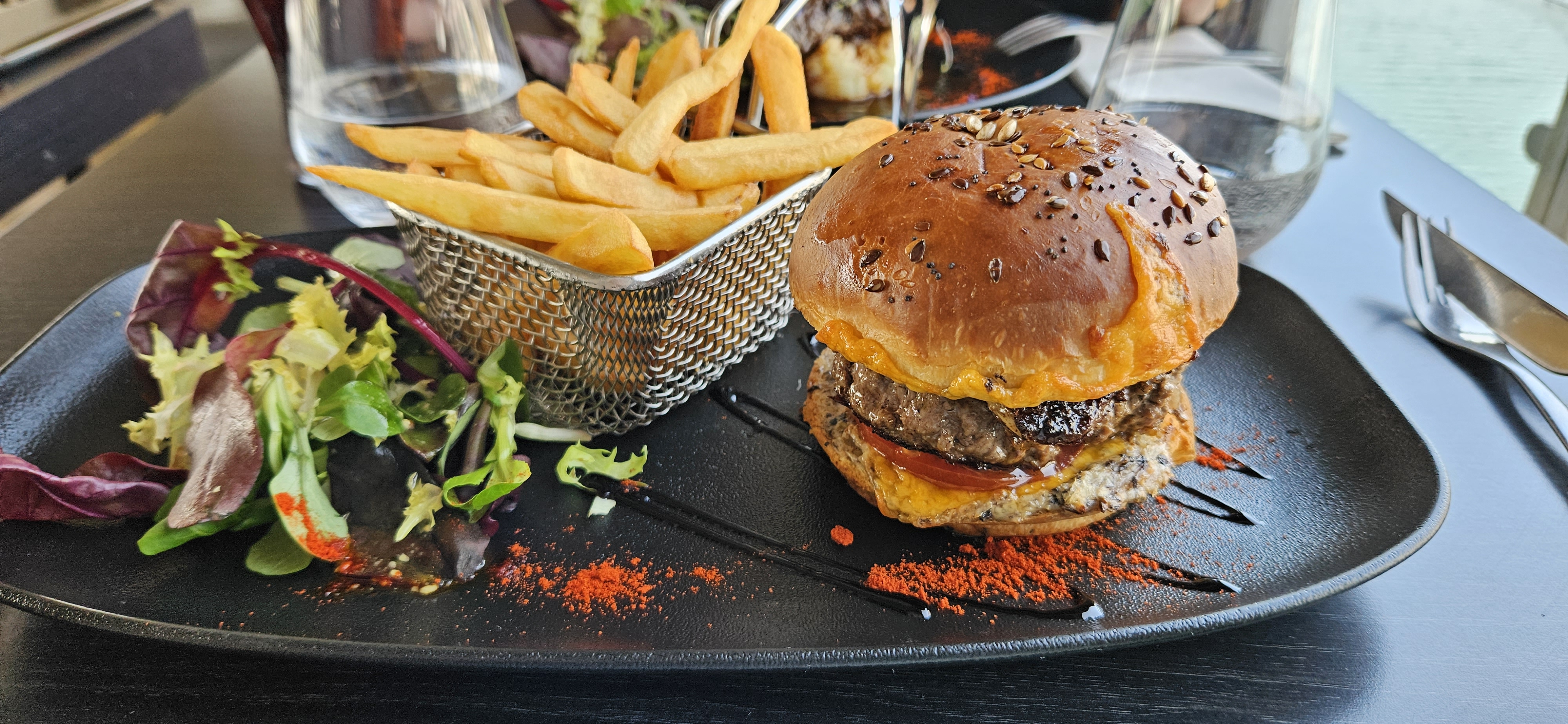 Ambiance très sympa et personnel professionnel. La nourriture est également excellente, mais je dois admettre que j'ai plus aimé la salade que le burger végétarien. Vous profiterez probablement au maximum de La Peniche si vous optez pour les fruits de mer ou les escargots. Ils ont été commandés beaucoup. Le dessert était également excellent.