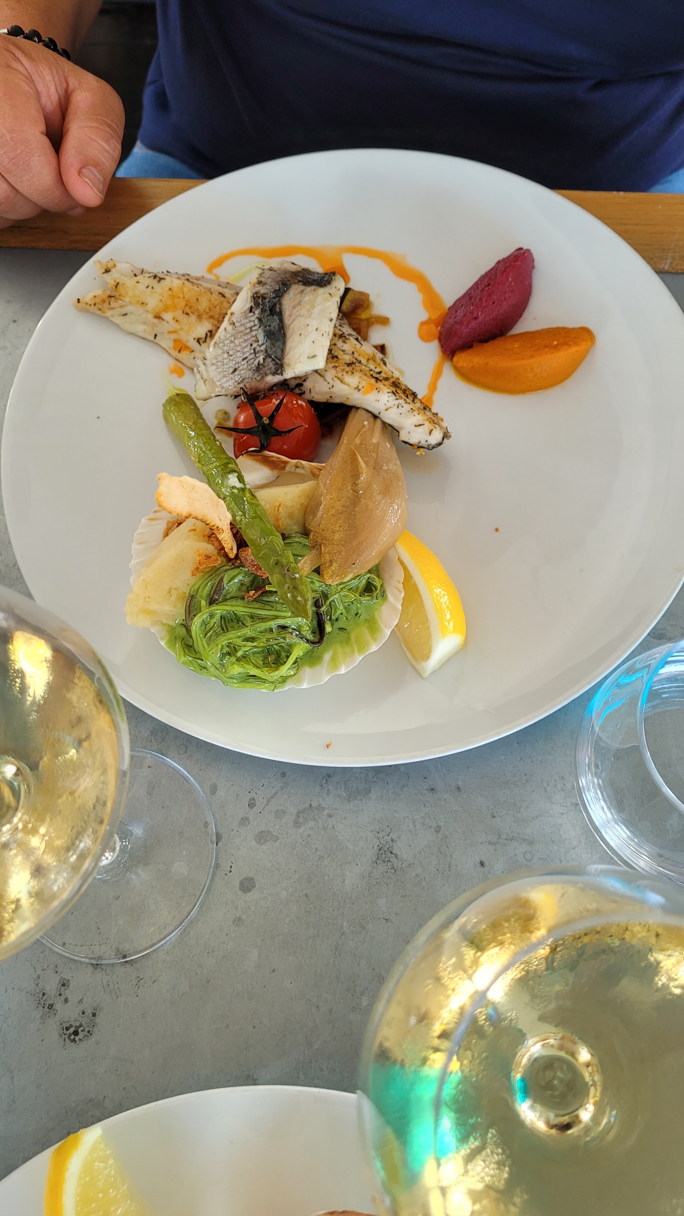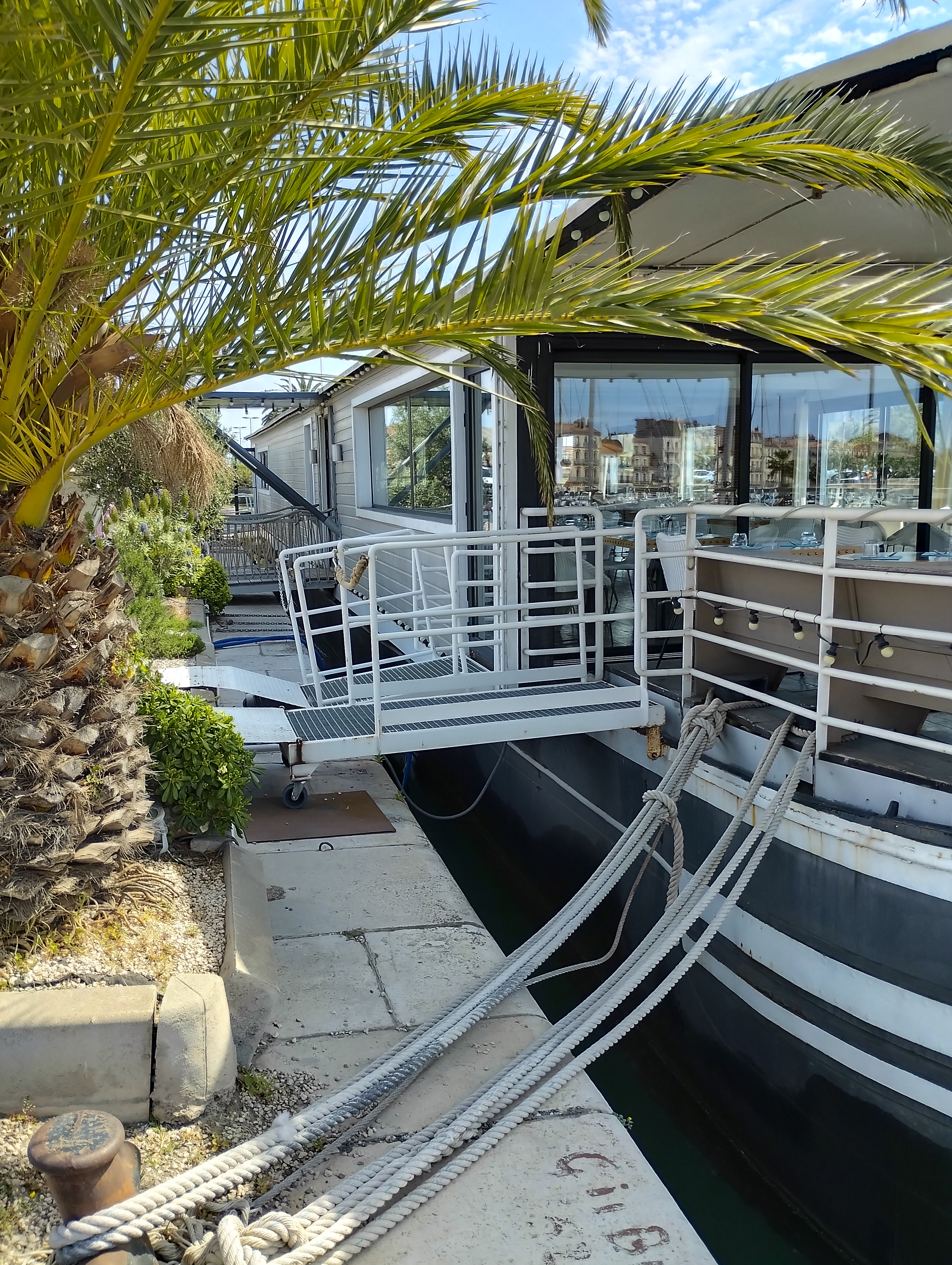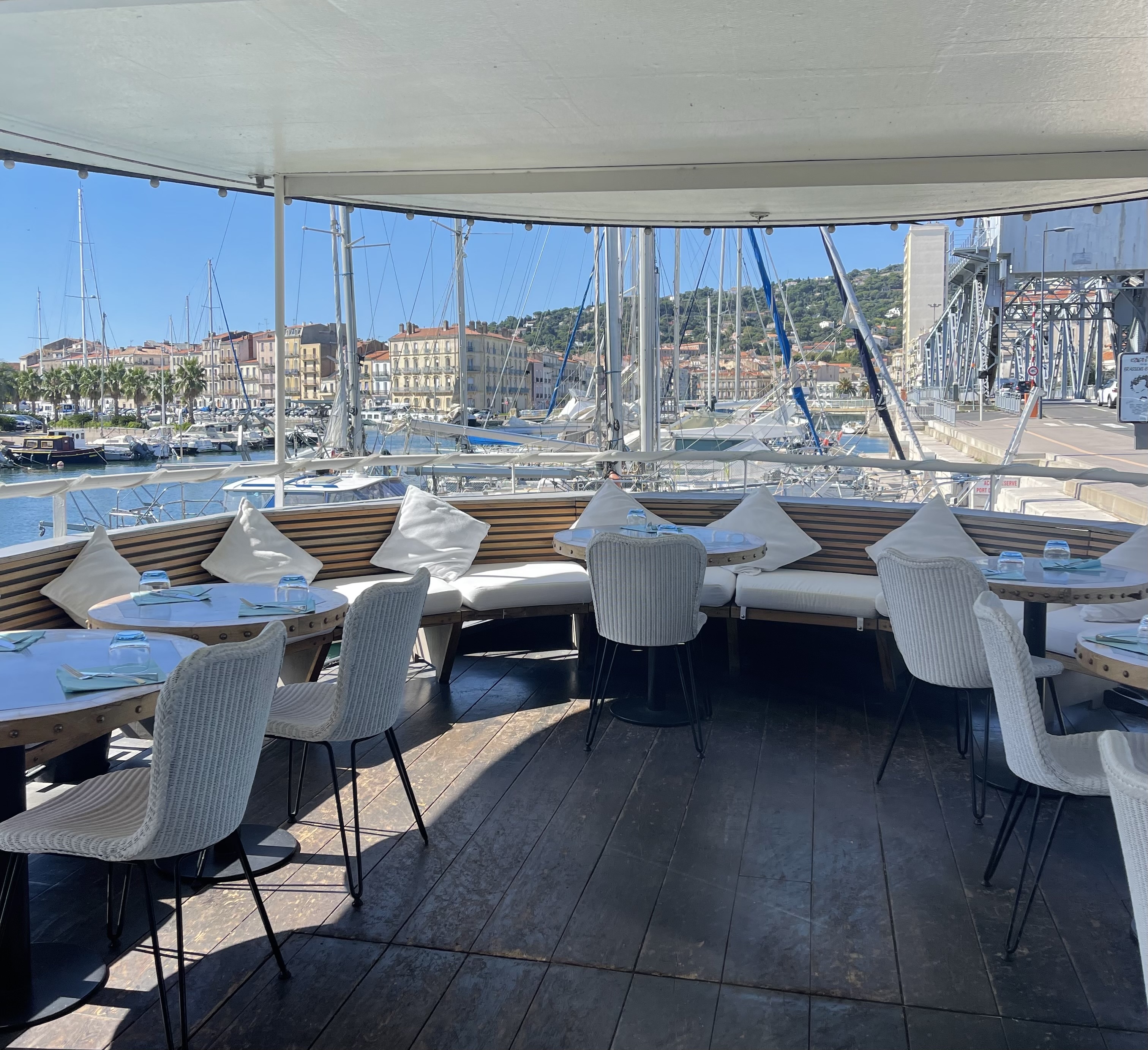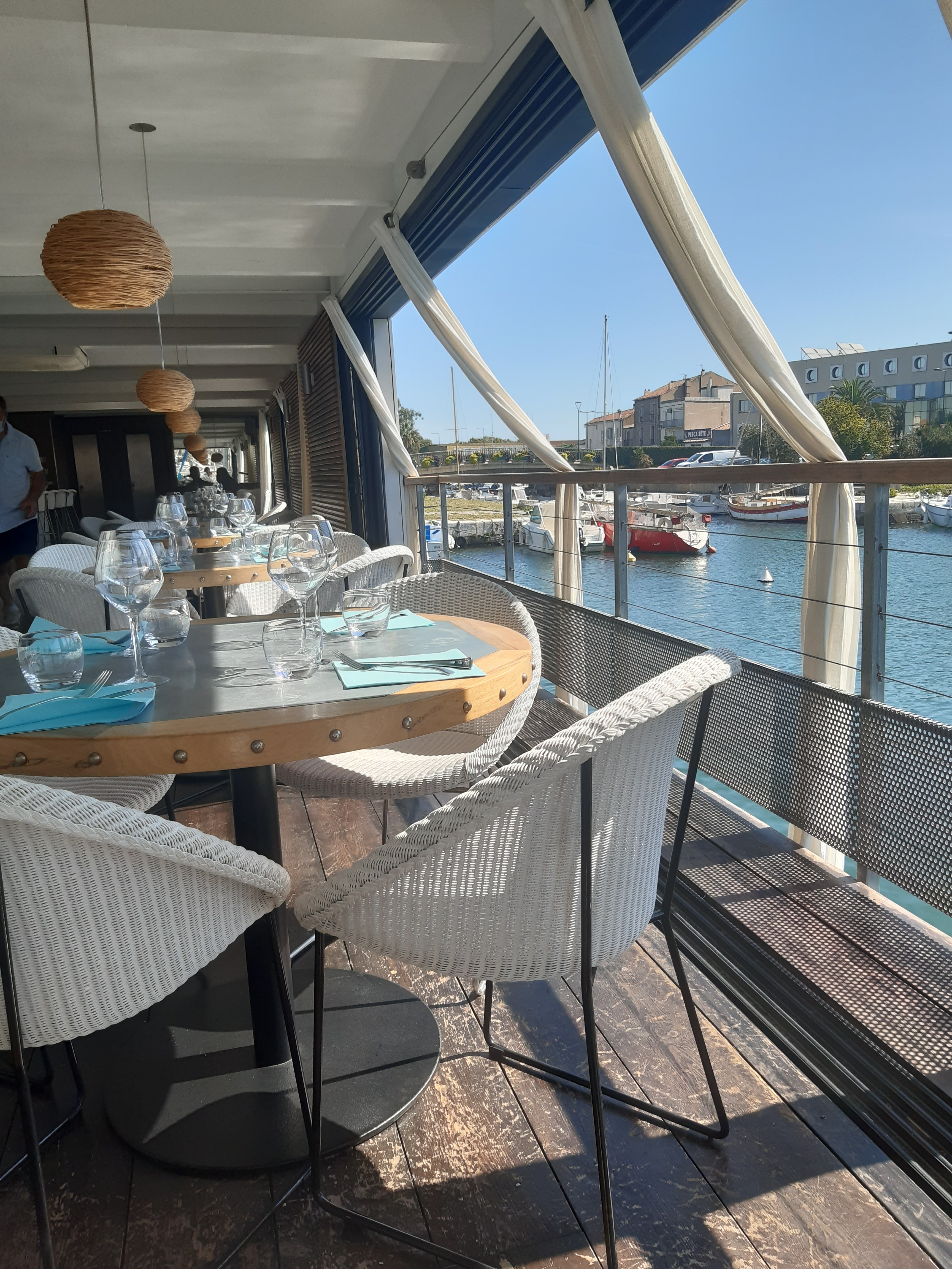 Nous avons déjeuné à 2 couples. Bel accueil, le lieux est magnifique et comme neuf. Service excellent. Le repas est aussi a la hauteur. Le poisson bien préparé, l'accompagnement excellent. Le prix est peut-être un brin fort mais je ne connais pas le niveau de Sète. Je recommande fortement. Merci a l'excellent service.