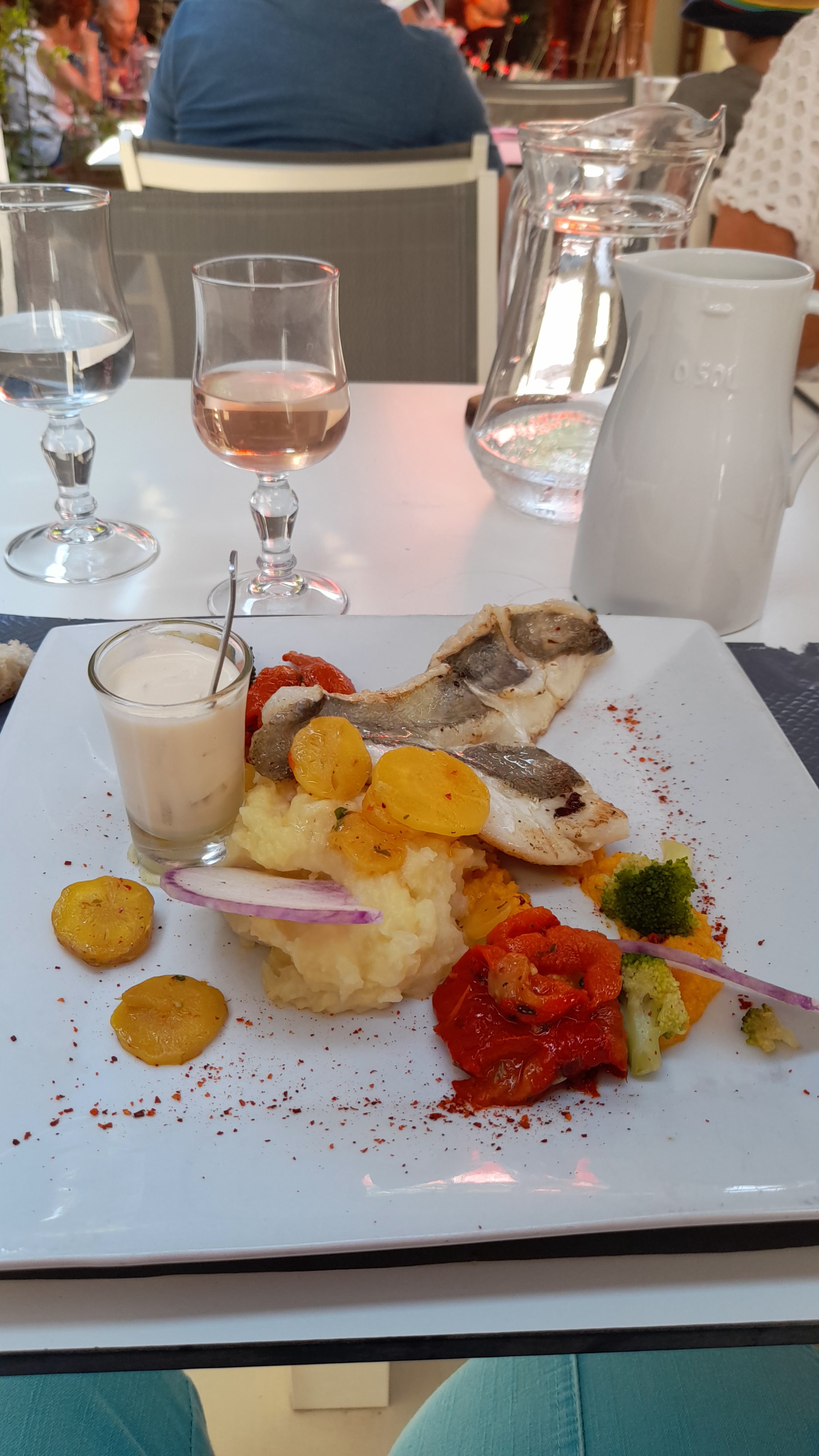 Une belle carte avec des plats pour tous les goûts et un bon accueil avec un rapport qualité-prix correct (pas le genre piège à touristes). Nous n'avions pas prévu de nous arrêter à Homps et finalement nous y sommes passés aussi au retour pour savourer d'autres plats. Du gaspacho maison aux escargots, du filet de saint-pierre aux seiches grillées, du tiramisu à la crême brûlée catalane réellement crêmeuse et ses zests d'orange, vraiment un bon moment de réconfort par ces chaleurs.