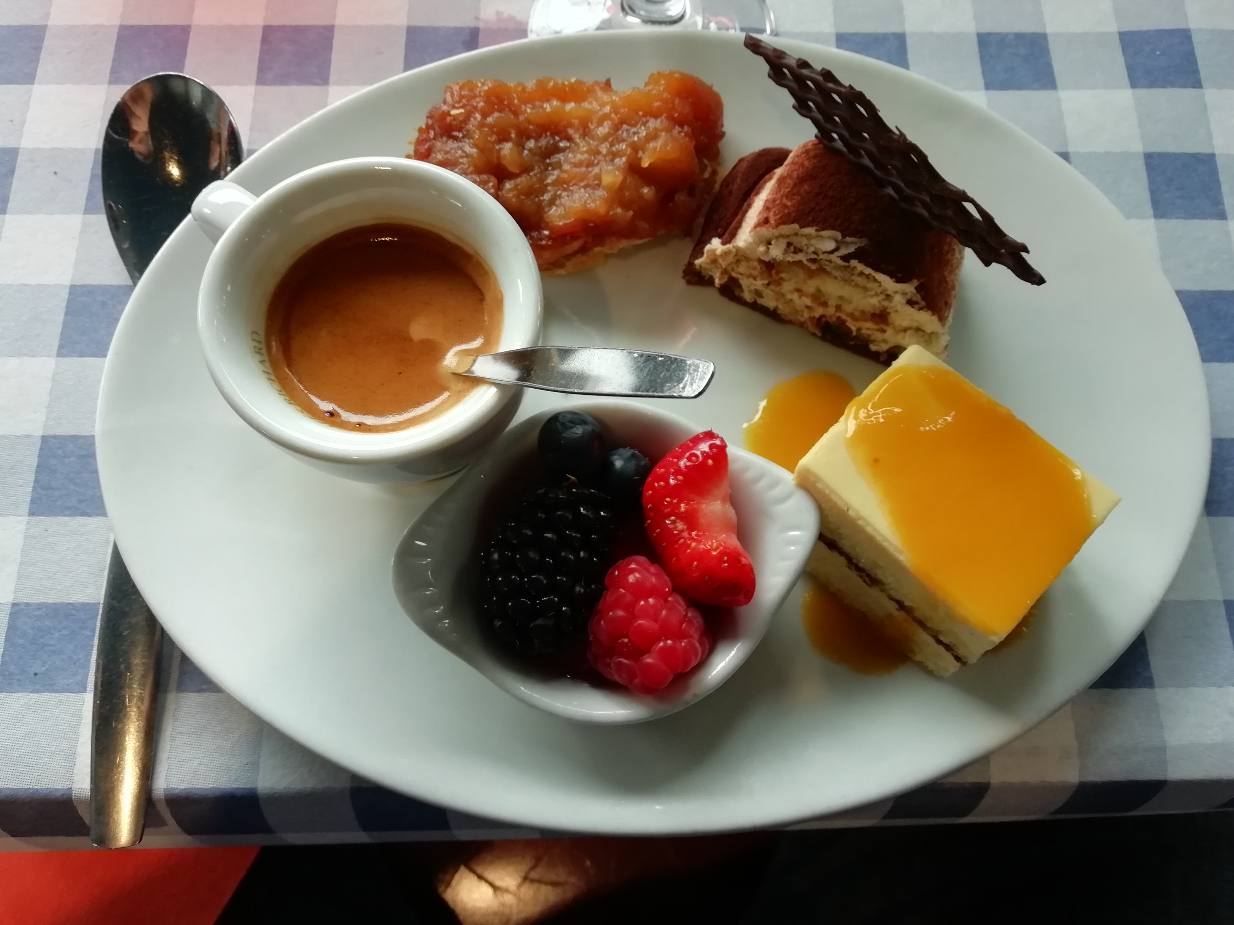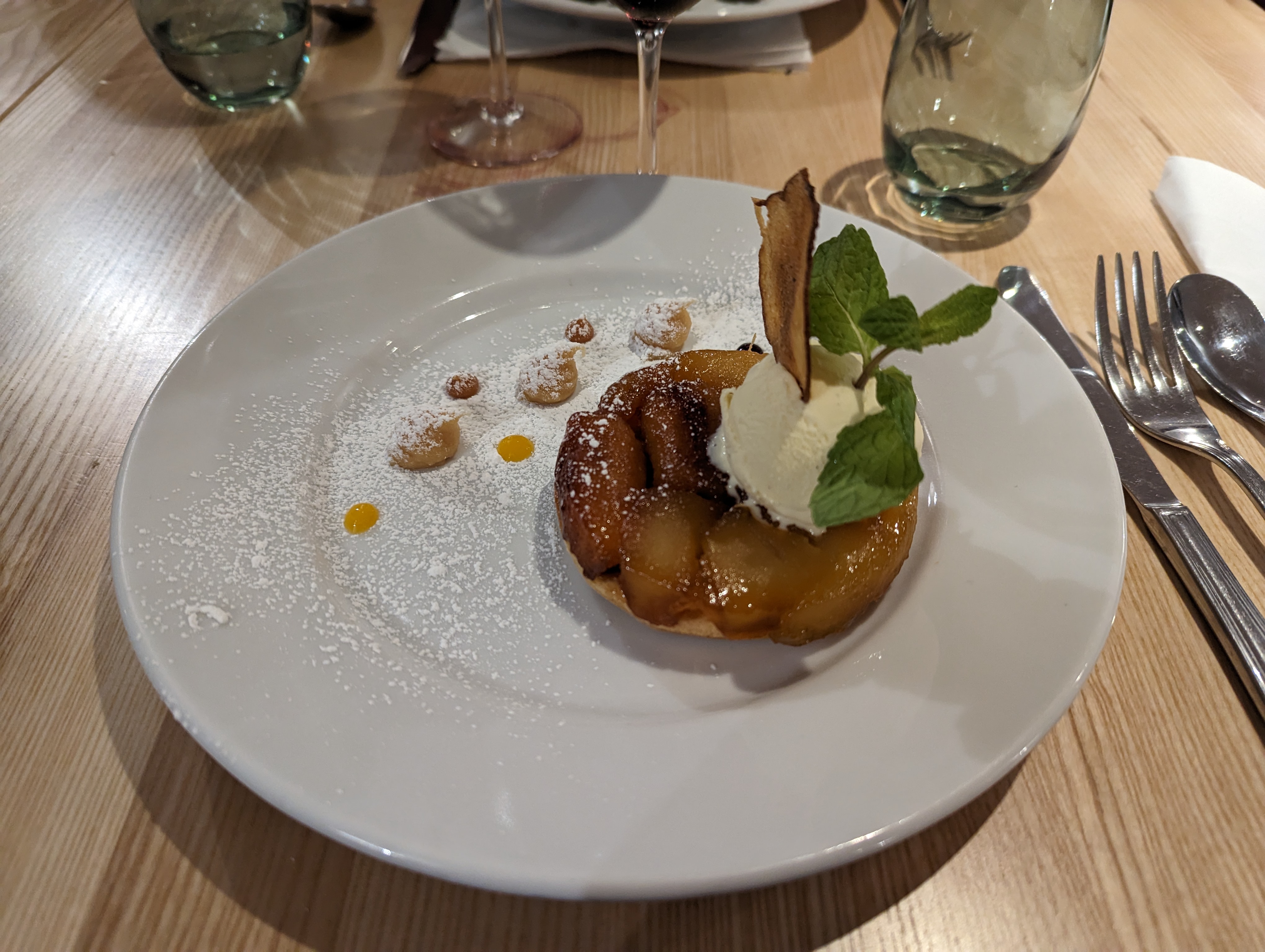 Dans son ensemble très bon, la tarte aux pommes manque a la rigueur de sa compote, l'apéro sans alcool est bon.