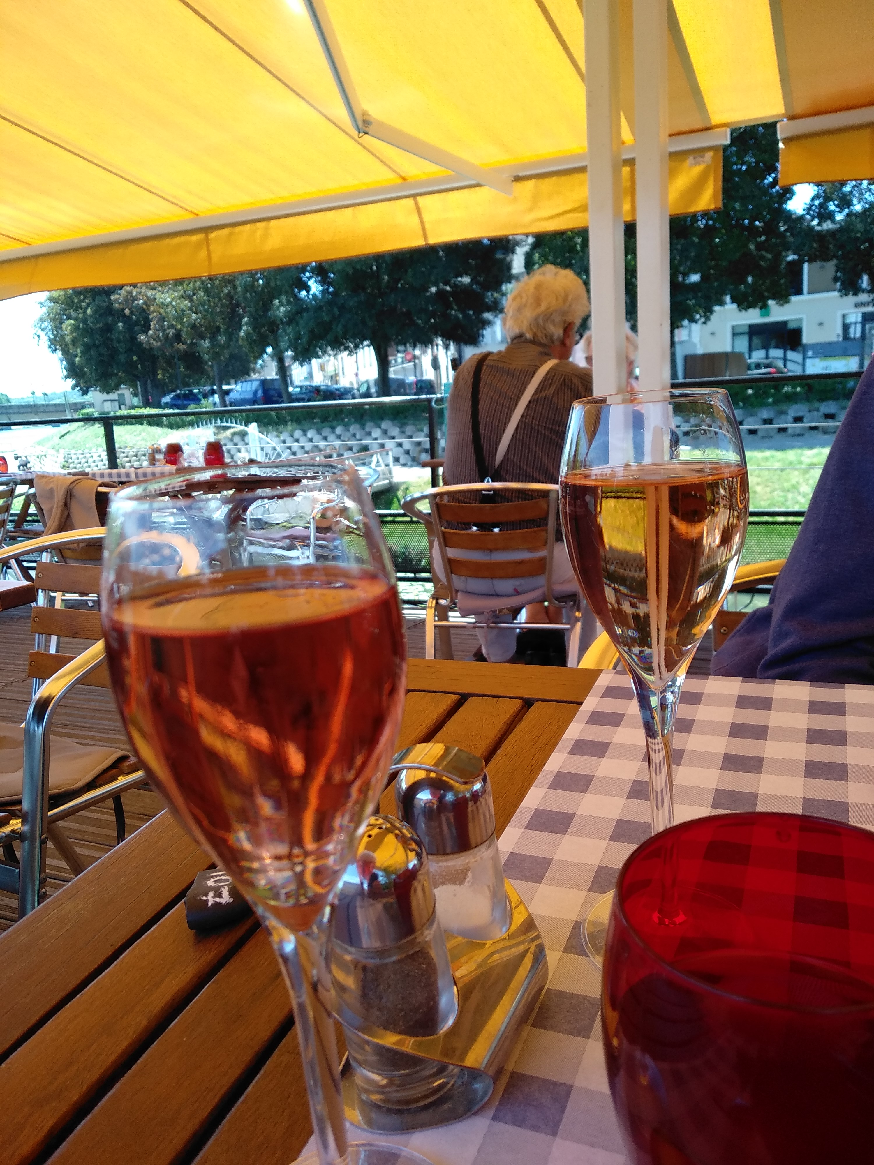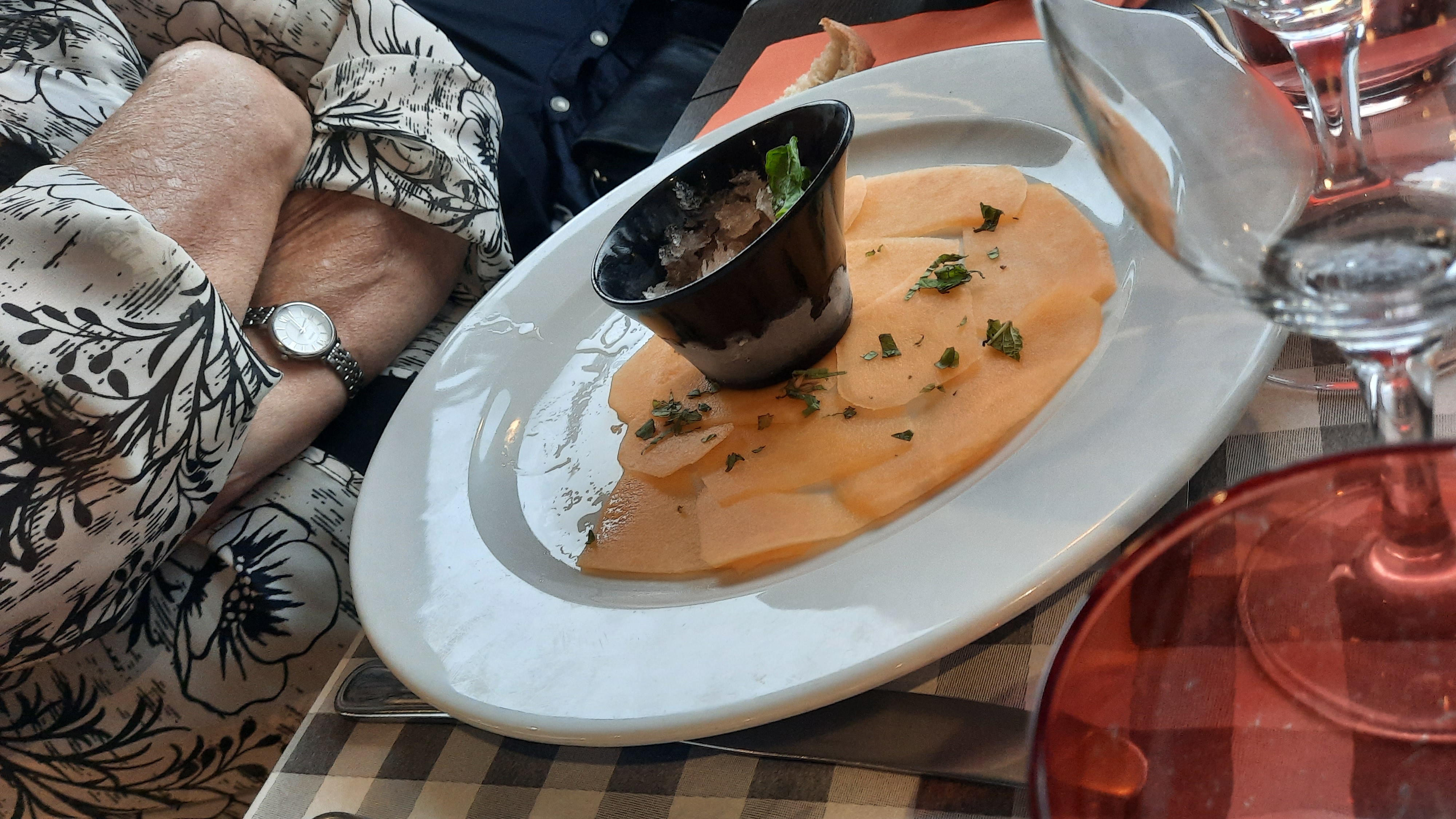 Le damier foie gras pintade : .foie gras extra...de gros morceaux de gras solide dans la pintade assez désagréables sous la dent, les petits légumes marinés accompagnant le plat un vrai délice !!! ...sinon le reste bien et cadre sympa ! !! Mais impossible même en réservant à l'avance d'avoir une place sur le sun deck et très chaud à l'intérieur. Un peu cher quand même pour le type de menu qui reste relativement basique