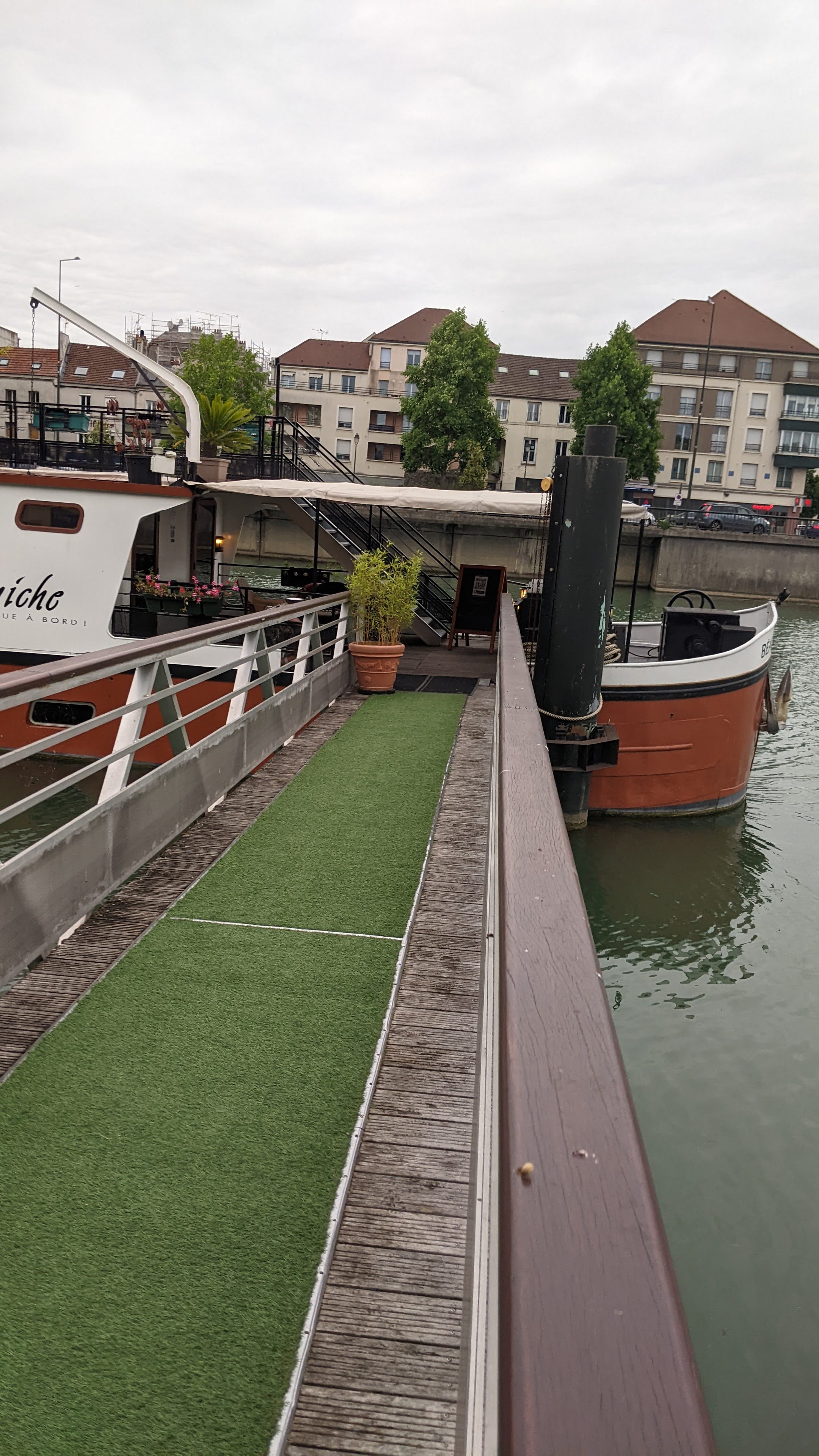 Restaurant avec un super cadre (terrasse sur un péniche, un jour de soleil). Accès aisé, nombreuses places de parking. Décor original : une péniche. Accueil sur la péniche dynamique et fort sympathique. A la carte ou menus. Bonne qualité des plats. J'ignore si tout est fait sur place, mais le résultat est agréable. Nous avons passé un excellent moment. Prix correct pour deux, avec deux menus, deux apéritifs, une bouteille d'eau plate et un verre de vin.