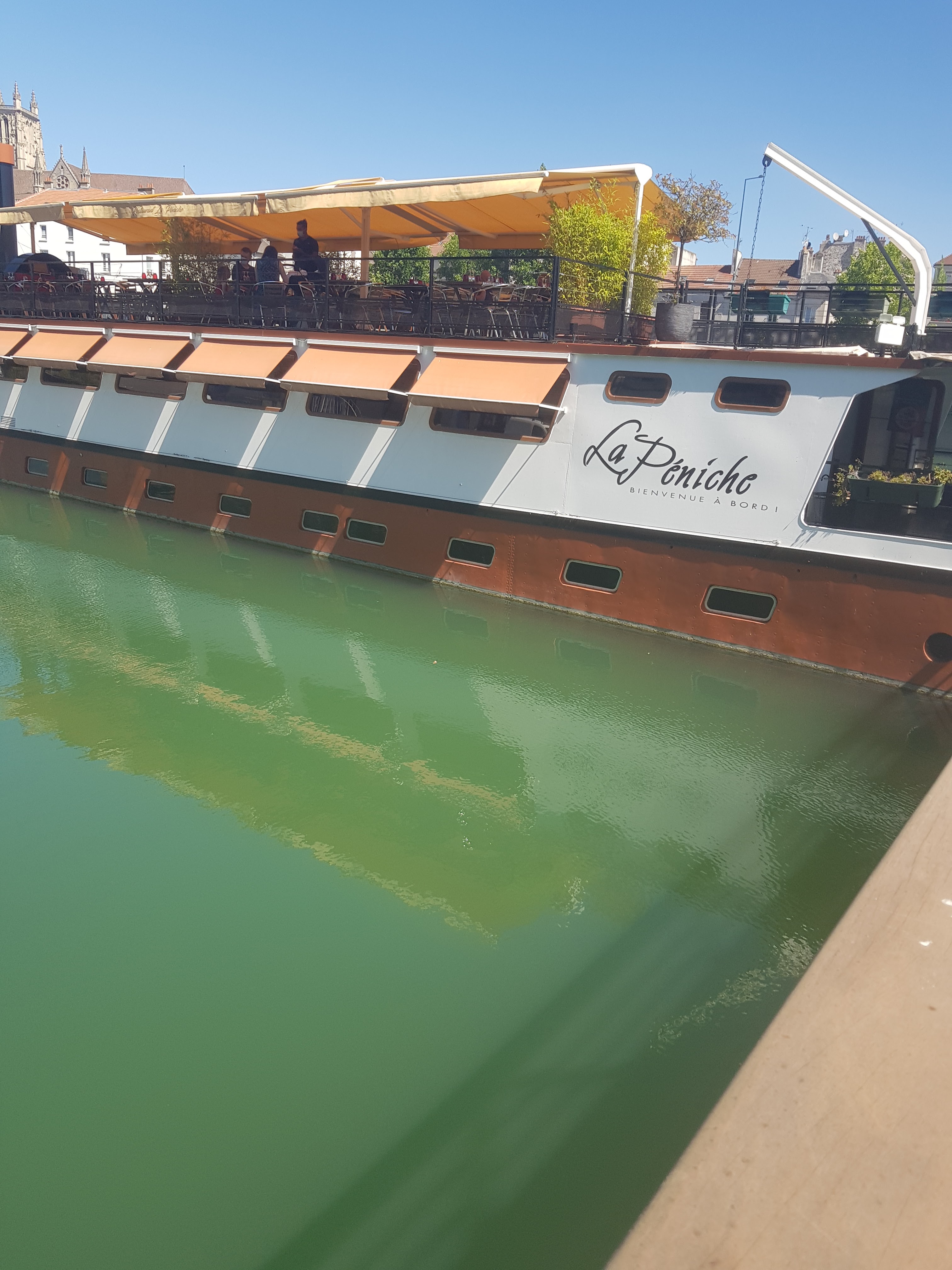 De passage sur Meaux nous avons déjeuné ce midi à la Péniche . Jolie terrasse , dommage que l' on ne puisse pas profiter de la salle car il faisait vraiment très chaud et les guêpes nous ont beaucoup embêté 😵💫 Très bon repas , avec un rapport qualité prix tout à fait correct . Personnel jeune , dynamique et très sympa. Nous recommandons ce resto 👍