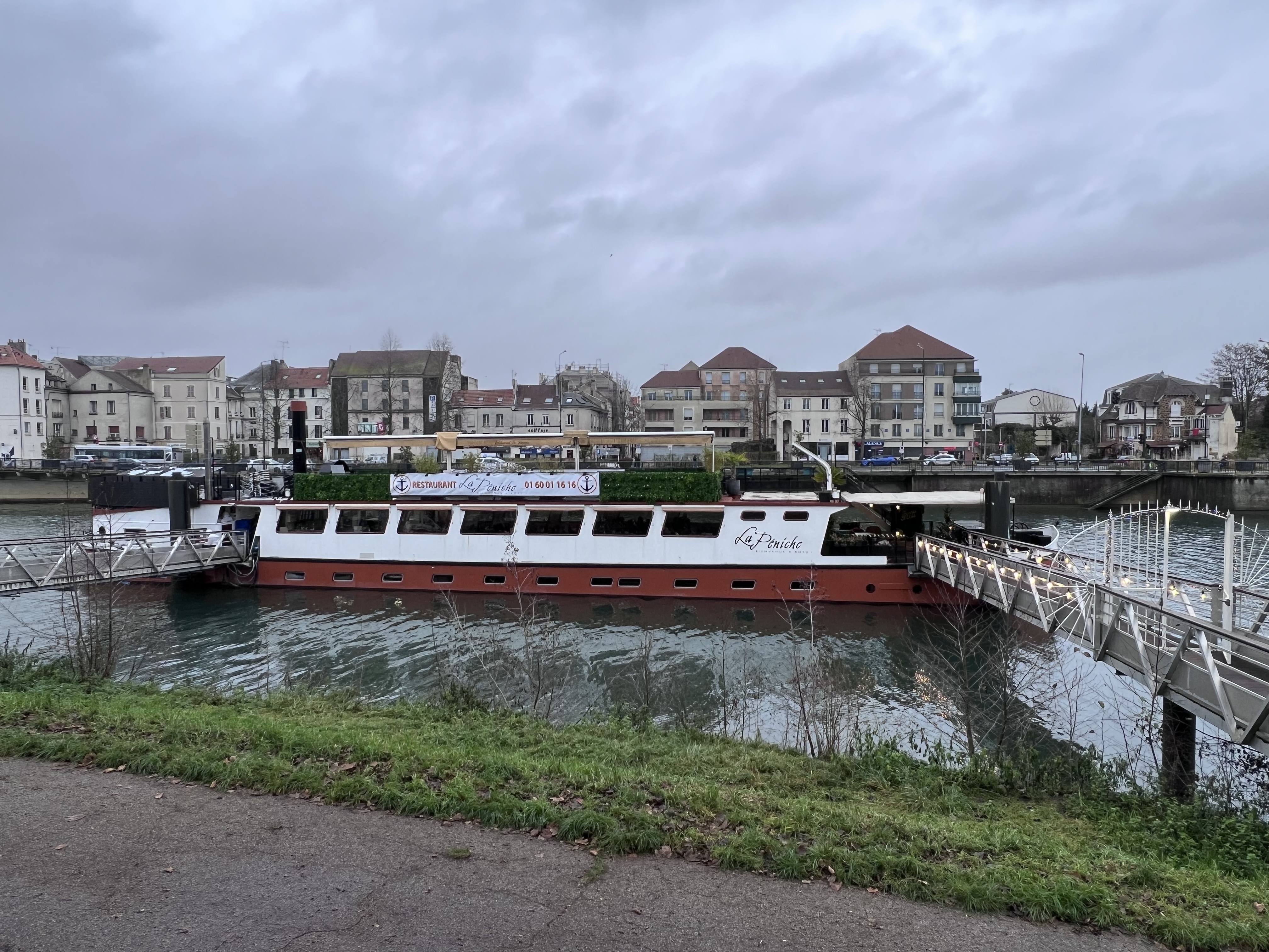Très belle soirée passée à la Péniche, nous nous sommes vraiment régalés et la vue sur la Marne (le restaurant flotte dessus) est vraiment appréciable. Les choix possibles sont simples mais peuvent convenir au plus grand nombre. Ce qui est bien aussi c'est de pouvoir accompagner les mets avec des verres de vins différents à chaque plat. Vous l'aurez compris, le restaurant La Péniche allez-y et retournez-y 😉
