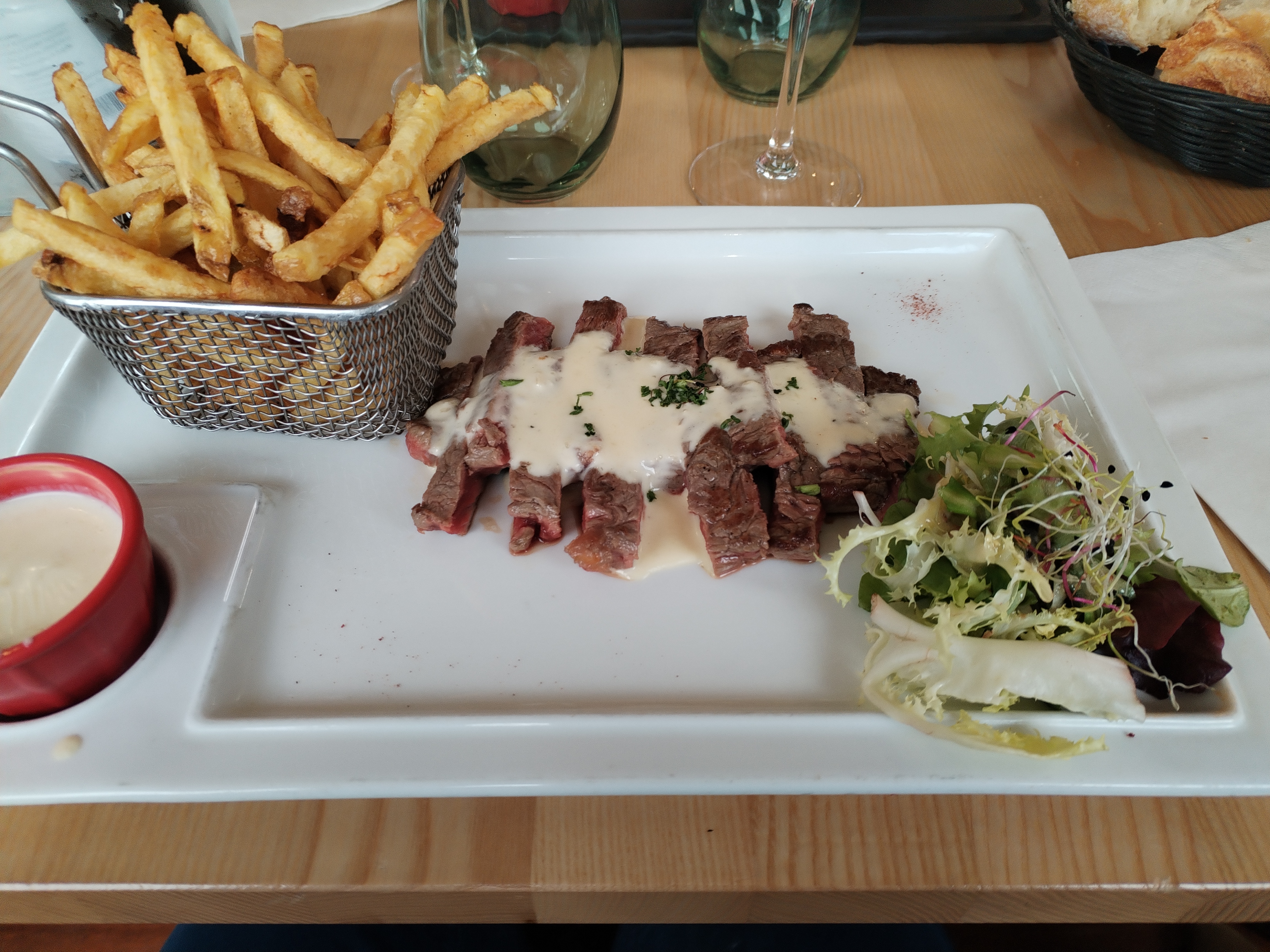 Rien a dire. Service correct. Repas délicieux. Carte réduite mais très bon choix proposés. Les serveurs sont aimable. Nous avons passé une très bonne soirée.