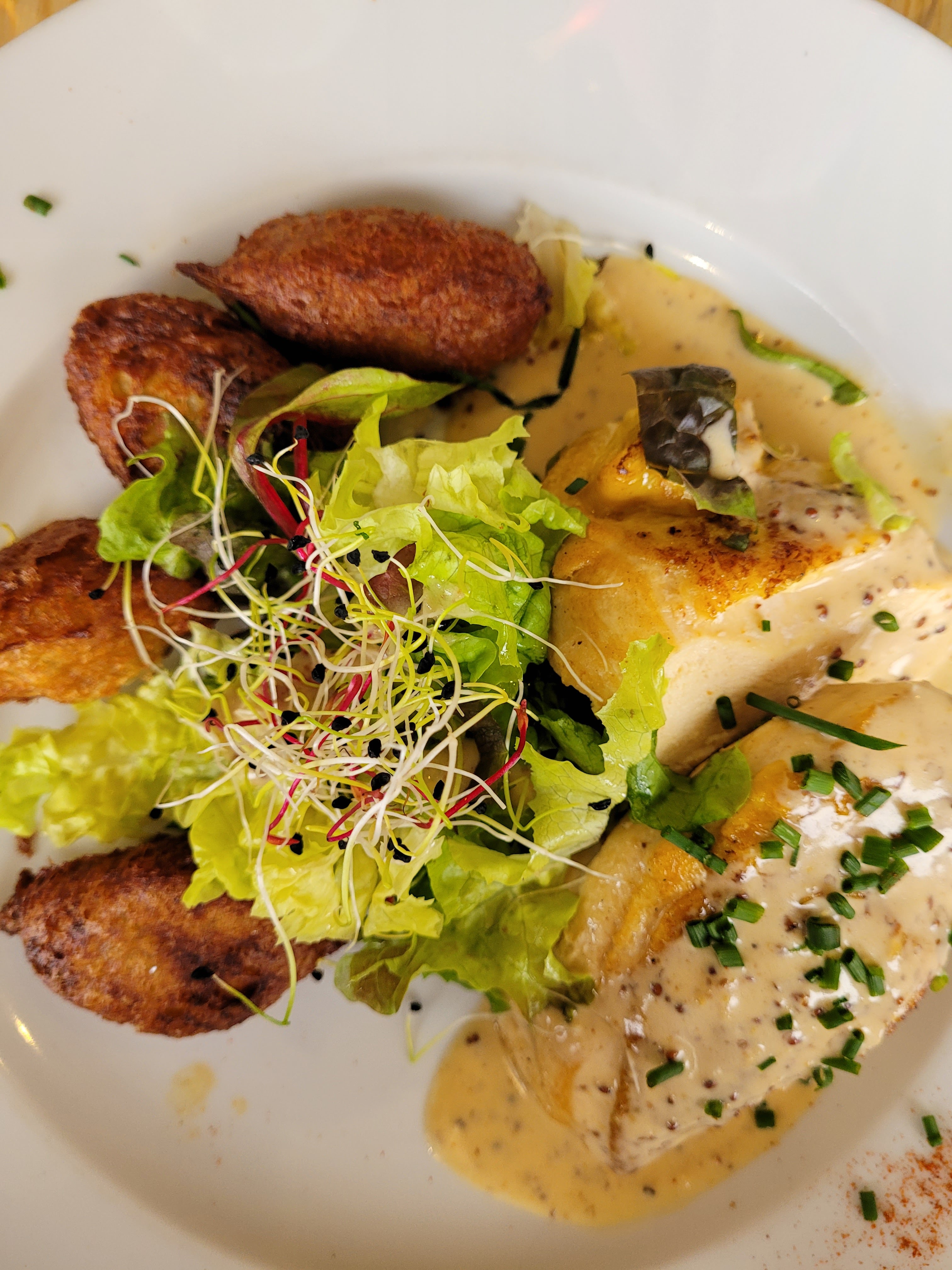 Très bien! Super accueil, de beaux plats avec de bons produits. Là présentations des plats et le service ont été parfait, rien à dire. Nous étions un grand groupe et le service a quand même été rapide et efficace sans être expéditif. On ne nous a pas pressé mais nous étions servis en même temps sans grande différence de temps. Un beau et bon plat à été proposé à notre végétarienne. Vraiment très bien.