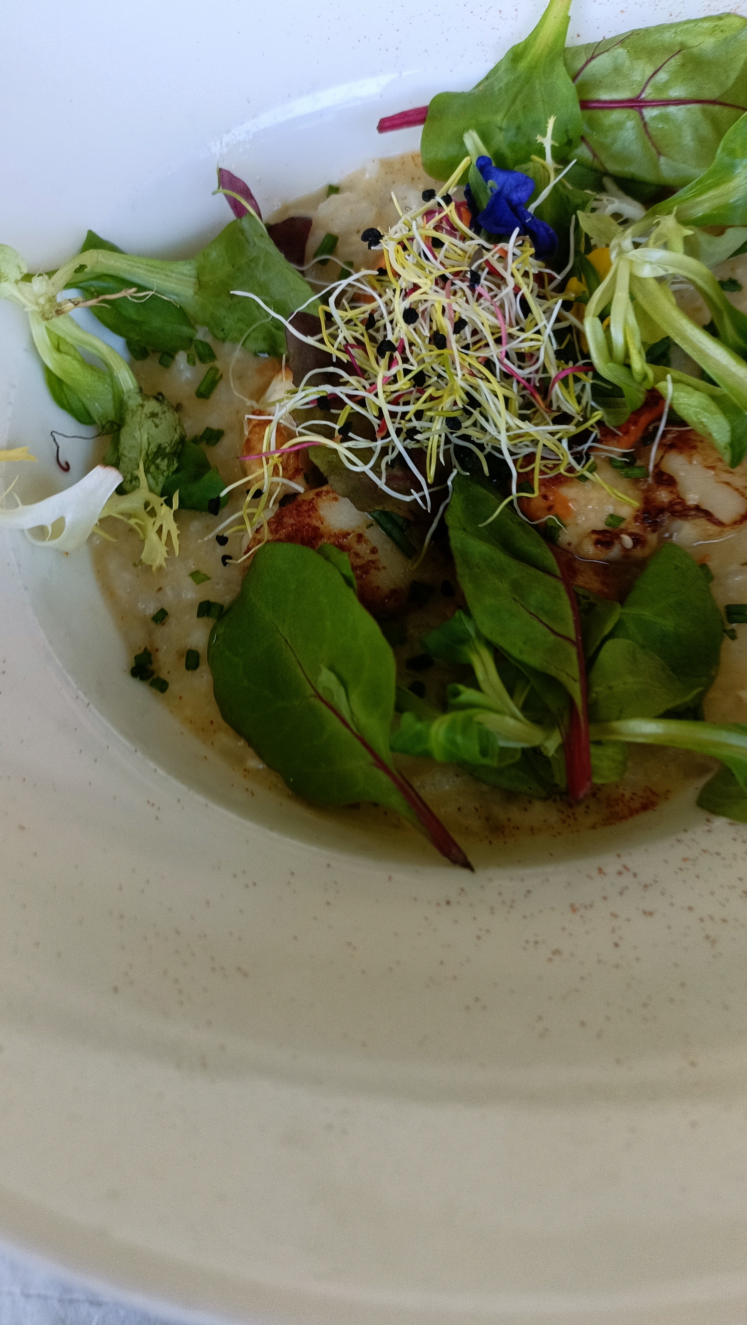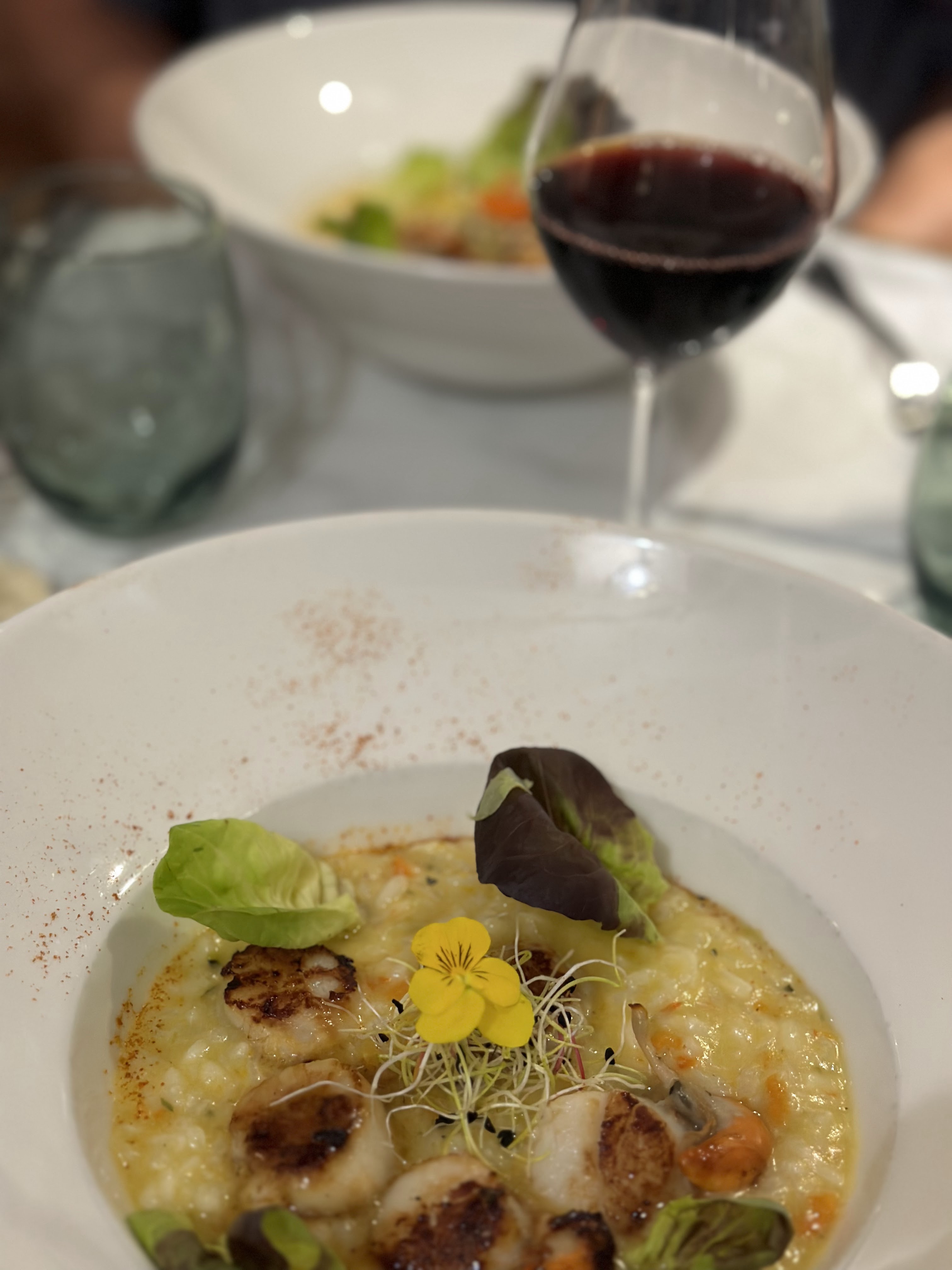 Un lieu sympathique au calme au bord de l’eau, belle décoration eeeet surtout on a très bien dîné, le menu est restreint mais délicieux! Un grand merci à Baptiste qui assure un bel accueil, à su se montrer présent mais pas trop ! Je vous recommande le risotto st jacques! Et le café gourmand .très belle présentation au niveau des plats bref tout était nickel Merci