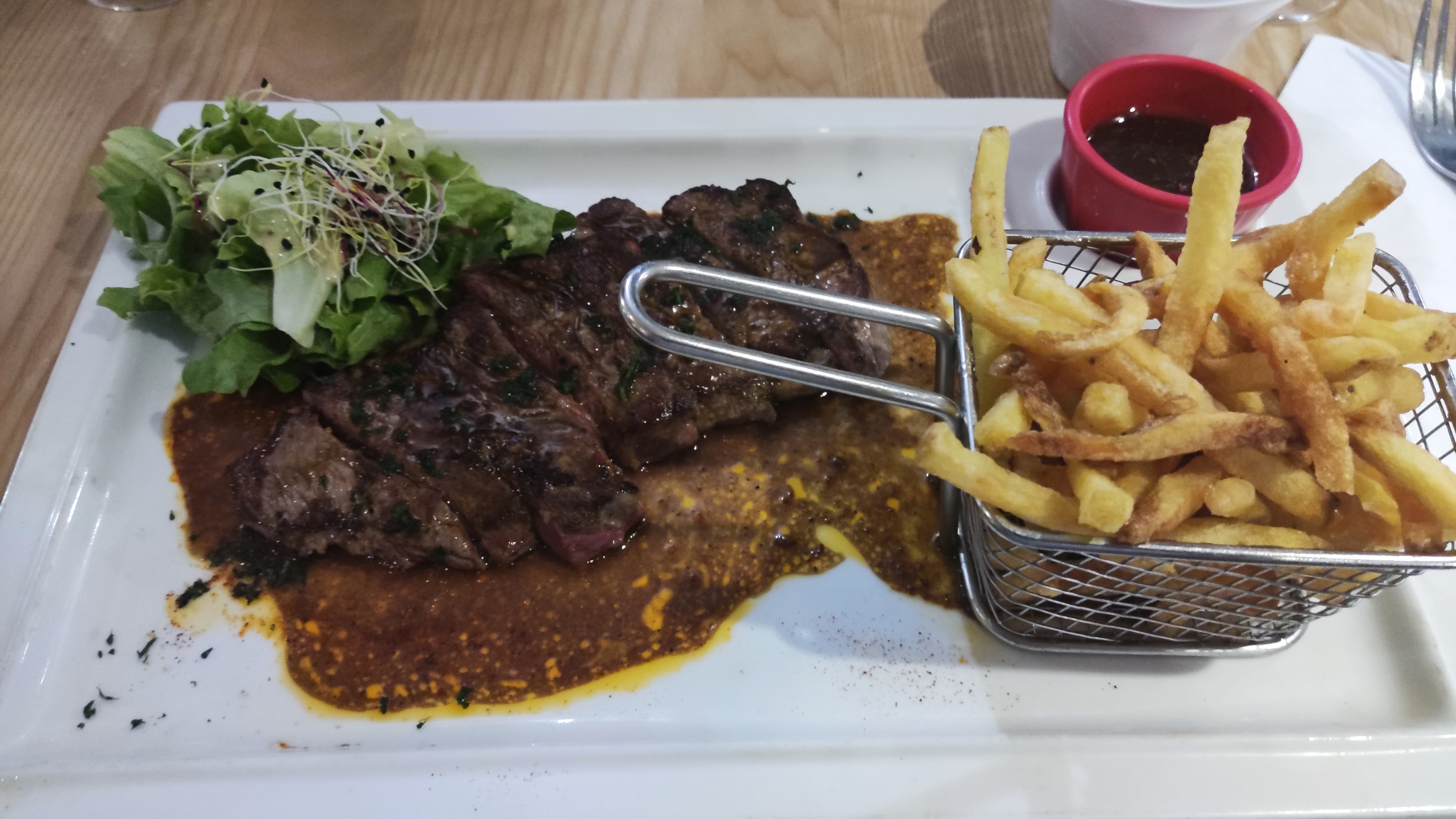Le lieu est sympa, le choix et qualité des plats est bon sans plus. Le personnel est à l'écoute. Mon plat était la pièce de boeuf(poire) sauce moutarde.