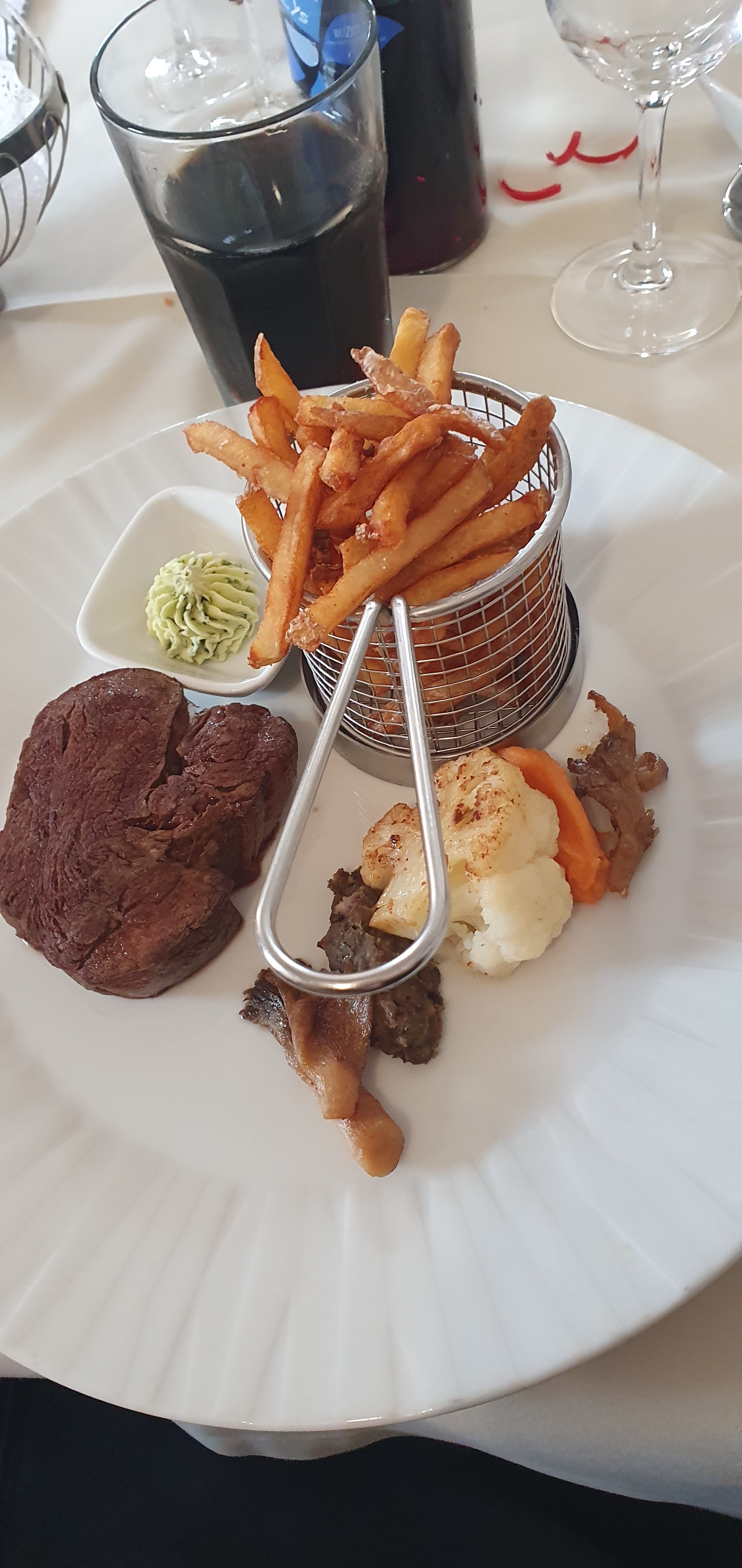 Filet de boeuf 19,90€ deux petits morceaux de viandes demandé saignant mais trop cuit je déconseille en tout cas de commander le filet de boeuf trop chers pour ce que c'est, j'ai encore faim 😓