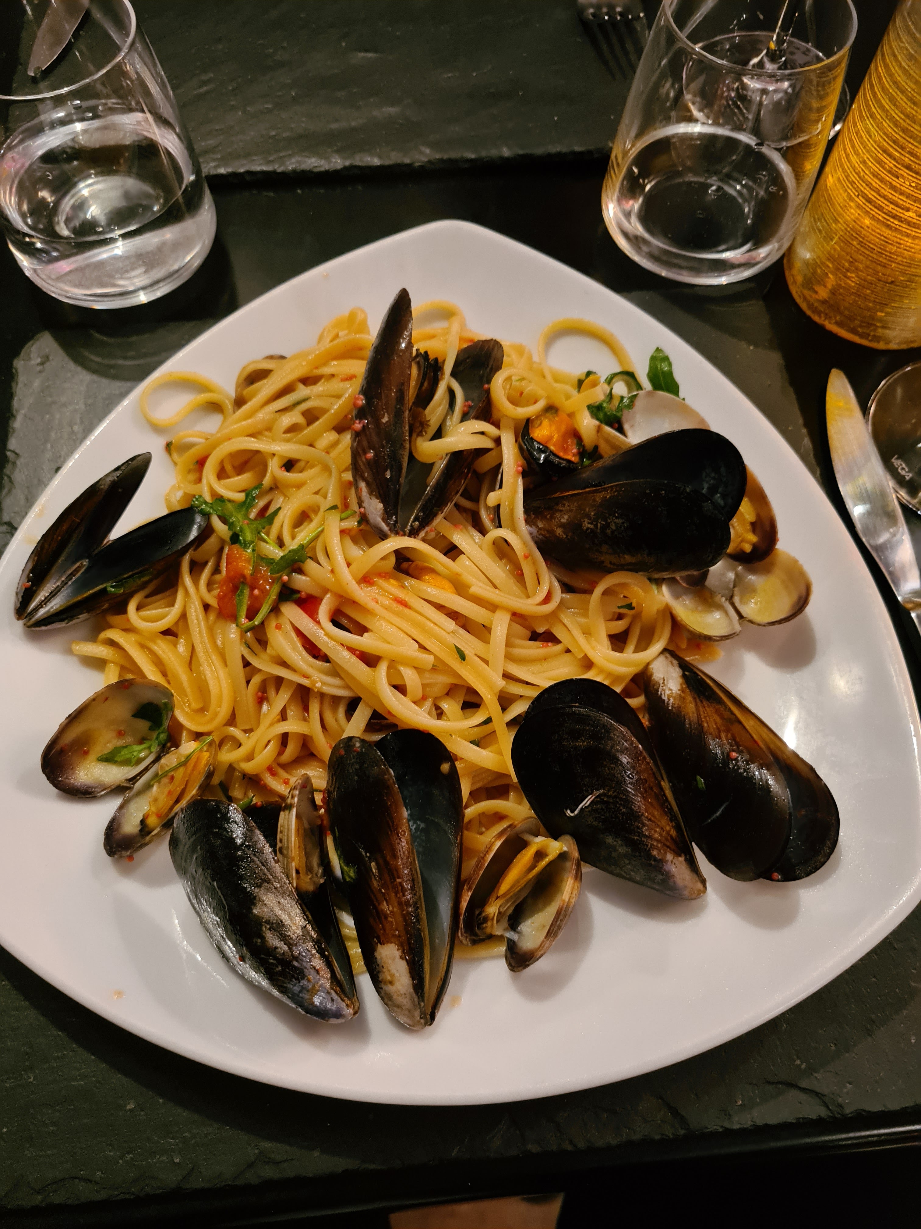 Excellents linguine al dente, service sympathique. Je reviendrai pour essayer d'autres choses.