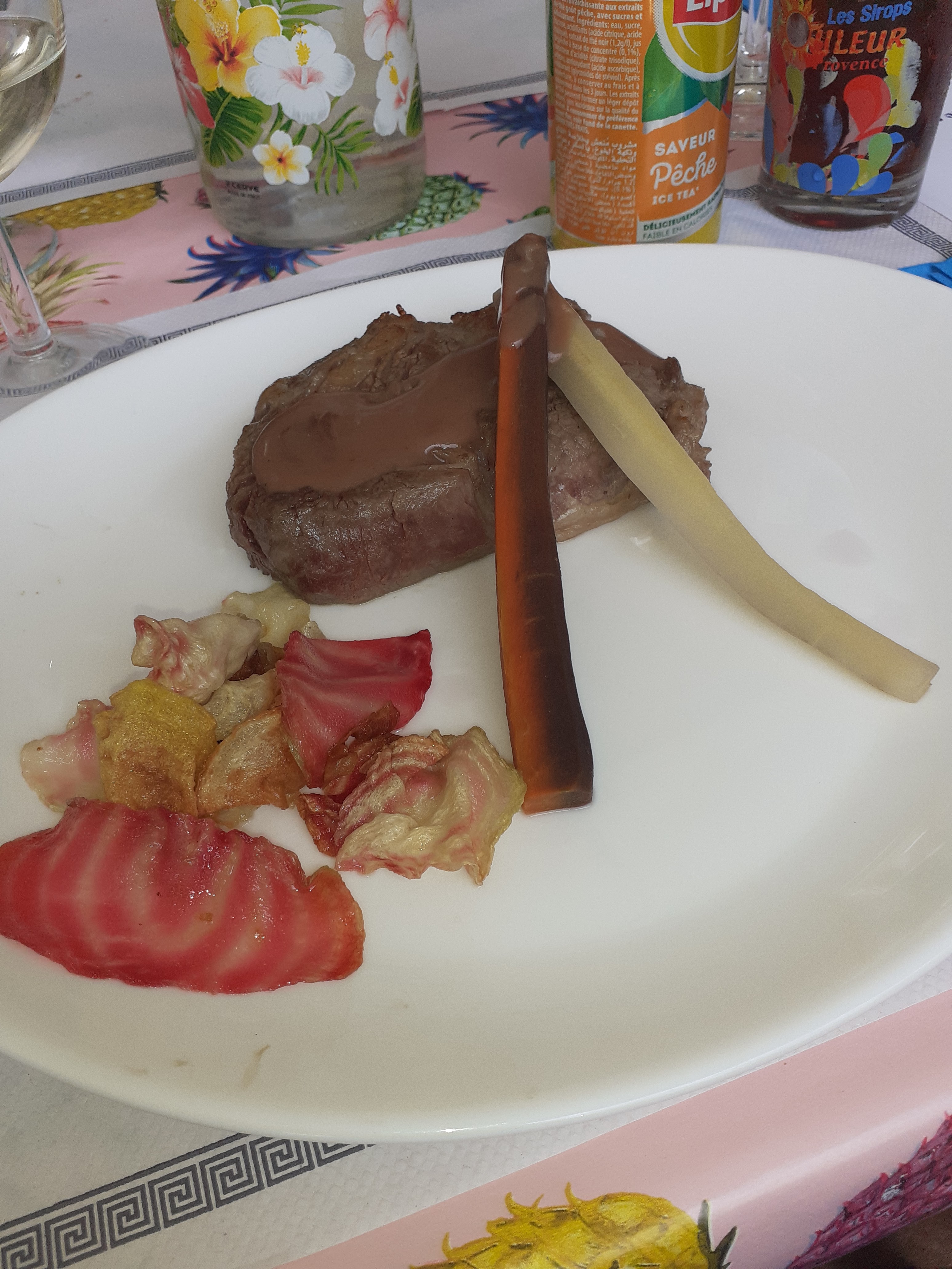 Repas excellent, la cassolette de chèvre à la pomme, le gâteau à la châtaigne, une tuerie, le cocktail 🍍 bref on s'est régalé 😋😋