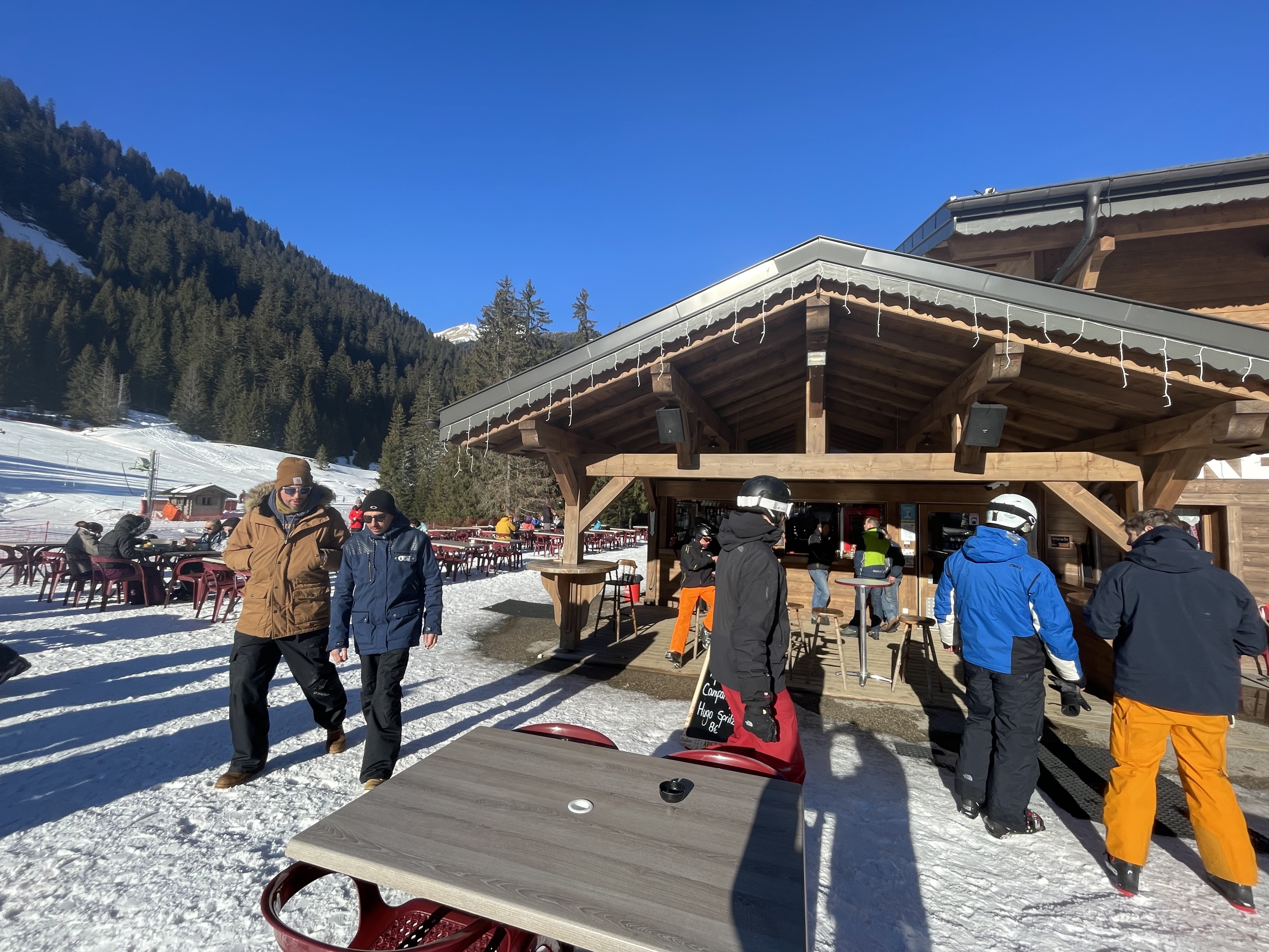 Super bar au pied des pistes à Pré du Joux, étape parfaite pour prendre un verre après le ski après une journée sur les pistes avant le retour en bus à Chatel