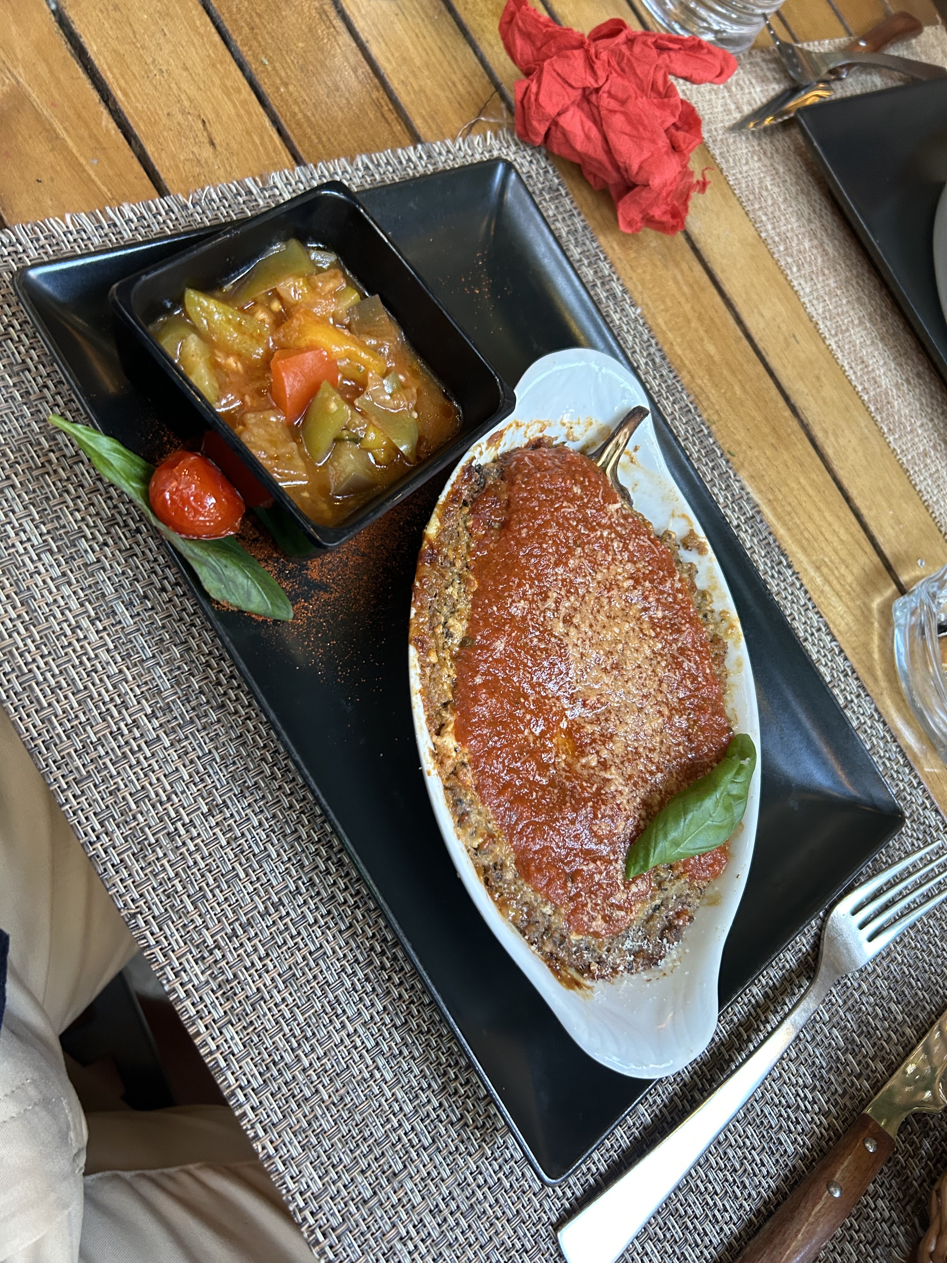 Le plat d'aubergines était très savoureux mais je recommande de prendre une entrée car la portion n'est pas si grande. Le tiramisu dessert est un excellent choix.