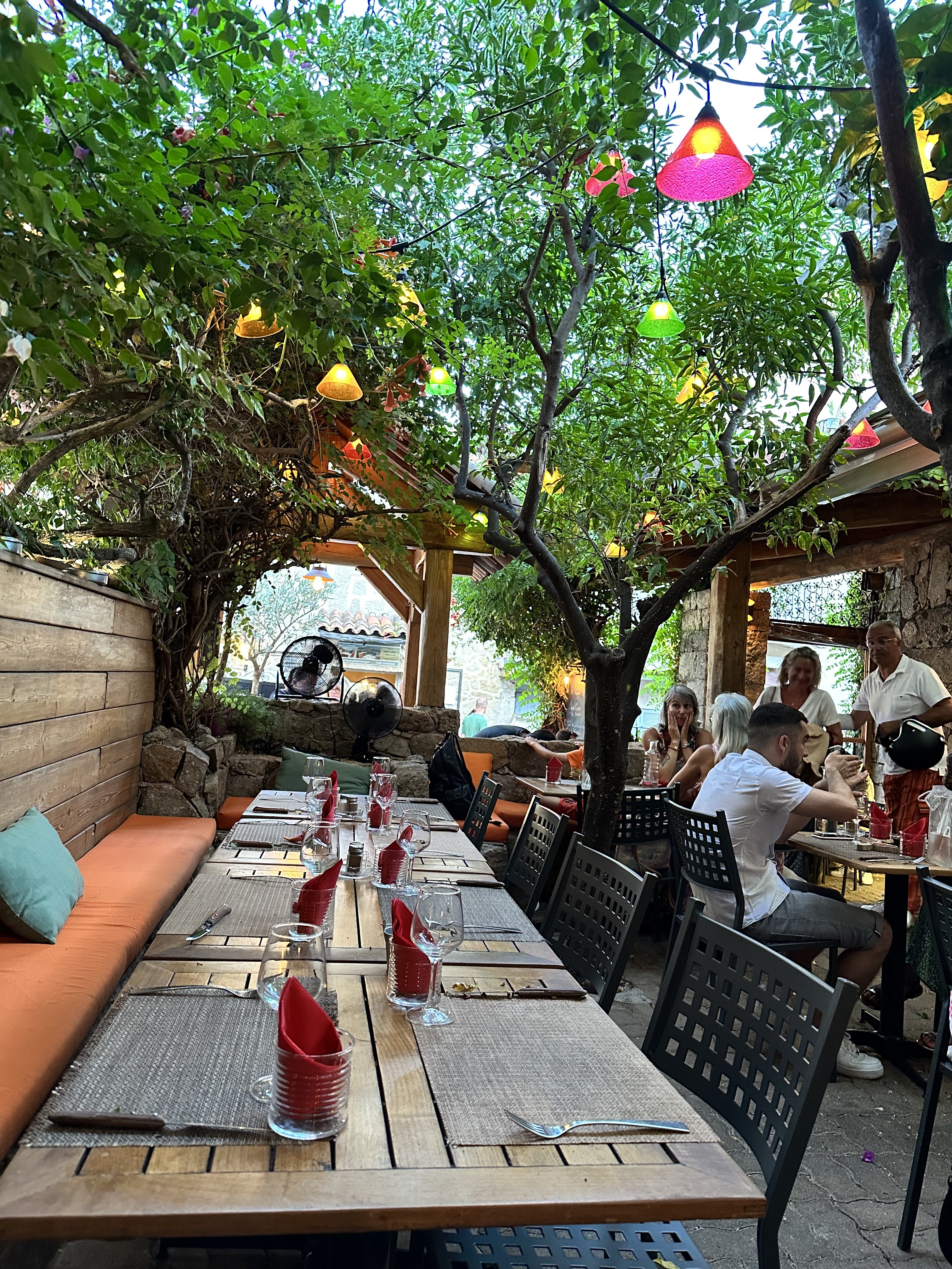 Cadre super sympa sous la pergola et les arbres, service au top, une carte riche en choix avec des spécialités Corses et des prix vraiment très raisonnables pour le centre de Porto Vecchio. Nous sommes venus 2 fois lors de notre séjour et en sommes ravis ! 👍🏻