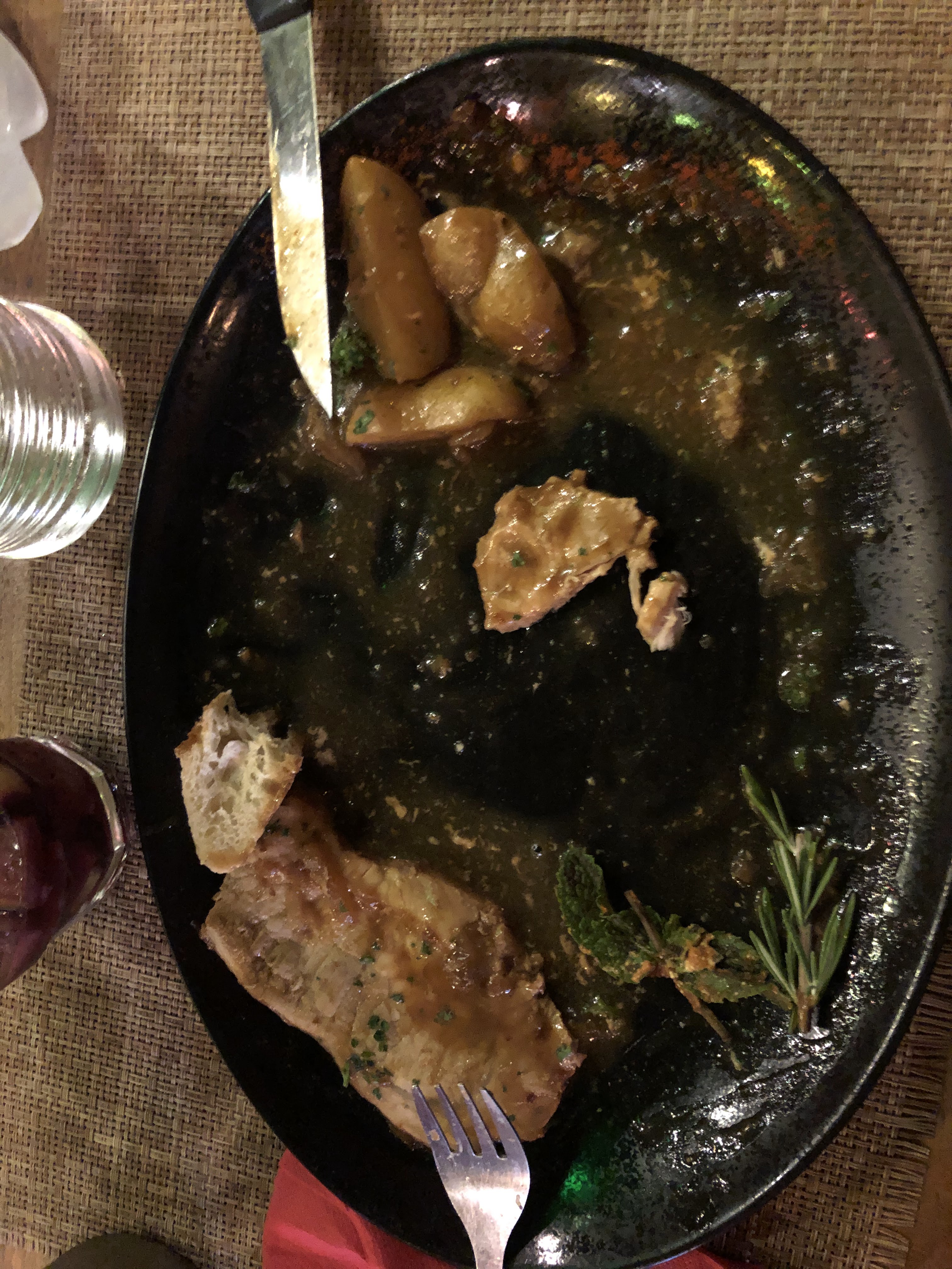 Pensant essayer des spécialités corses, j’ai pris le menu avec roti de porc au miel comme plat et un tiramisu au châtaignes comme dessert. Le roti de porc a bien une sauce qui n’a pas de goût et pas trace de miel. Le dessert était meilleur mais là non plus pas de trace de châtaignes. J’ai mangé à ma faim mais les plats sont finalement moyens.