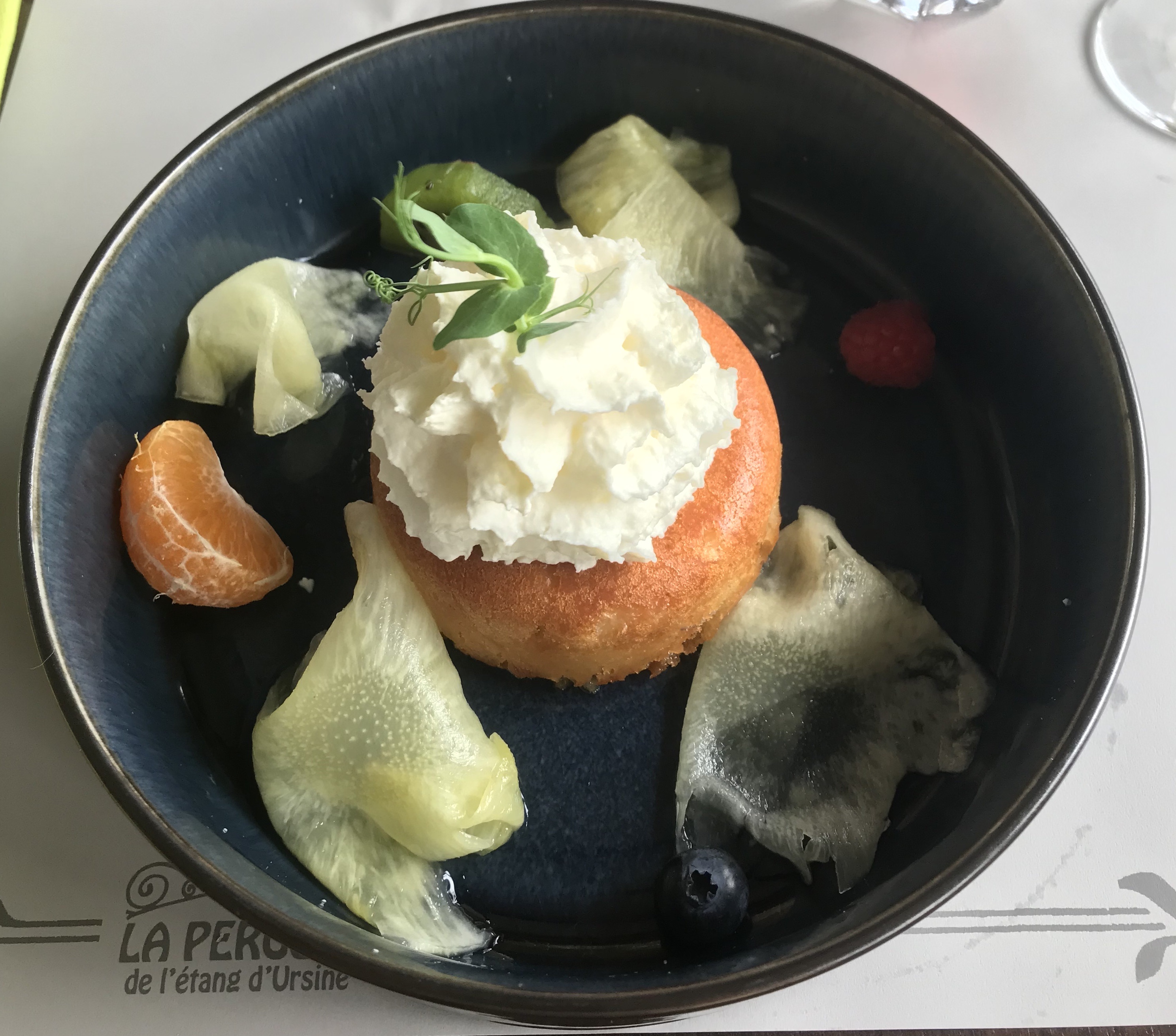 Près d'un étang et d'un bois, belle terrasse avec parasols, accueil charmant et belle carte ! La formule du jour était délicieuse et bien équilibrée. Et bravo pour le jeune cuisinier pour la pavlova : fraîcheur et saveur des fruits, équilibre entre la meringue, la douce acidité de la boule de sorbet citron ... une belle fin de repas !!! Merci