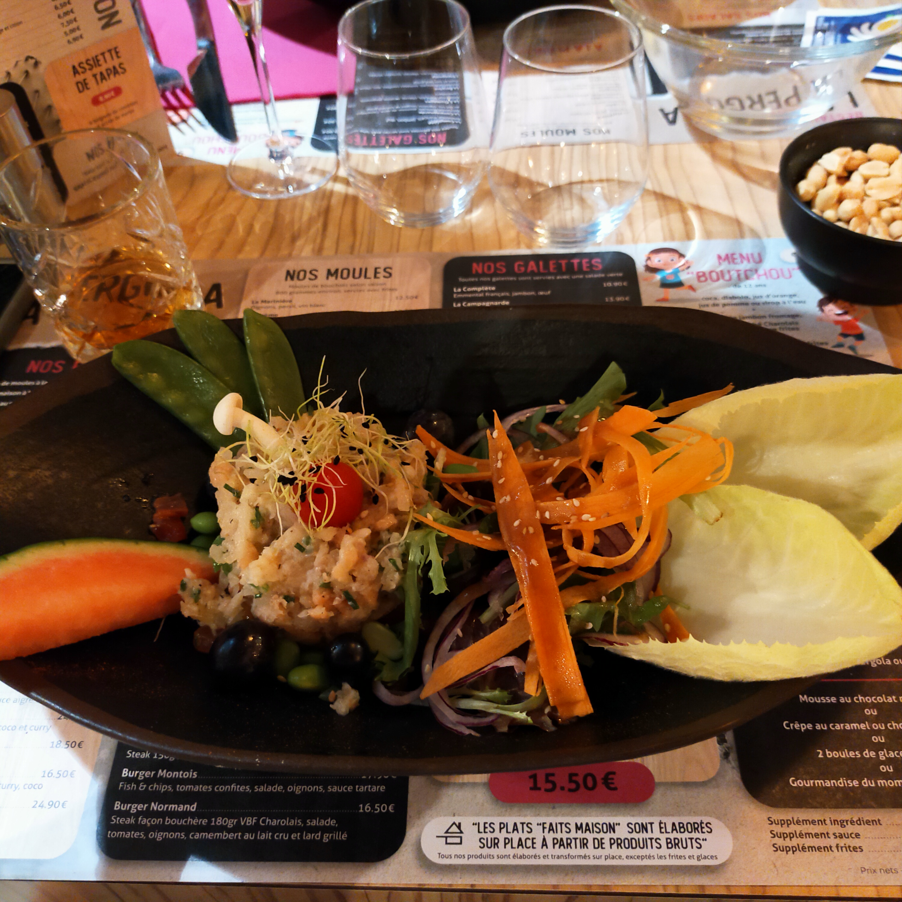 Franchement au top ! Carte originale et plats super bien garnis : vous n’aurez plus faim ça c’est sûr ! Sur les photos vous pouvez voir les entrées individuelles que nous avons partagées : la taille d’un repas. Vous en aurez pour votre argent ! En plus c’est super bon, tout le monde a été ravi de son repas, de l’entrée au dessert !