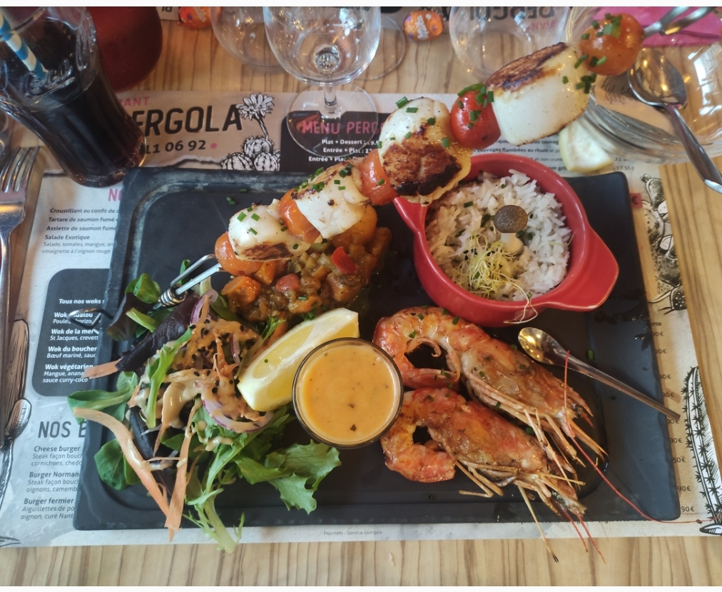 Très bonne adresse pour déguster une brochette de saint jacques et gambas. Un peu déçu par la taille des noix et seulement 2 gambas dans l'assiette. Pas fan de l’accompagnement (mogettes et petit pois) mais c'est subjectif