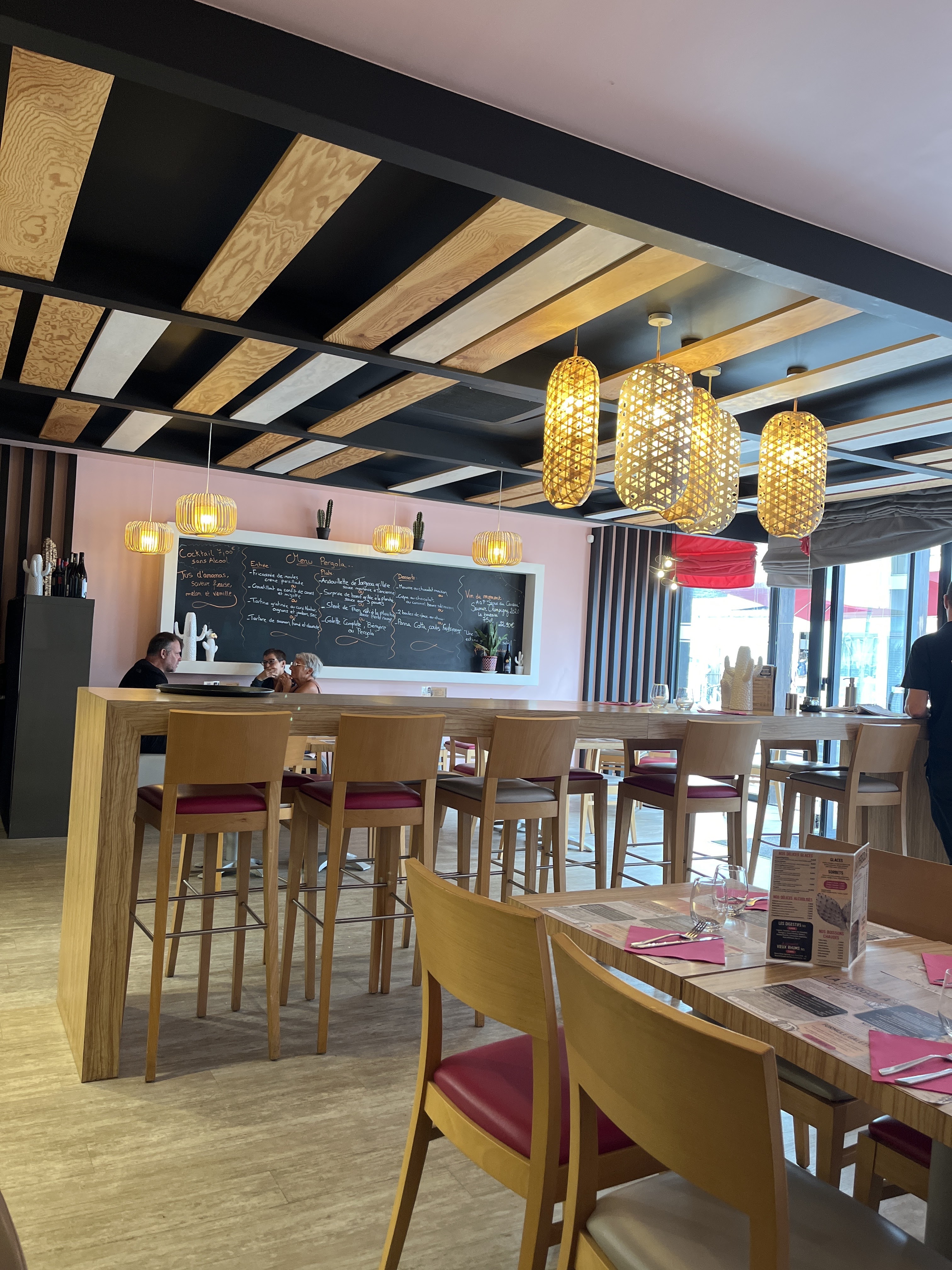 Très bon restaurant avec des plats signés, des menus variés et des saveurs au rendez-vous. Merci pour la chaise bébé et le pot bébé réchauffé et présenté dans un bol, ça a vraiment inclus notre enfant avec nous. Service au top, ça a été un peu plus long après le plat pour commander le dessert. Les crêpes en dessert sont à choisir. La mousse au chocolat était un peu salée. Bref de très bons menus, prix accessibles et une bonne expérience !